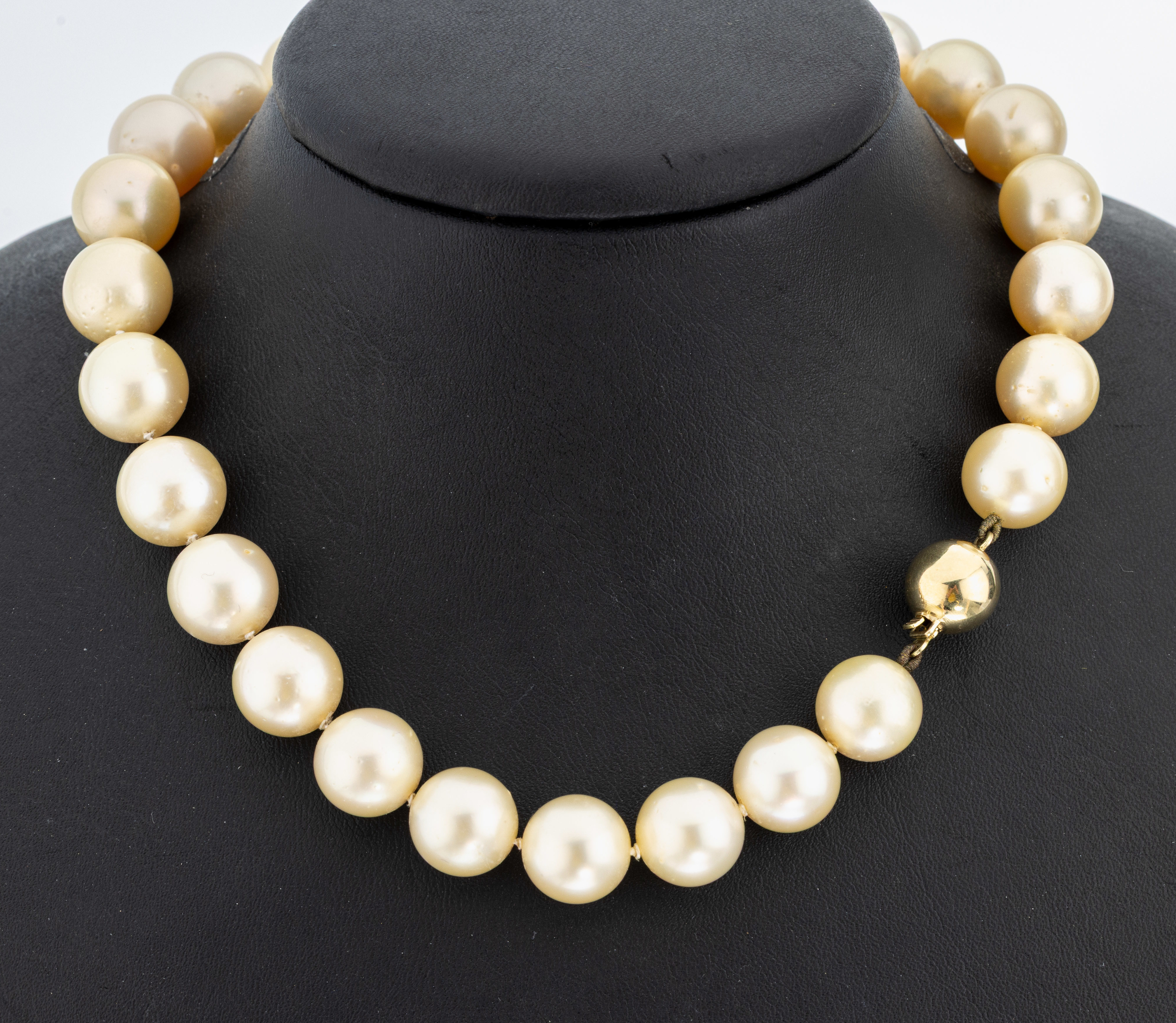 Perl-Collier mit 14 kt Gold Schließe, GG 585/000, Südseezuchtperlen, cremefarb.,