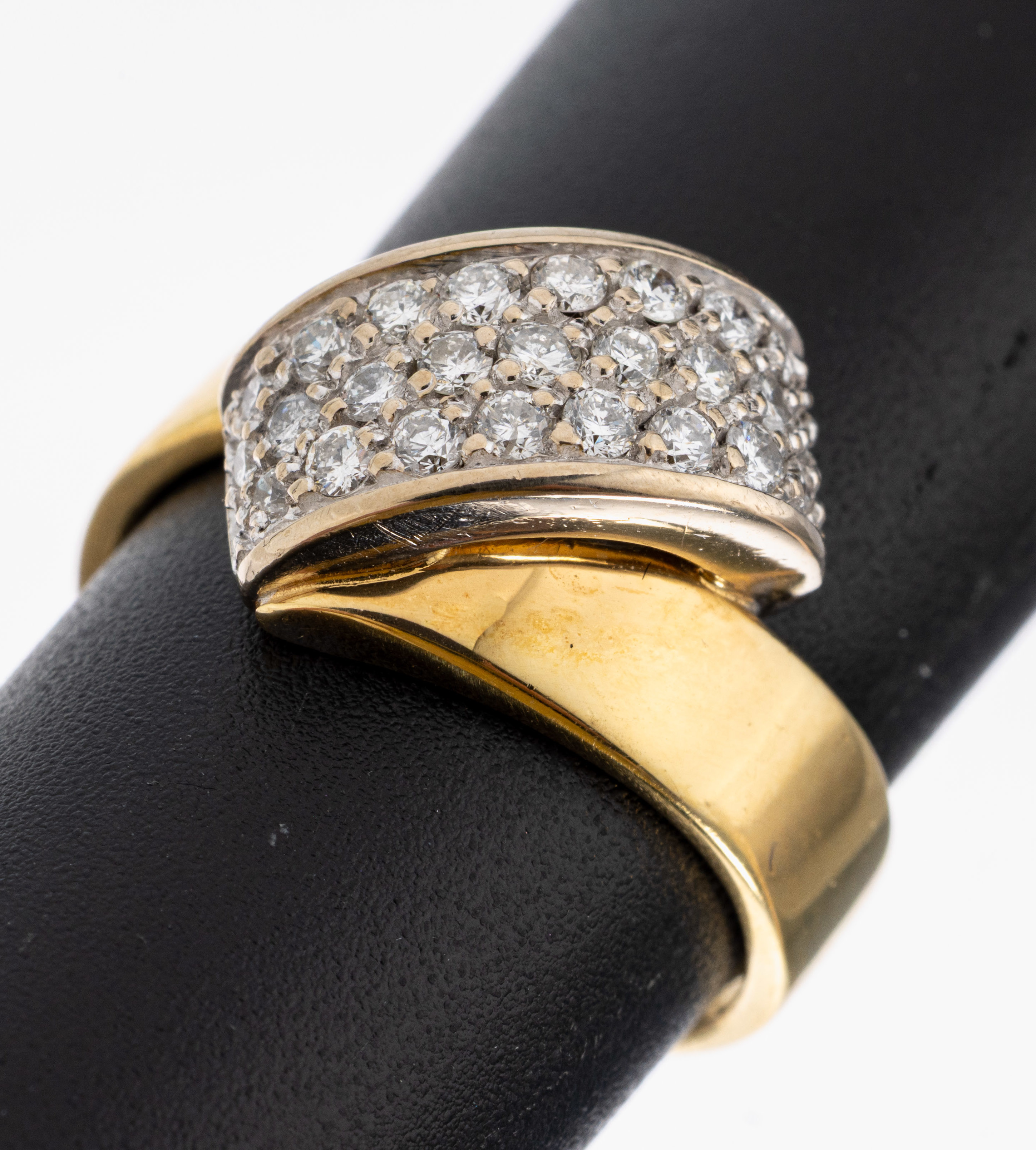 18 kt Gold Brillant Ring, GG/WG 750/000, gepr., in WG gefasste 24 Brillanten zus.