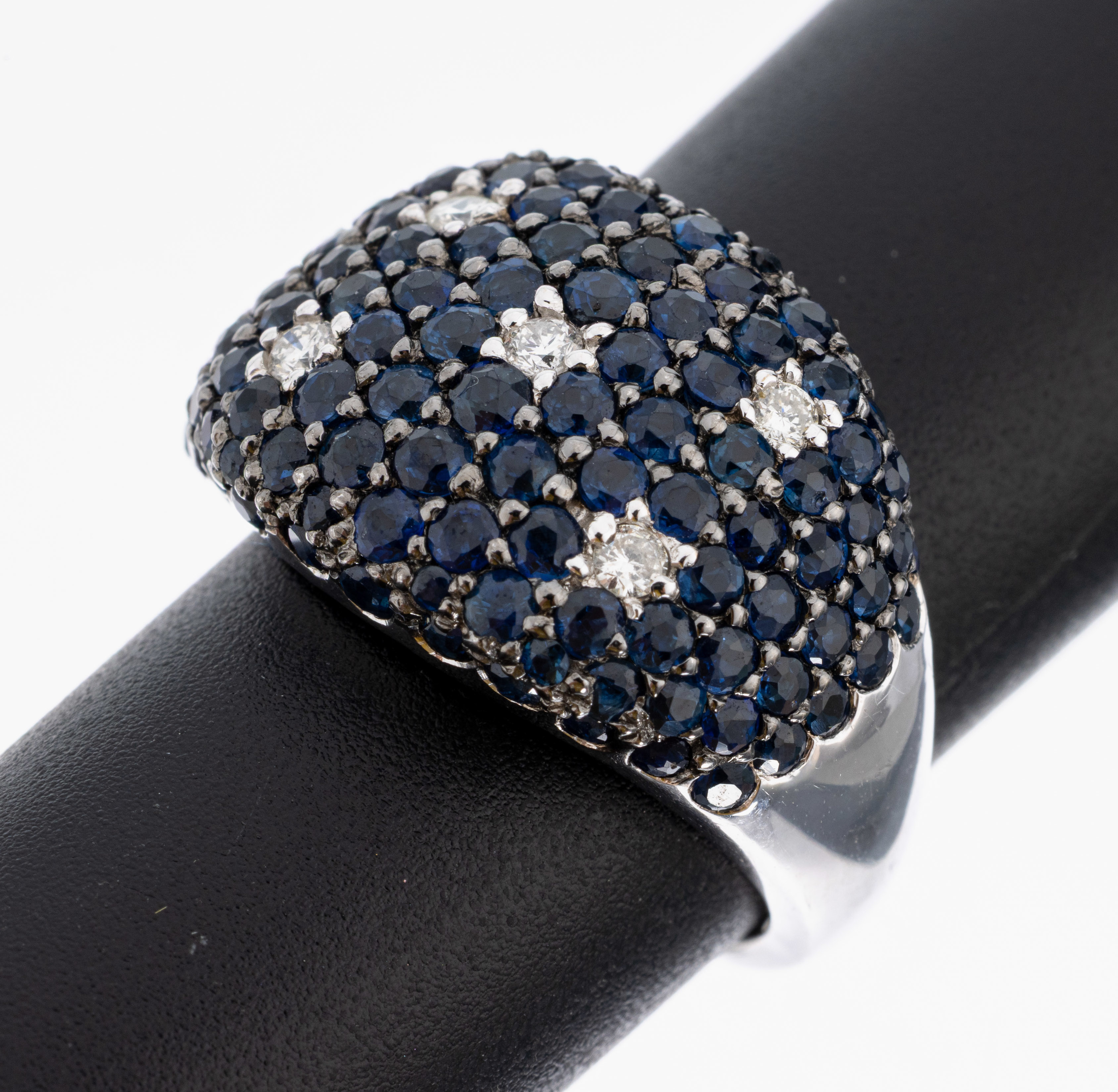 18 kt Gold Saphir Brillant Ring, WG 750/ 000, bes. mit ca. 125 rundfacett. Saphiren
