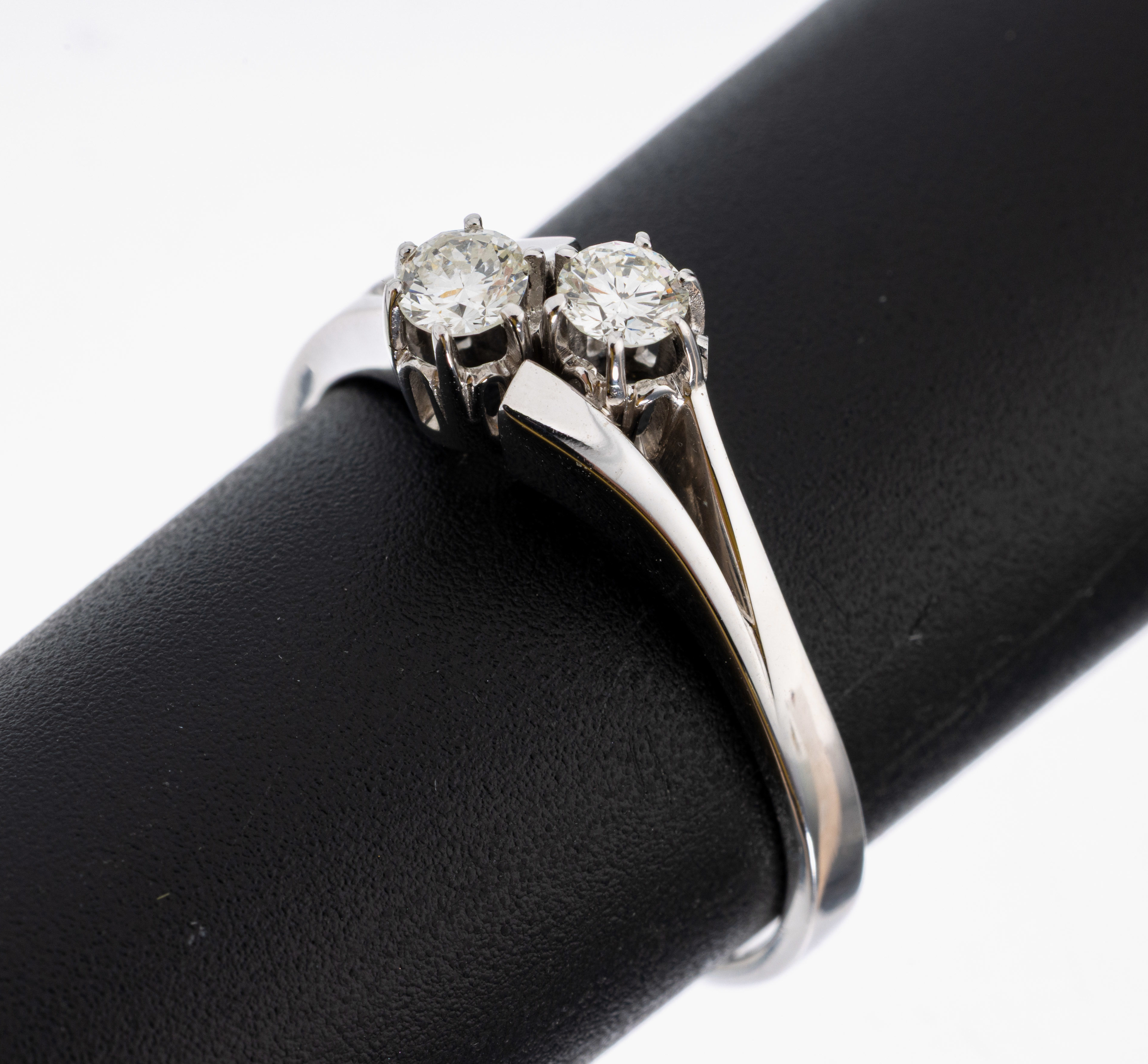 18 kt Gold Brillant Ring, WG 750/000, bes. mit 2 Brillanten zus. ca. 0.30 ct (grav.)