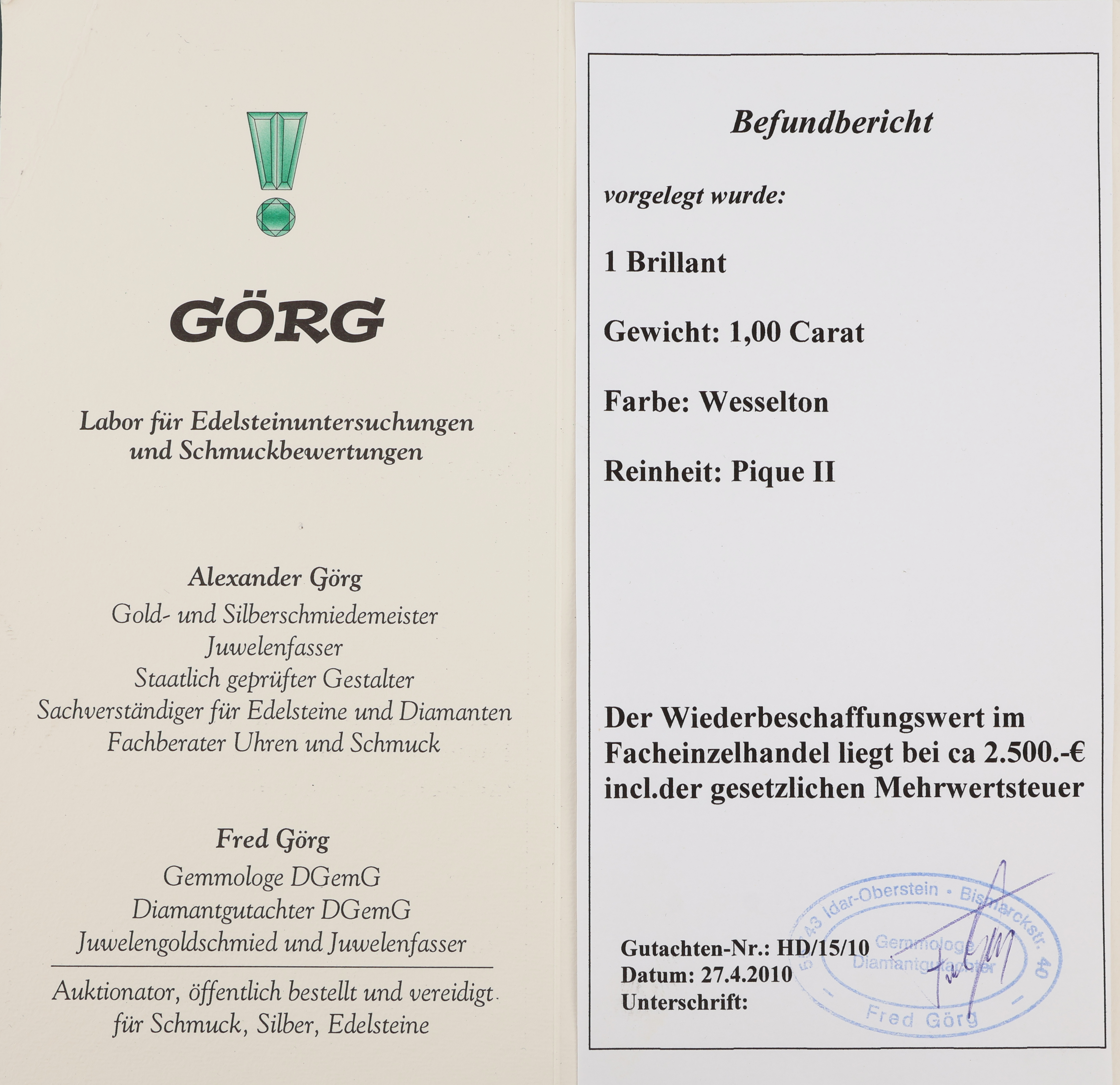 Loser Brillant ca. 1.00 ct Weiß/p2, Rundiste besch., Expertise anbei Schätzpreis: