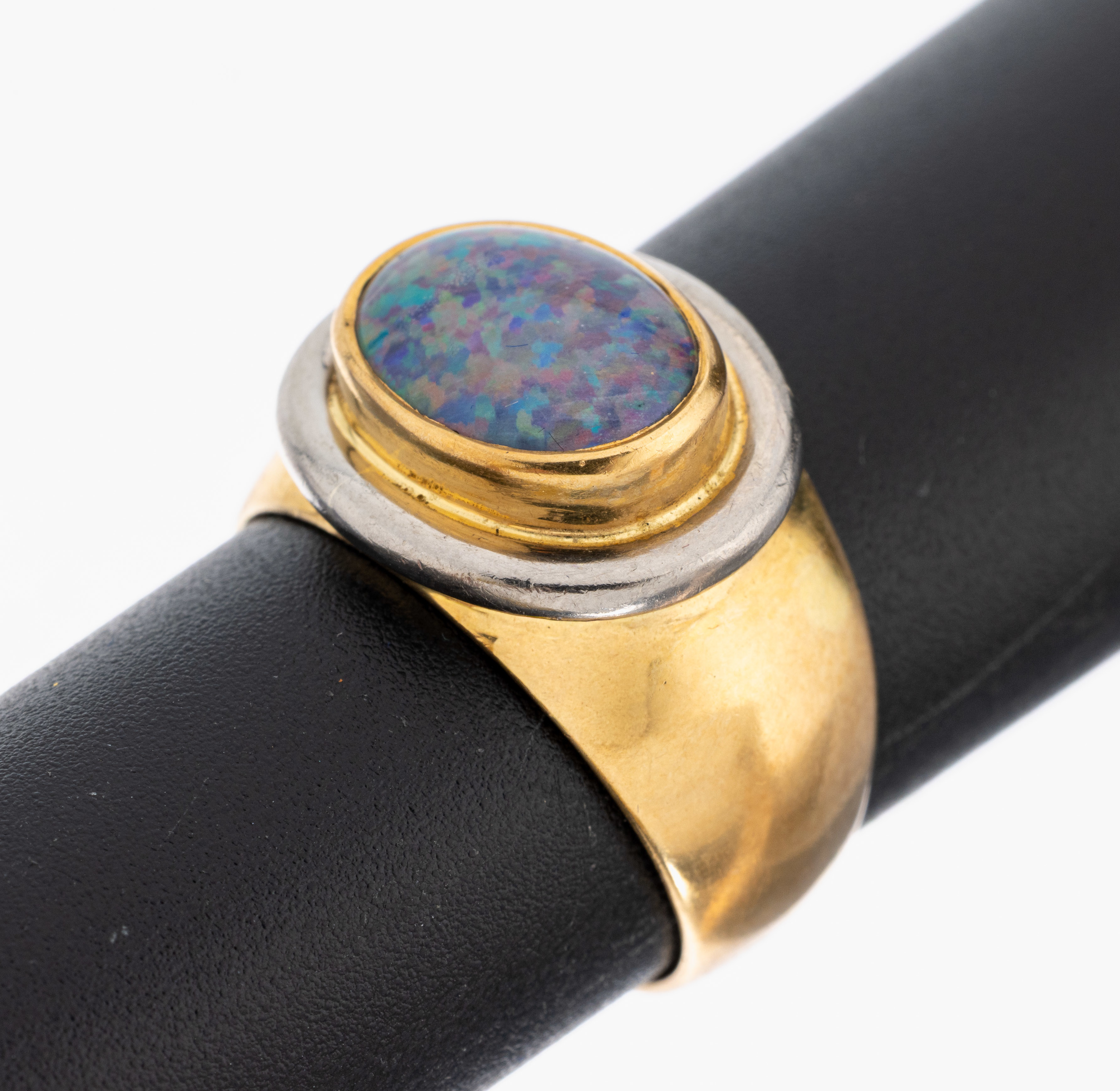 18 kt Gold Opal-Ring, GG/WG 750/000, ovale Opal-Triplette, RW 53, ca. 8.4 g, Meistermarke