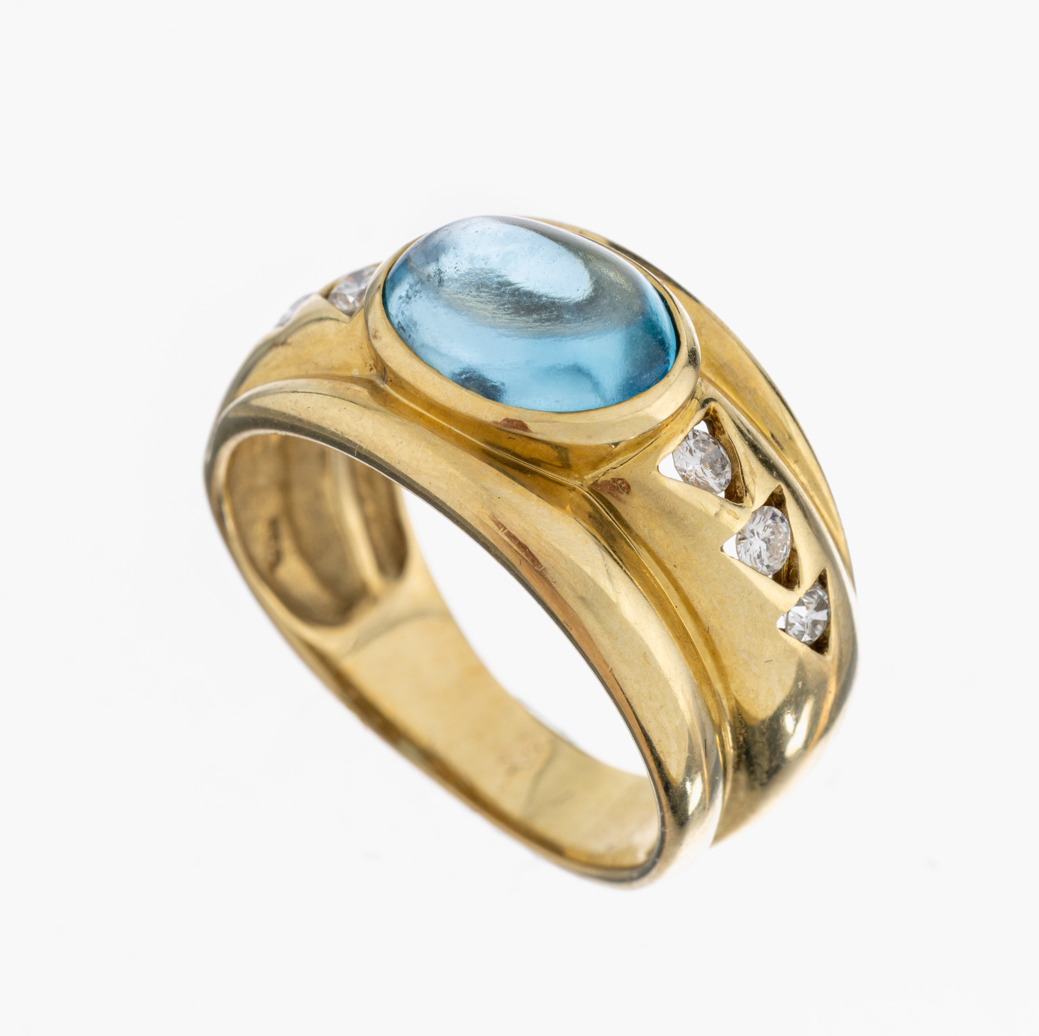 14 kt Gold Topas-Brillant-Ring, GG 585/000,ovaler Blautopas (beh.) ca. 3.0 ct, 6