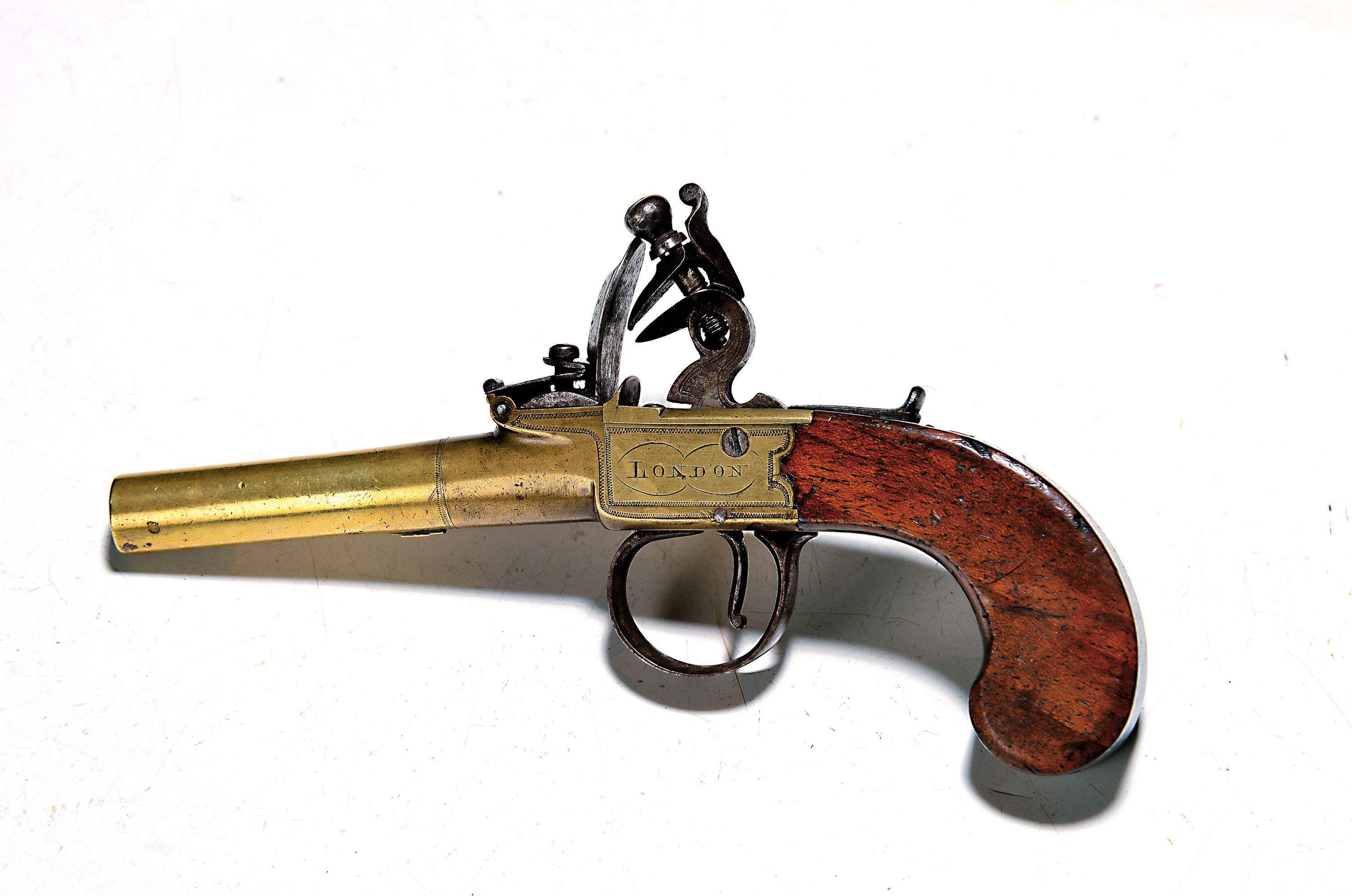 graviert und bez. London. Stempel P und V, Kal. 10mm, berieben, Länge 20cm.