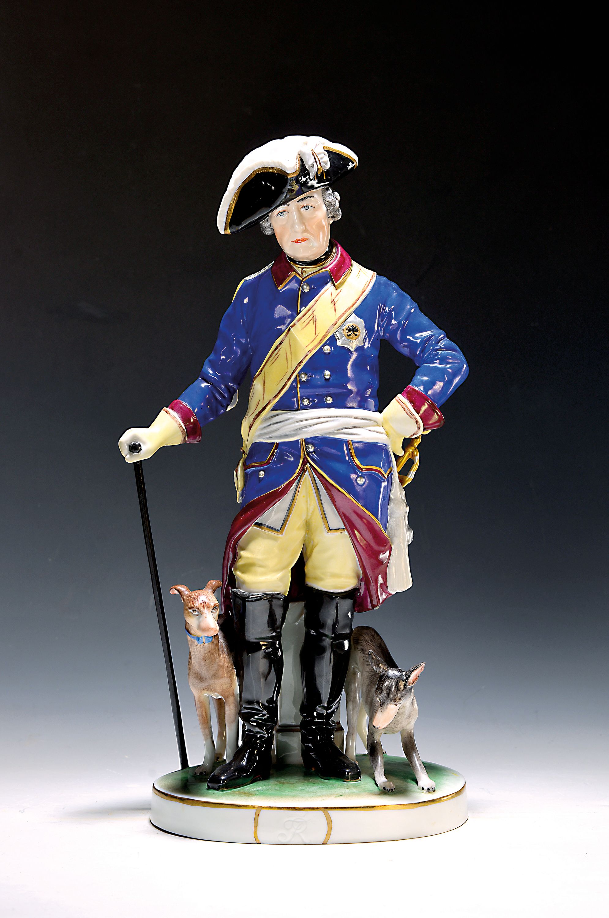 Standbild "Der Alte Fritz", Aelteste Volkstedt, Porzellan, realistische Bemalung,