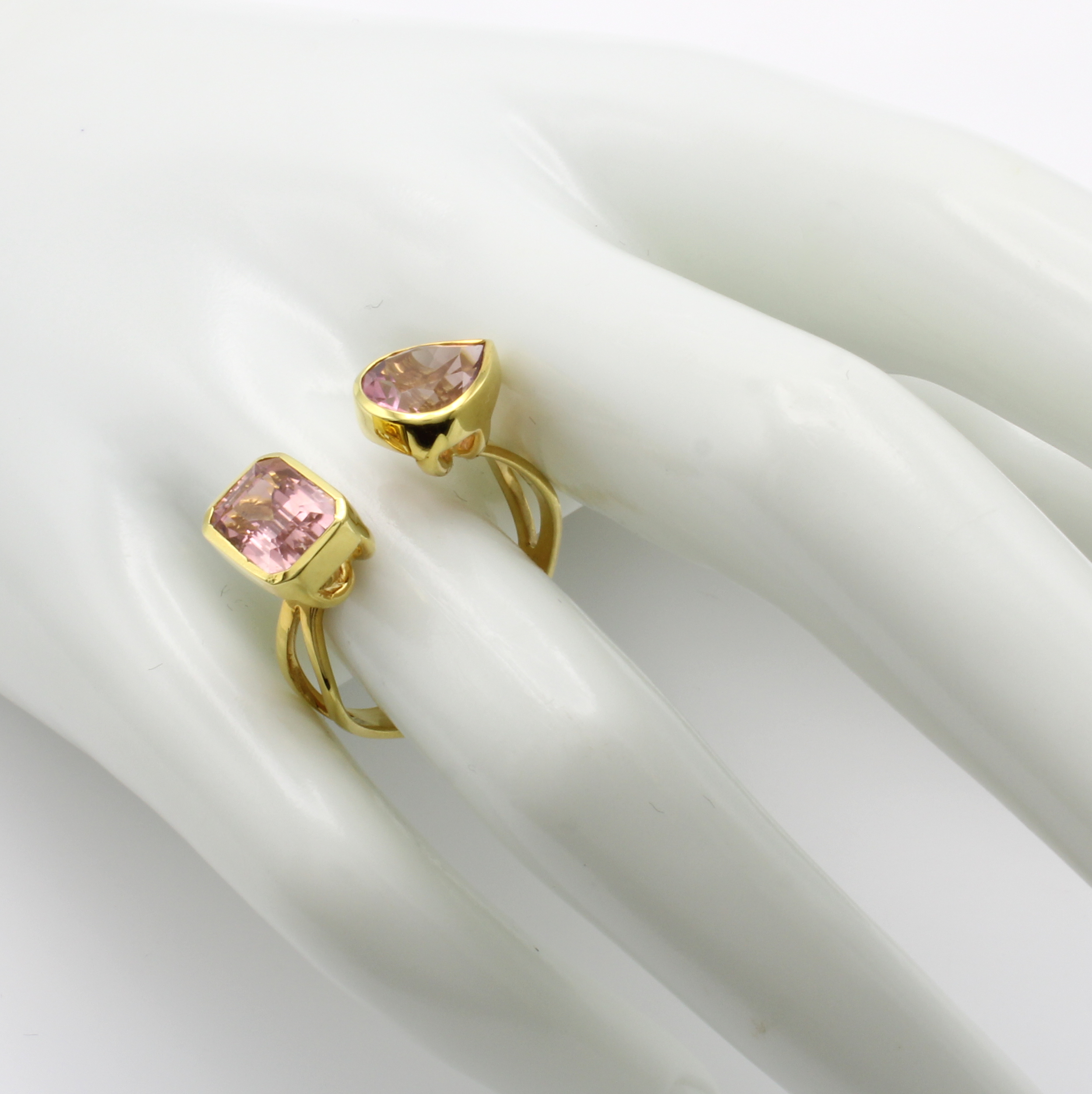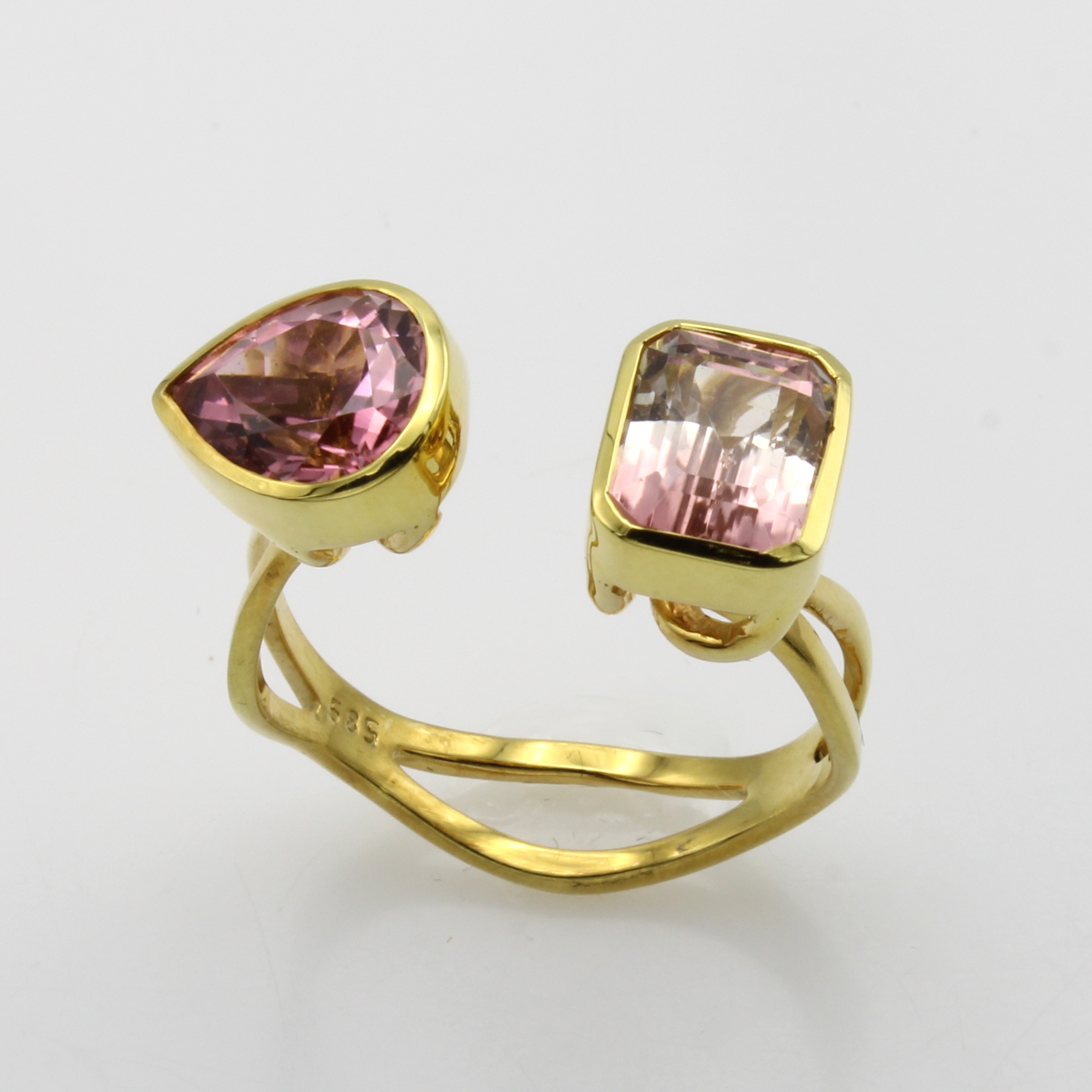 Ring mit Turmalinen, GG 585/000, 2 Turmaline in versch. Rosétönen u. in versch. Schliff- arten zus. ca. 4 ct, RW ca. 58 Schätzpreis: 2450, - EUR