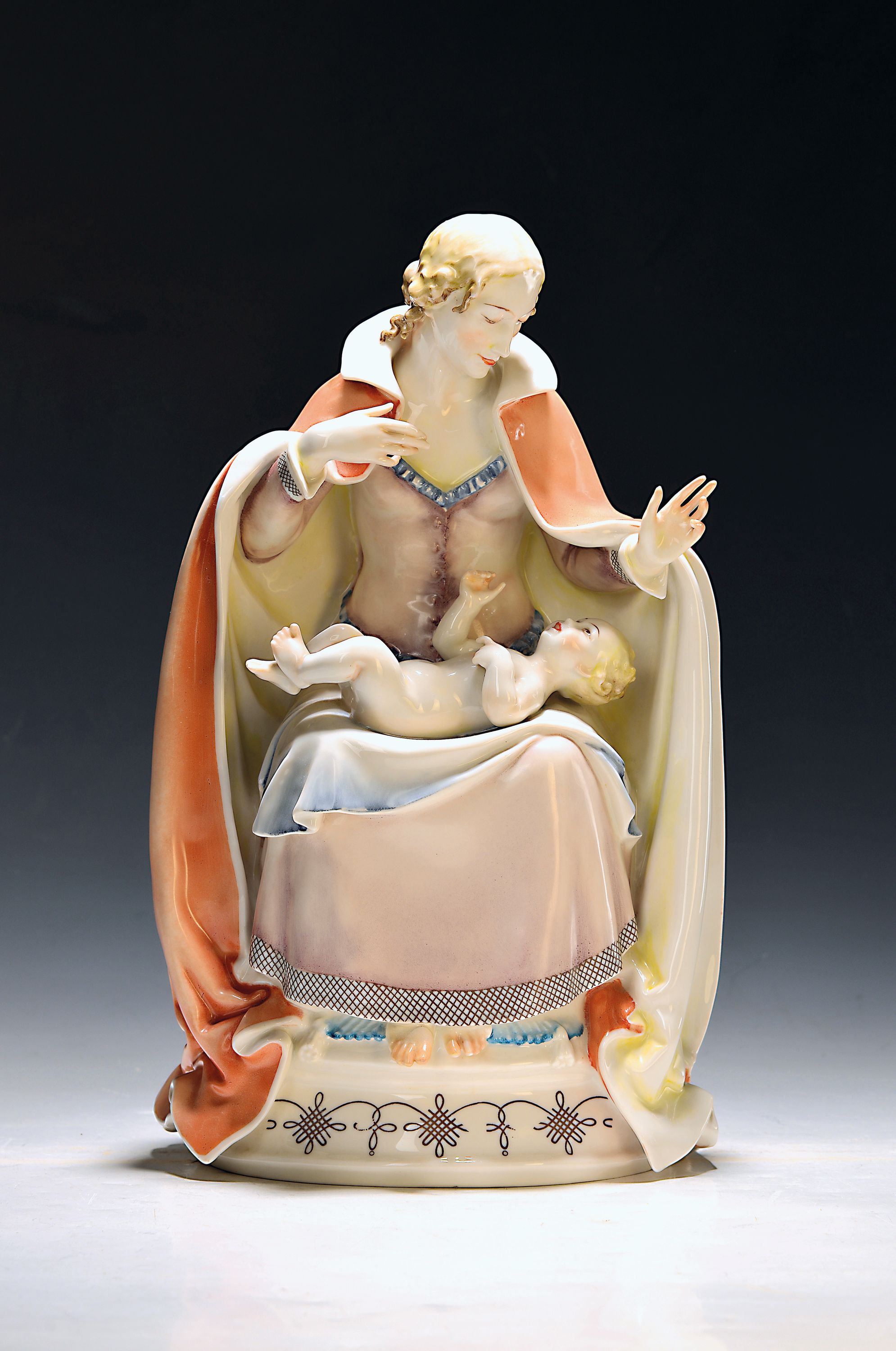 Porzellanfigur, Hutschenreuther, Entwurf Prof. Nick, Madonna mit Jesuskind auf dem