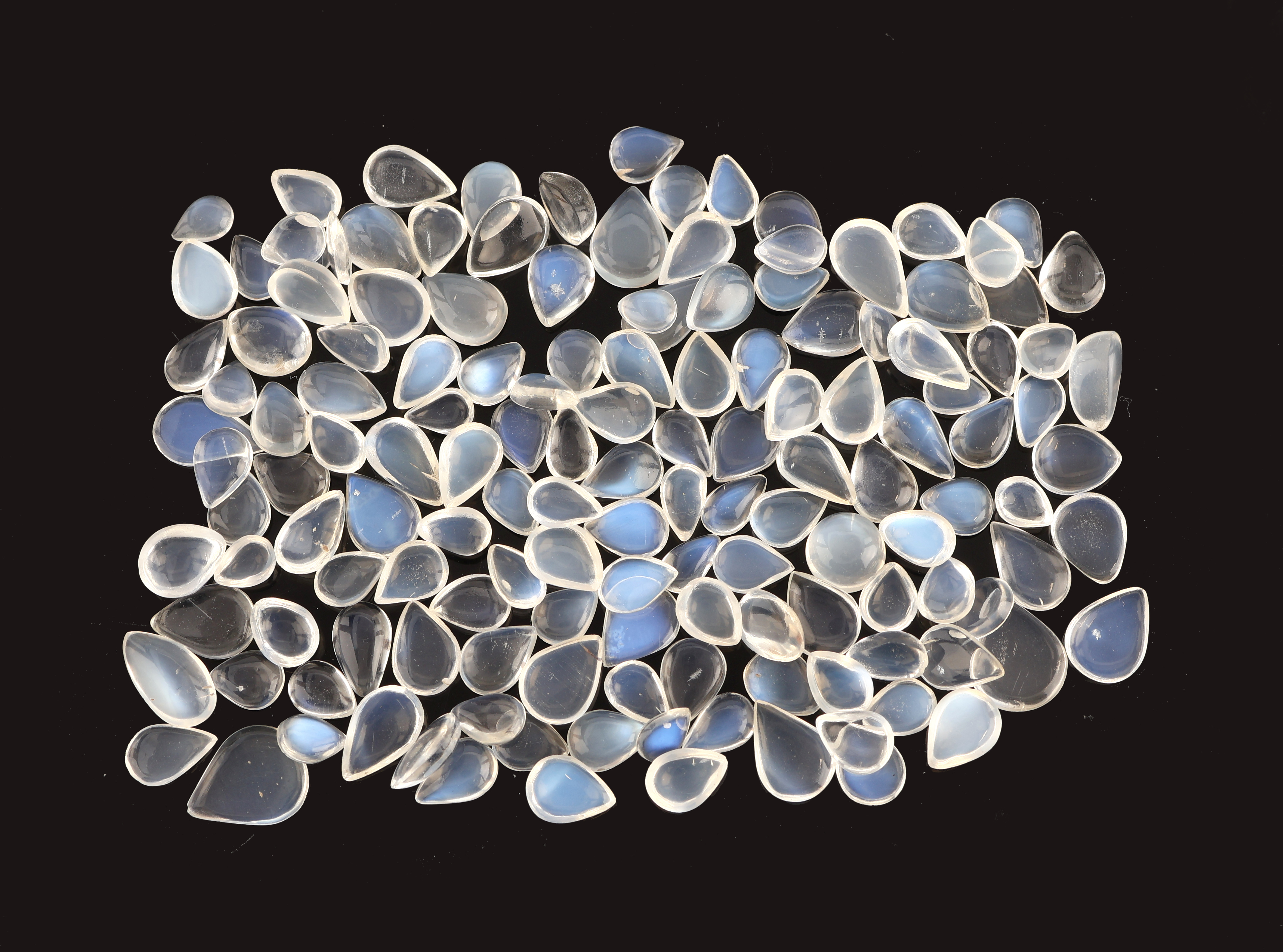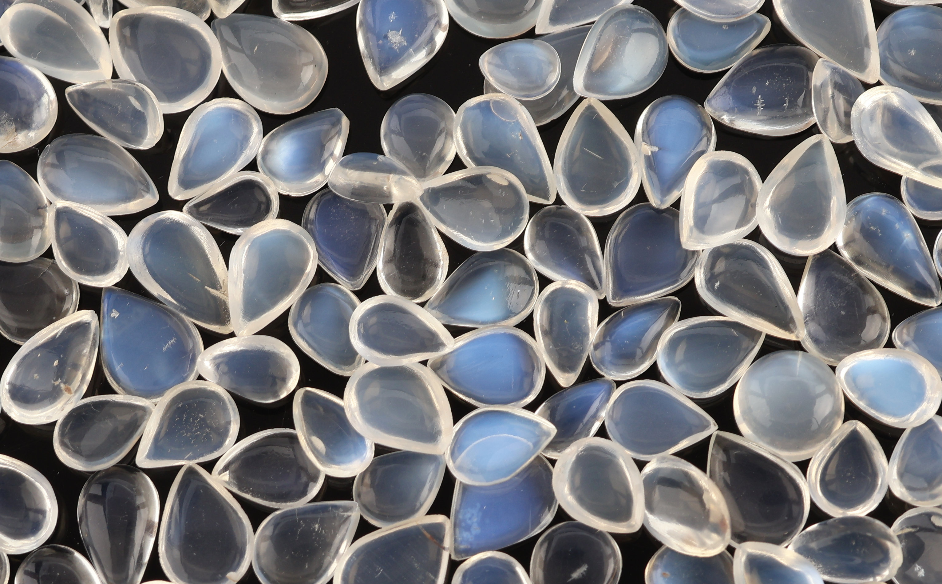 Lot lose Mondsteine, ca. 61.70 ct, tropfenf. Cabochons, versch. Größen