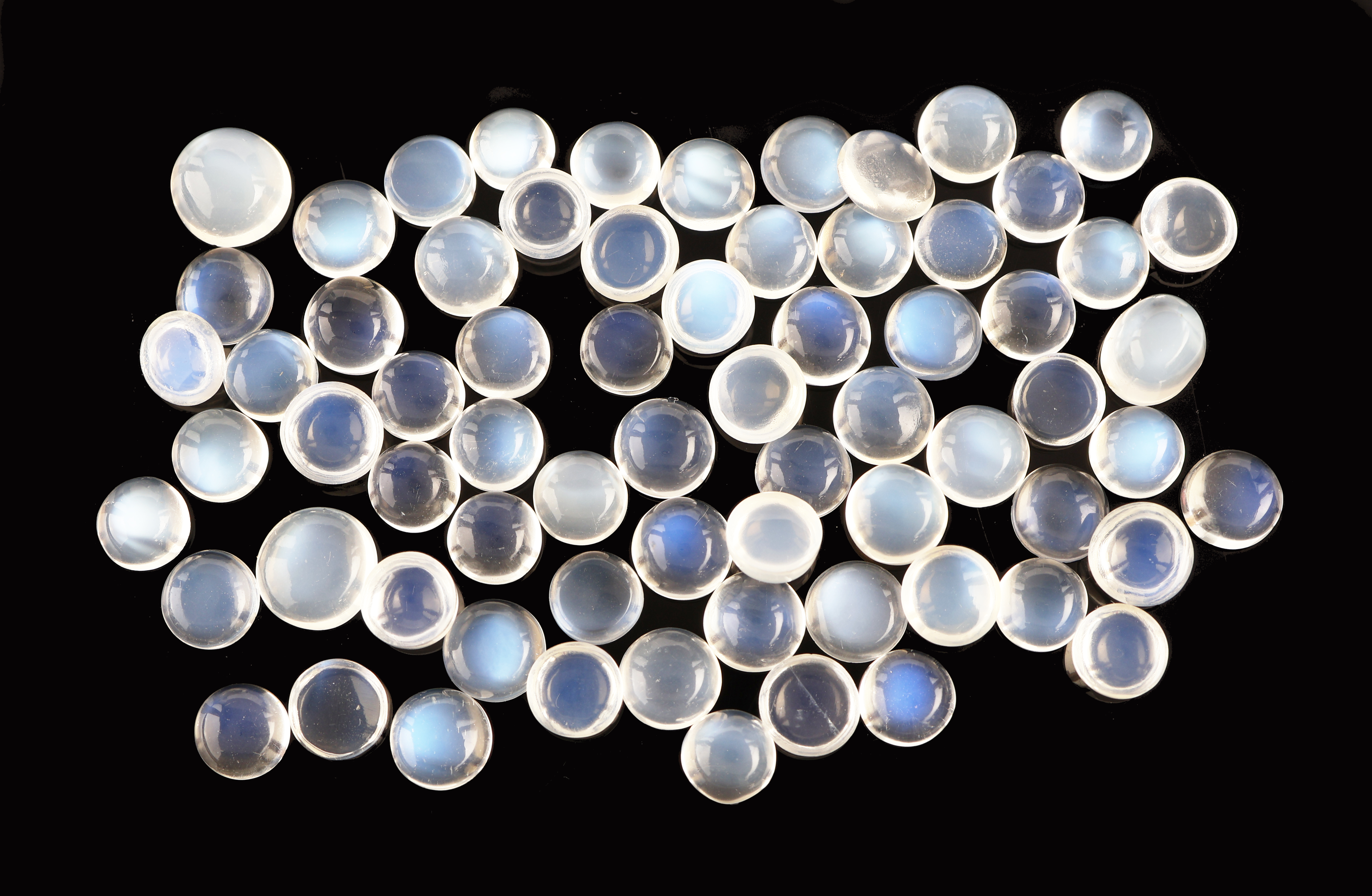 Lot lose Mondsteine, ca. 52.35 ct, runde Cabochons in versch. Größen
