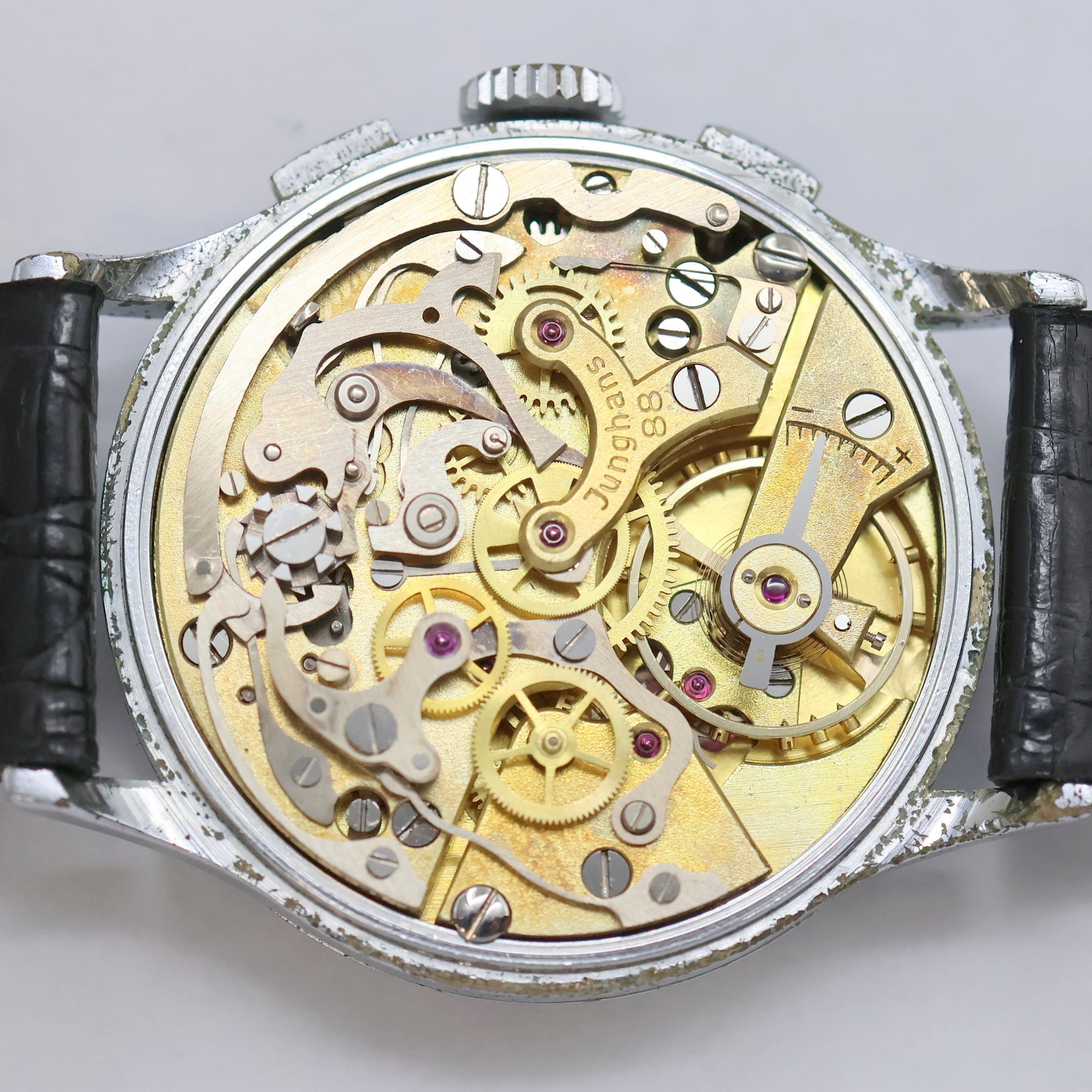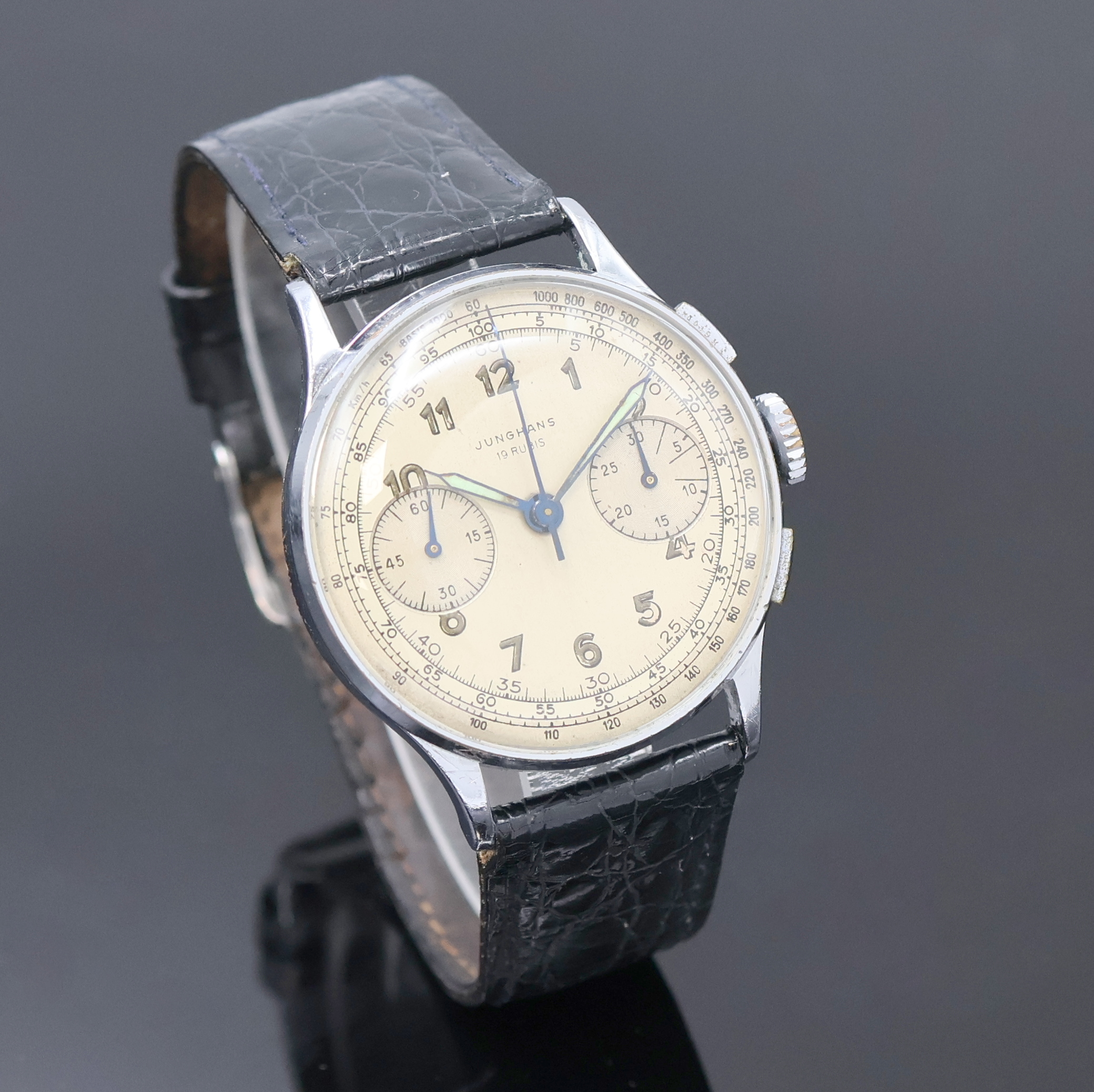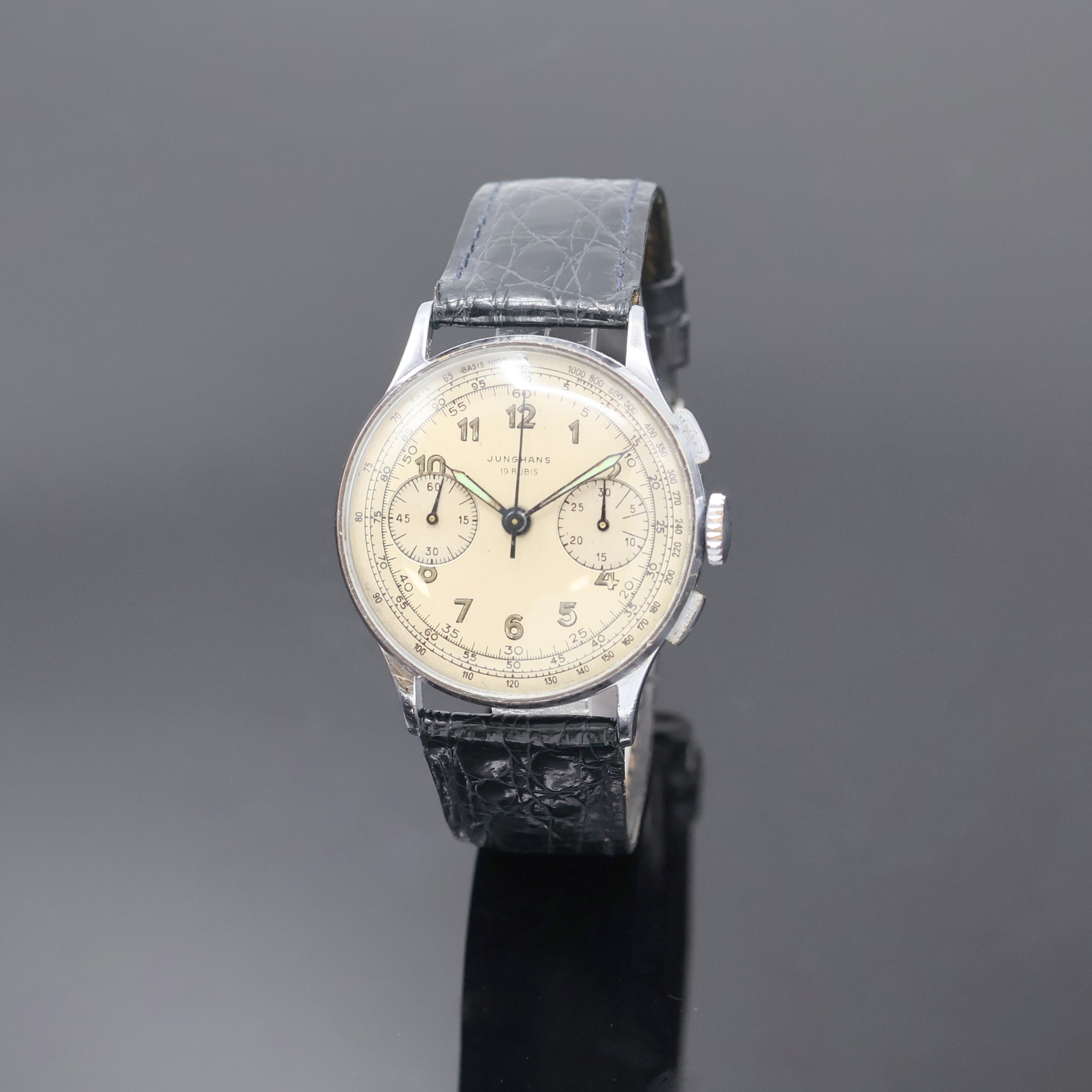 JUNGHANS Schaltradchronograph mit Kaliber 88, Deutschland um 1950, Handaufzug, verchr.