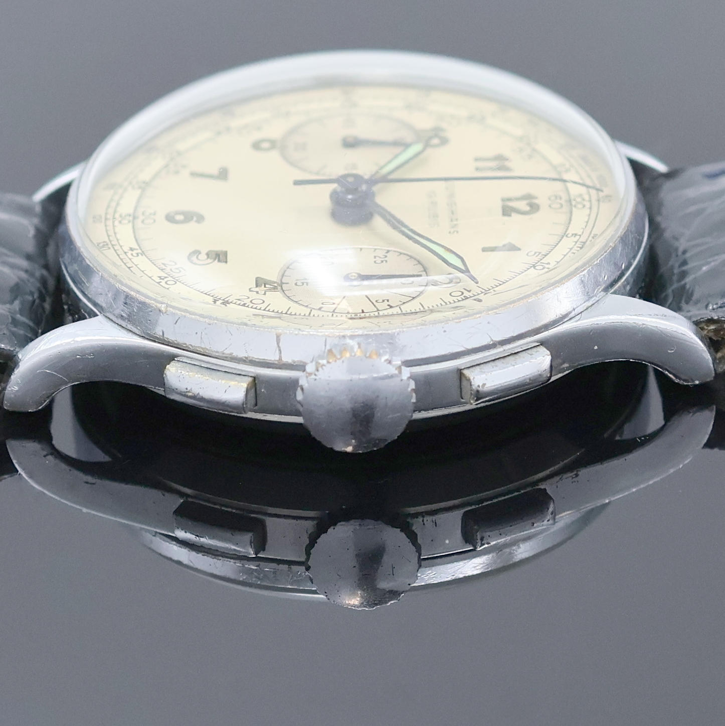 (Masse erneuert), 30 Min.- Zähler, kl. sek. b. 9, Tachymeterskala, verg. Werk, D.