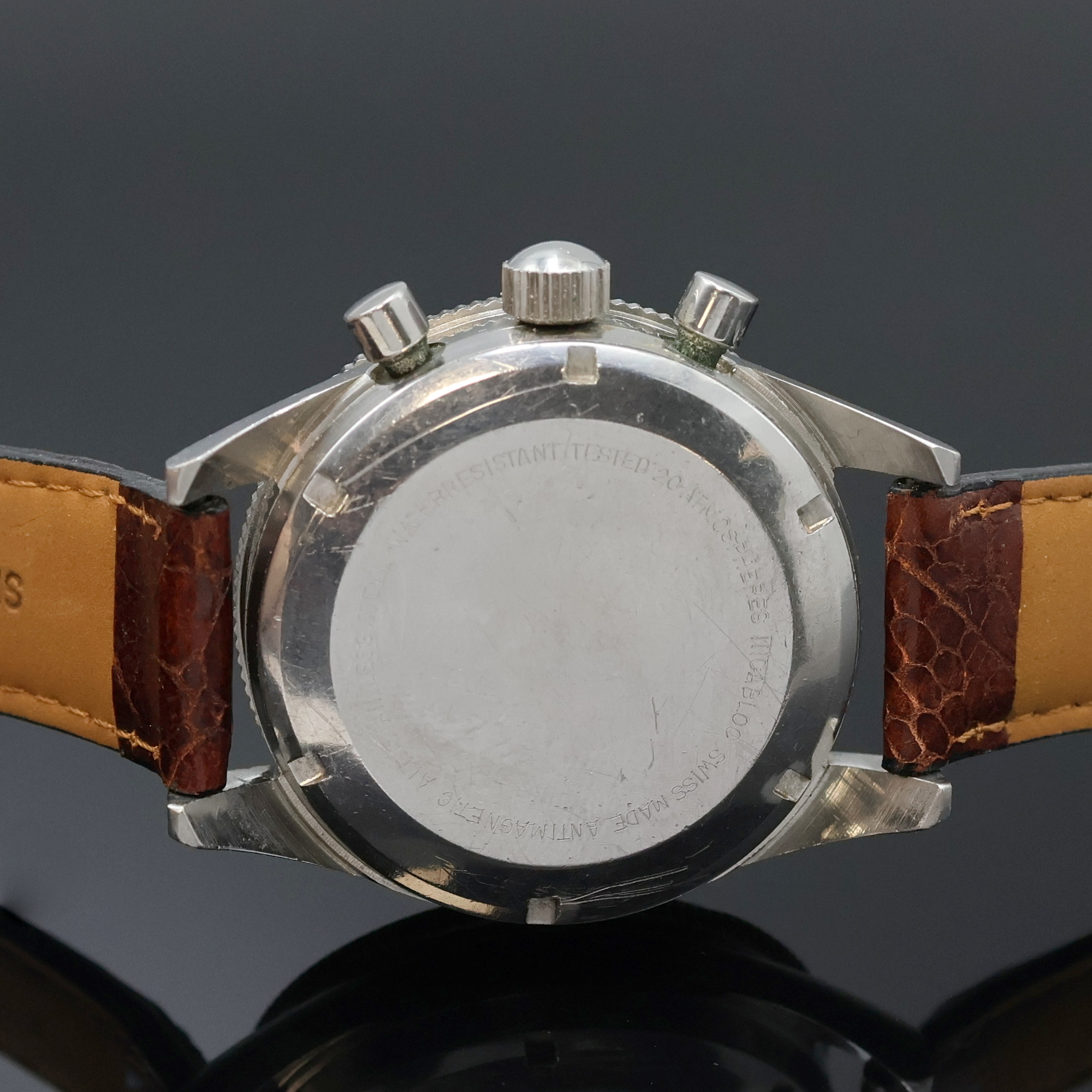 silb. Leuchtzeiger, 12 Std.- u. 30 Min.-Zähler, kl. Sek. b. 9, Tachymeterskala,