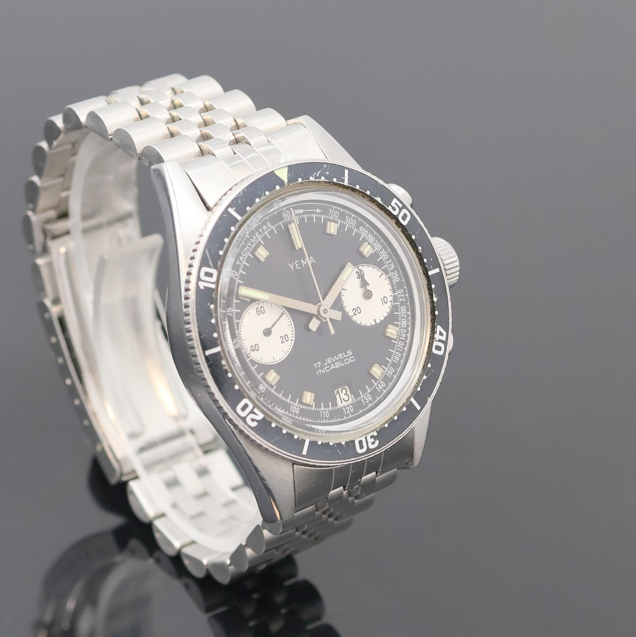YEMA Armbandchronograph in Stahl, Schweiz um 1970, Handaufzug, Boden verschr., neutr.