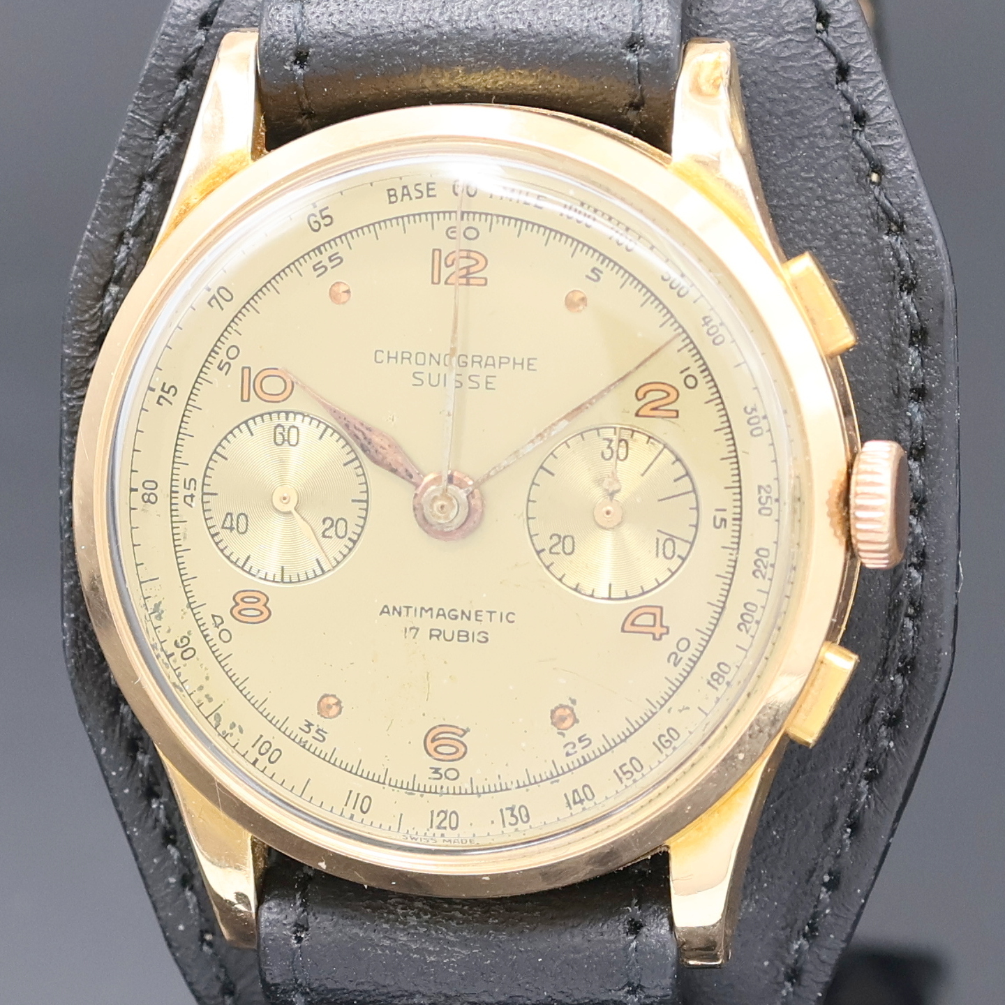 CHRONOGRAPHE SUISSE Armbandchronograph in RoseG 750/000, Schweiz um 1950, Handaufzug,