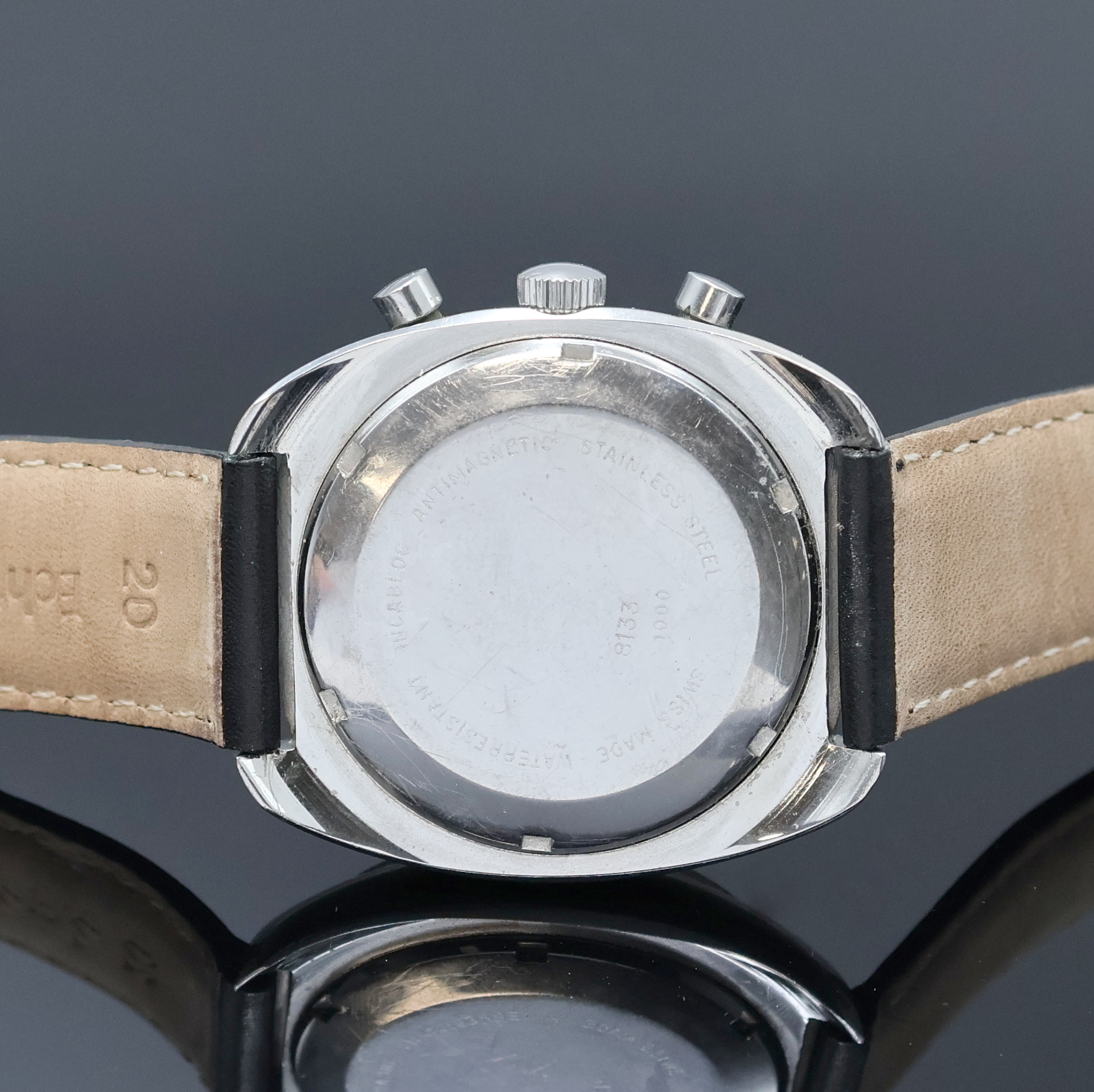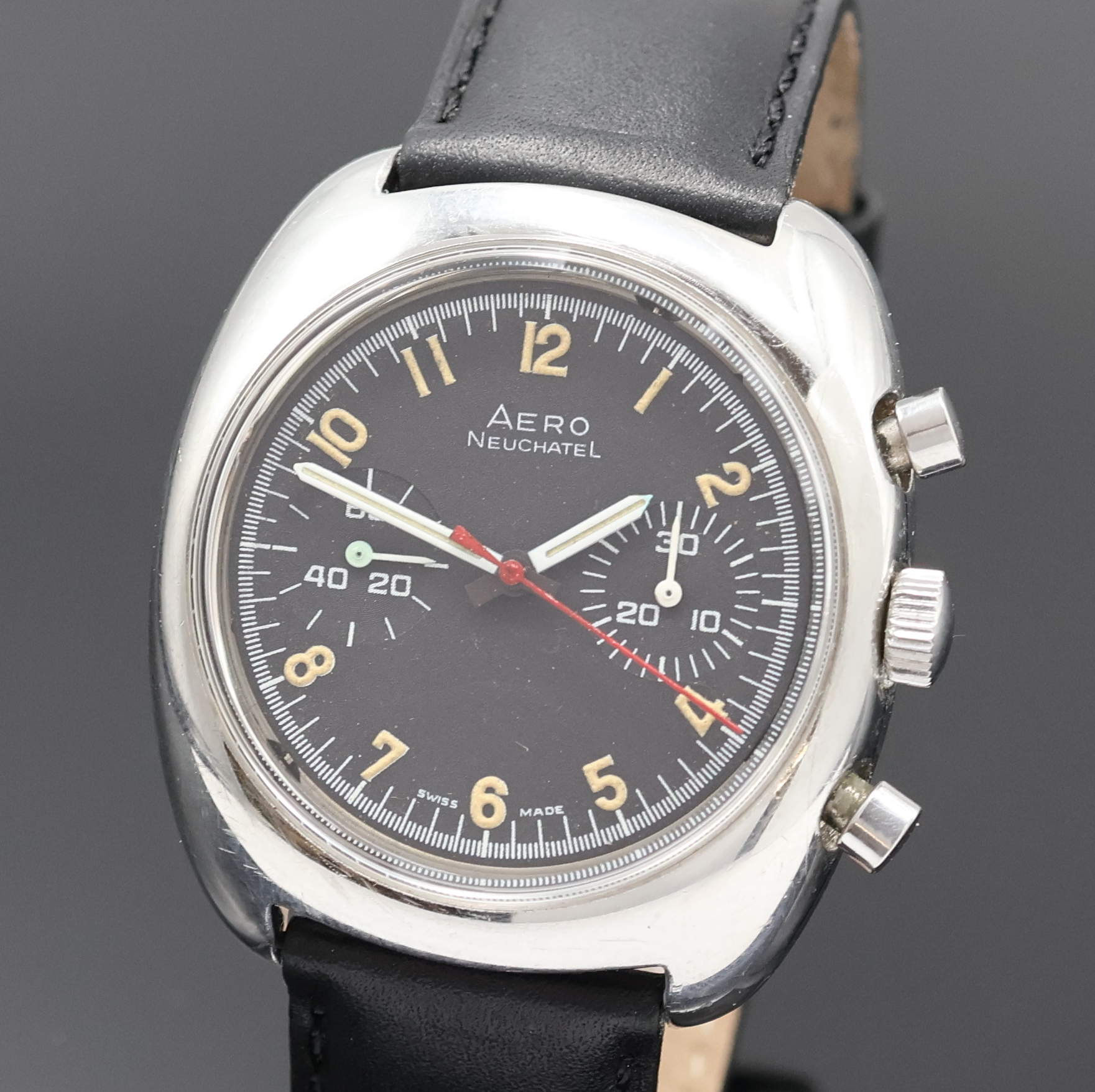 AERO Neuchatel Armbandchronograph in Stahl, Schweiz um 1975, Handaufzug, Boden verschr.,