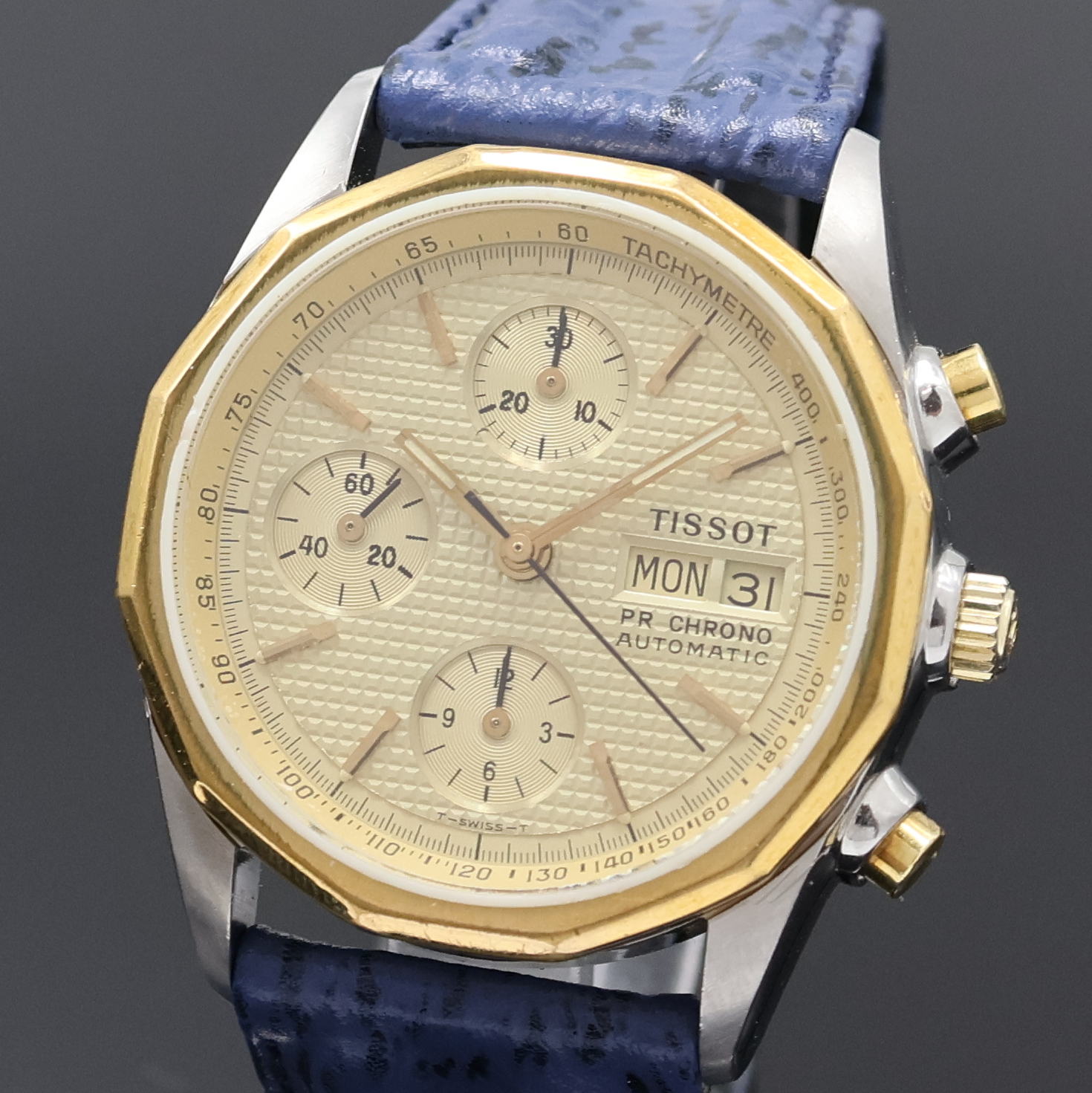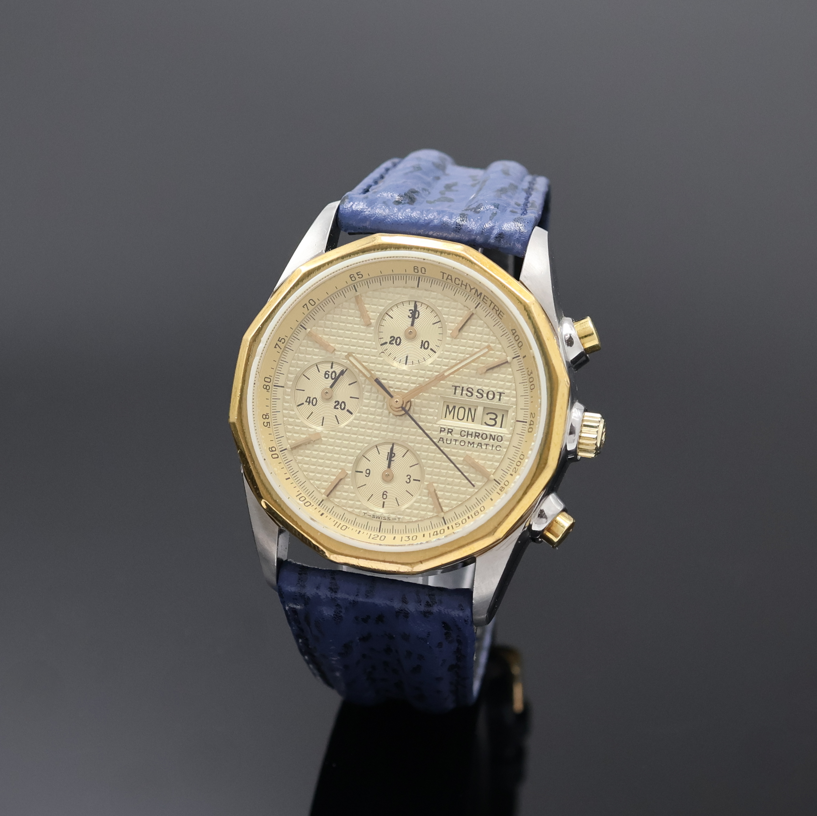 TISSOT PR 100 Armbandchronograph in Stahl, Schweiz 1980er Jahre, Automatik, Boden