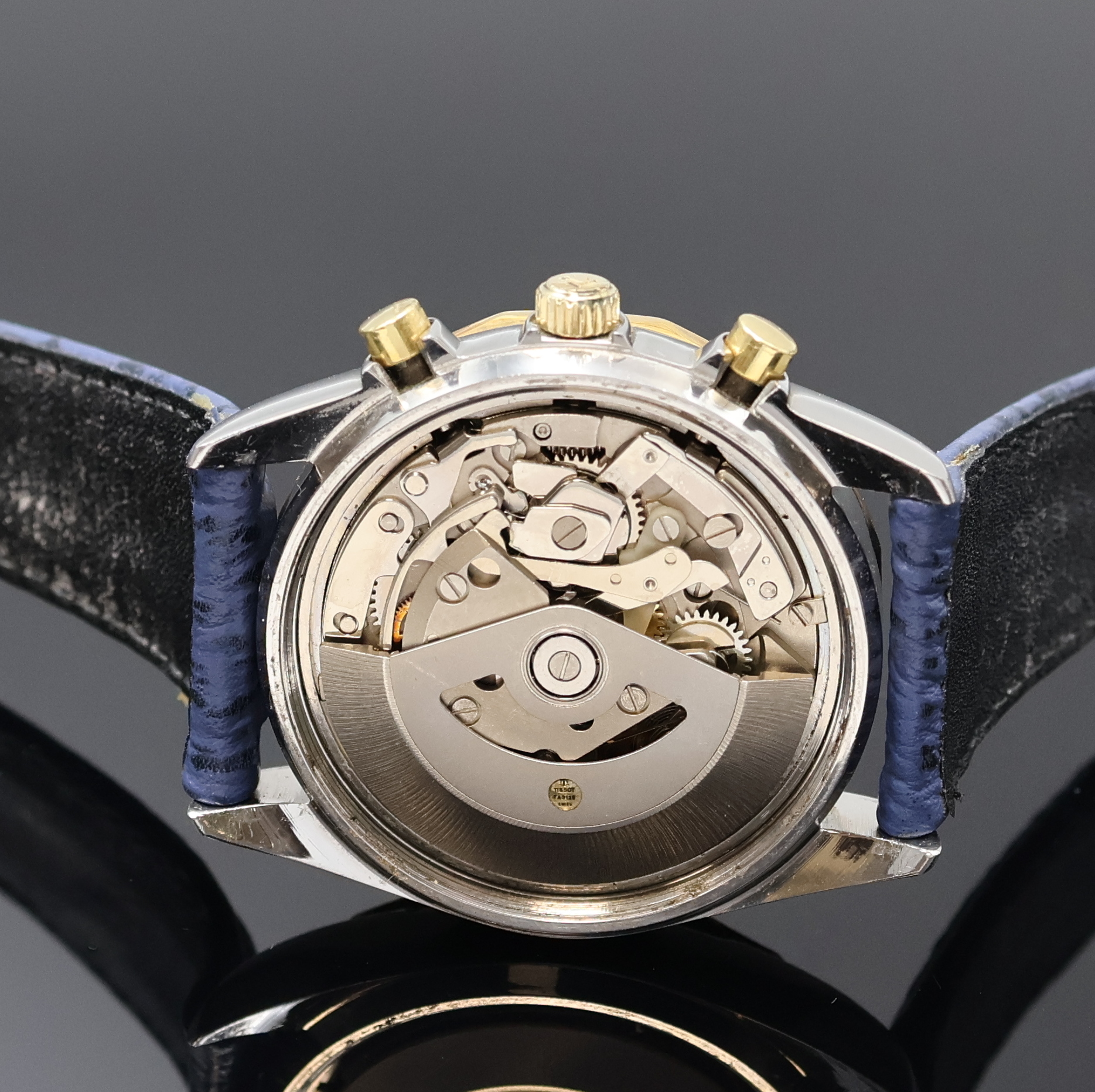Leuchtzeiger, 12 Std.- u. 30 Min.-Zähler, kl. Sek b. 9, Tag u. Datum, Tachymeterskala,