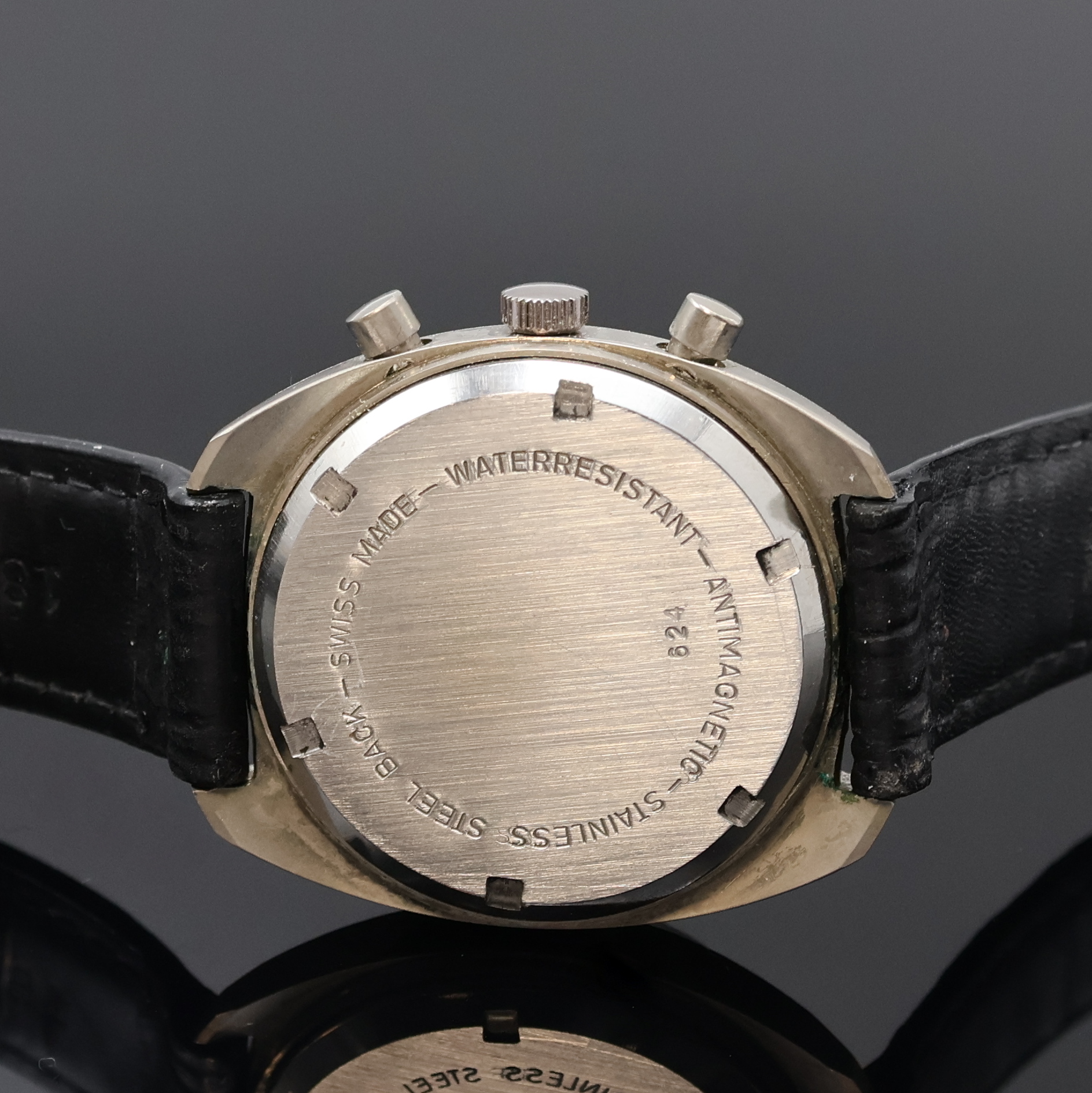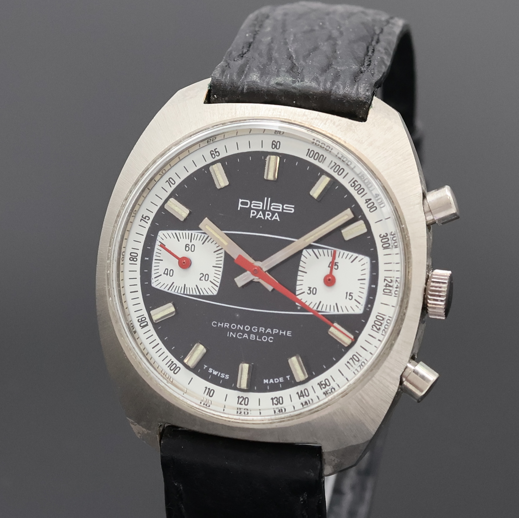PALLAS Para verchromter Armbandchronograph, Schweiz um 1975, Handaufzug, Stahlboden