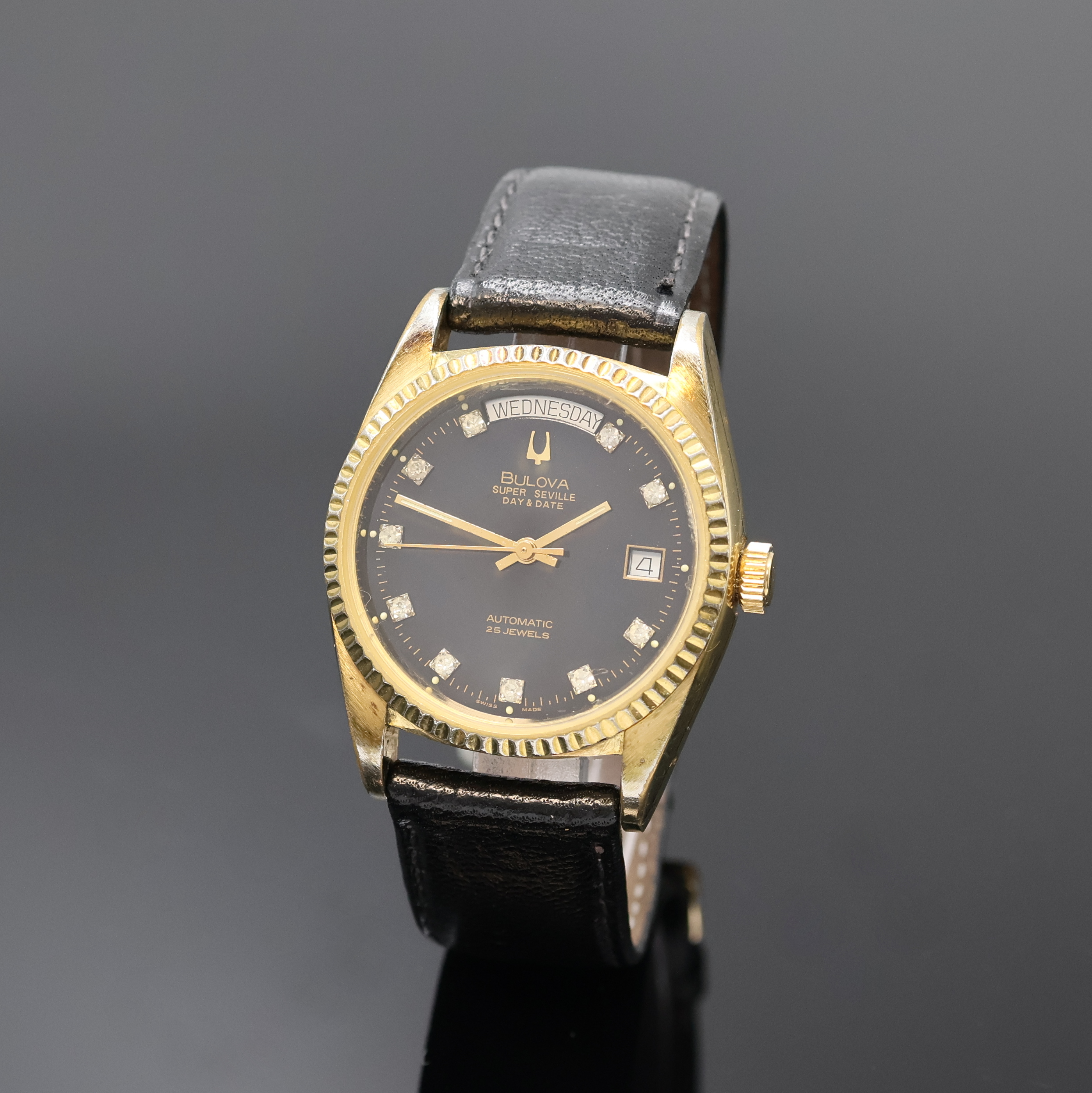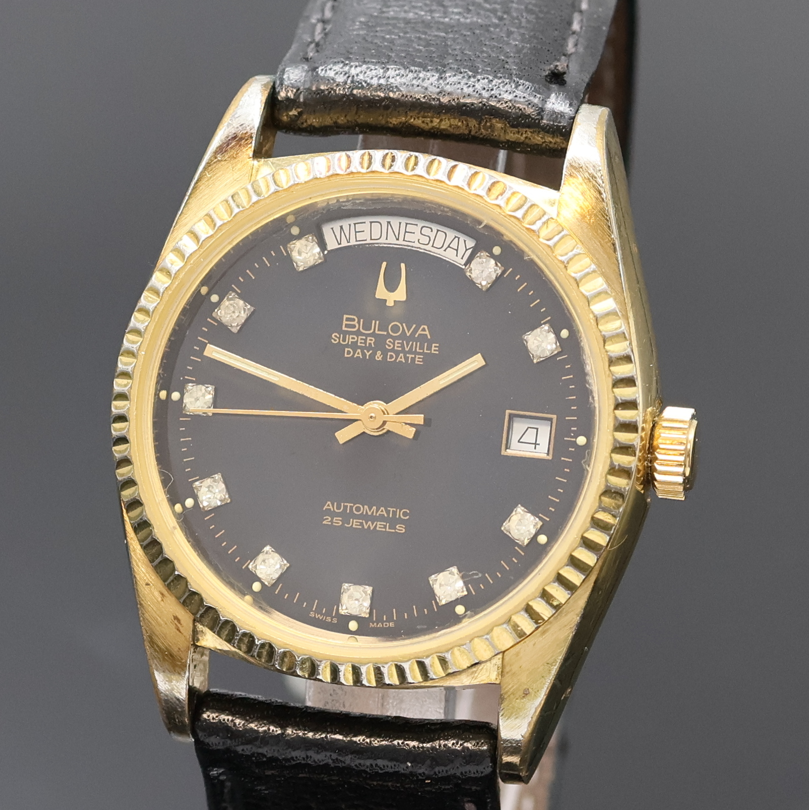 BULOVA Super Seville Day & Date Armbanduhr, Schweiz um 1990, Automatik, verg. Geh.,