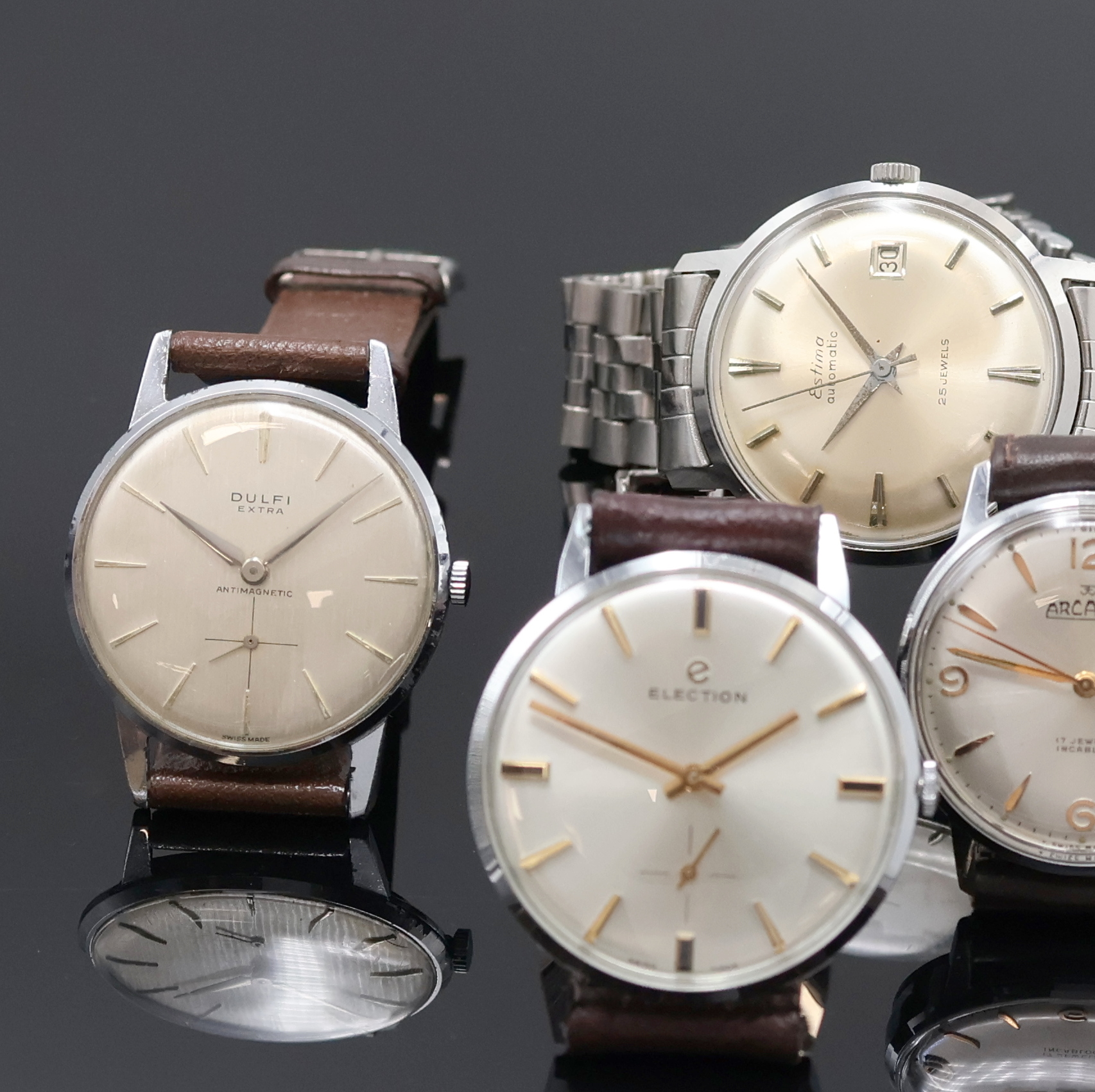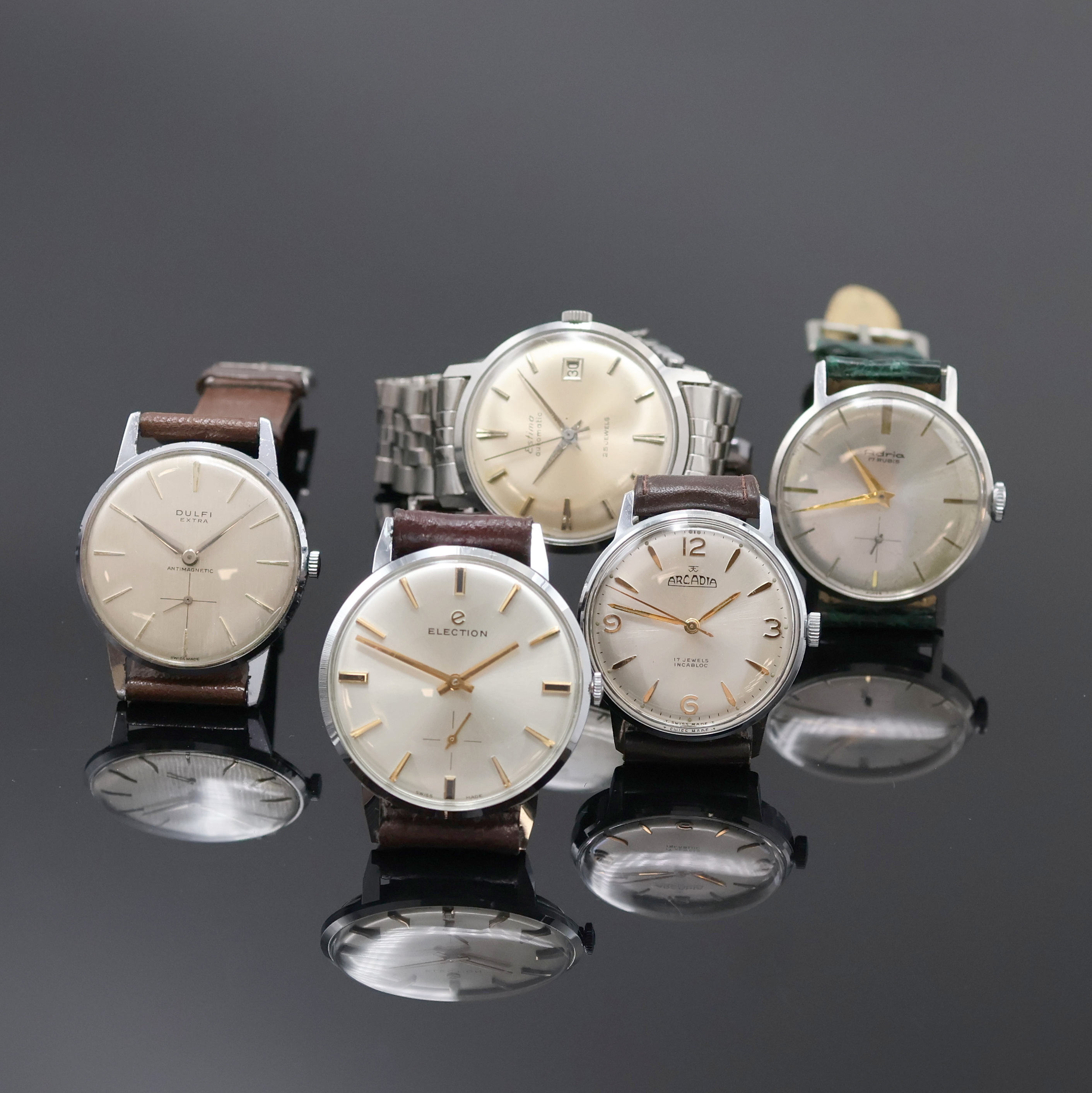 ADRIA, ELECTION, DULFI, ESTIMA und ARCADIA 5 Armbanduhren, Schweiz um 1960, Handaufzug/Automatik,