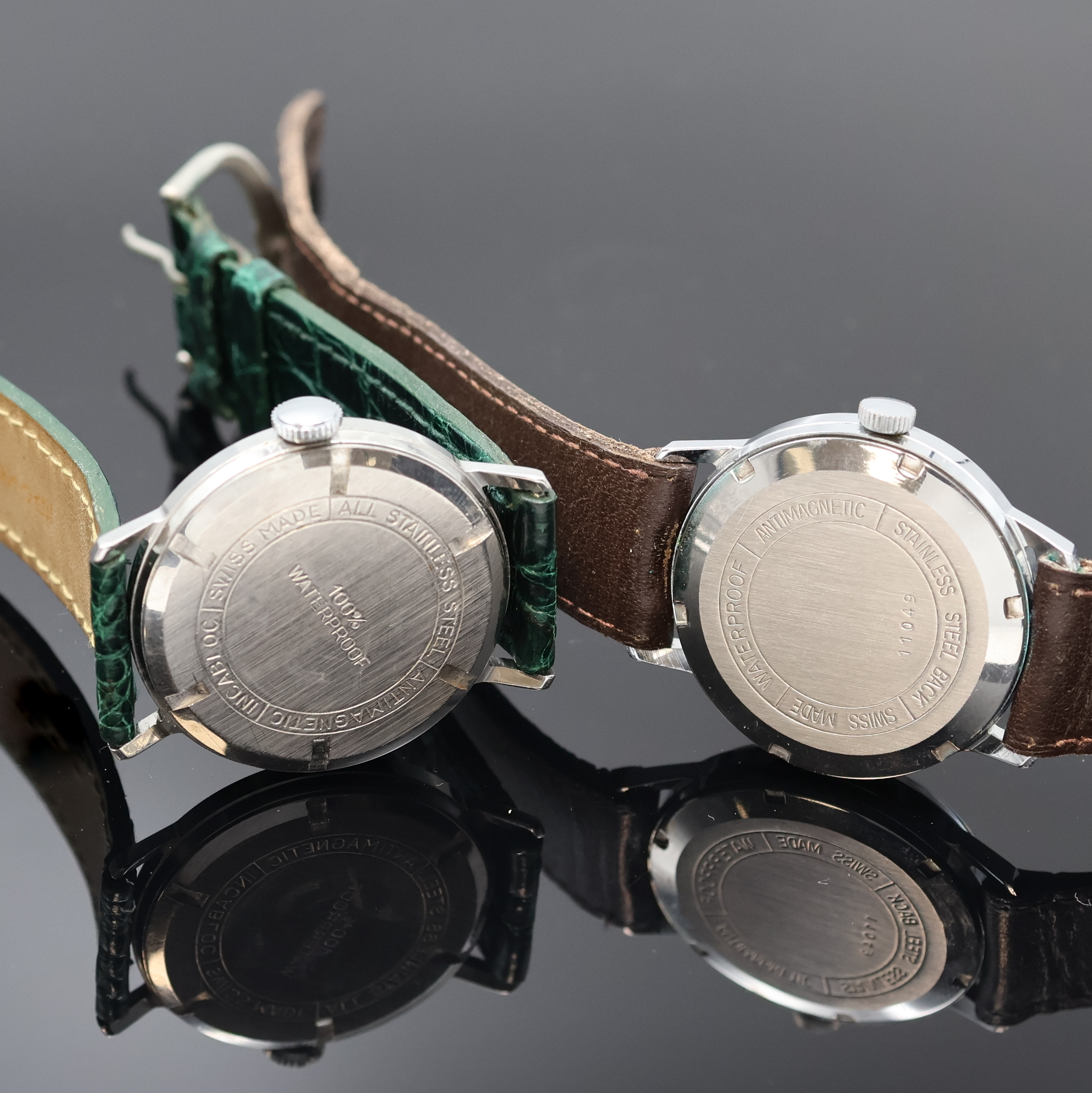 verchr./Edelstahlgeh., Böden verschr. u. gedr., silb. Zifferblätter, aufges. Std.-Ind.,