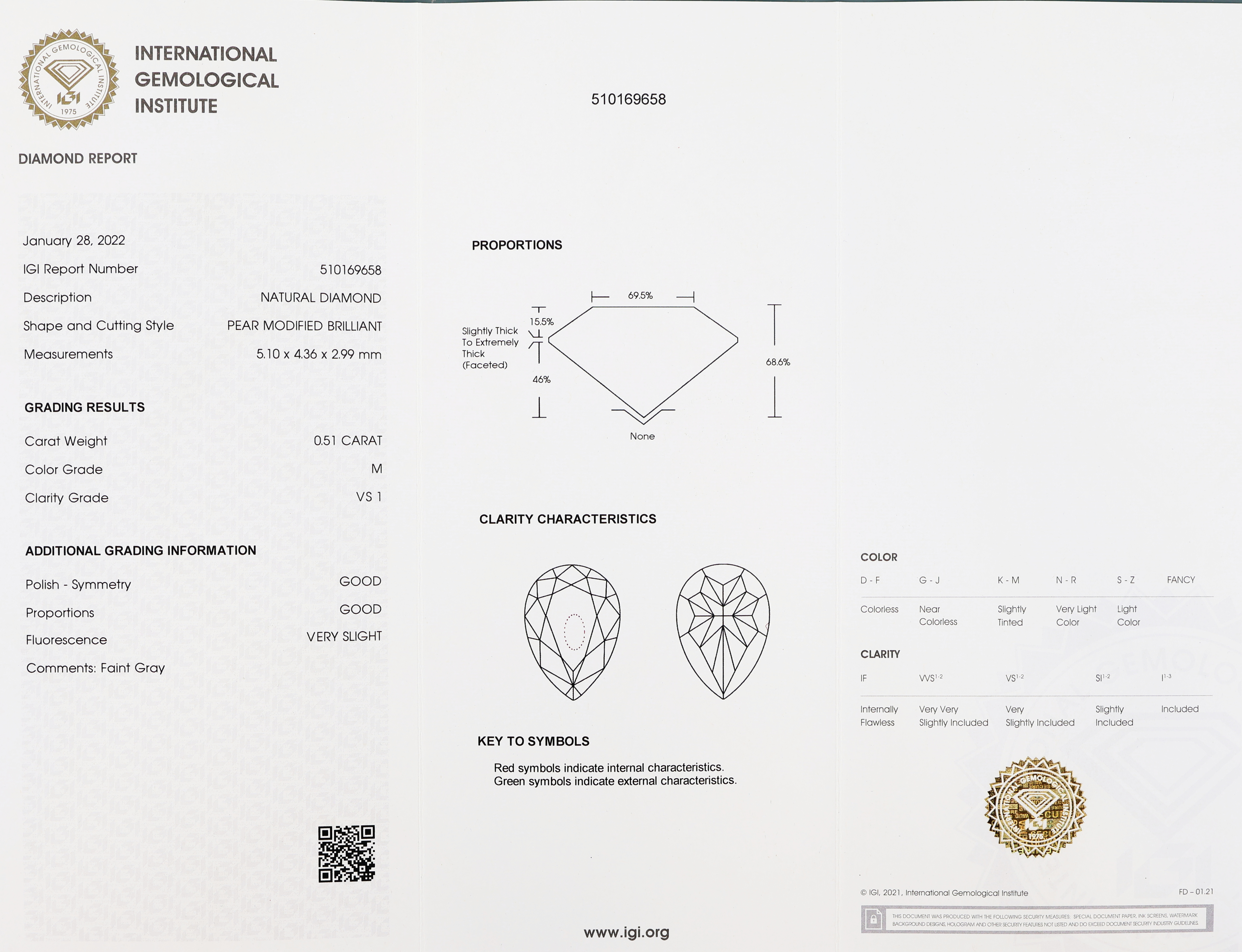 Loser Diamant 0.51 ct Faint Grey(M)/vs1, Polish und Symmetry good, Fluorescence slight, verschweißt, IGI Zertifikat Schätzpreis: 1150, - EUR
