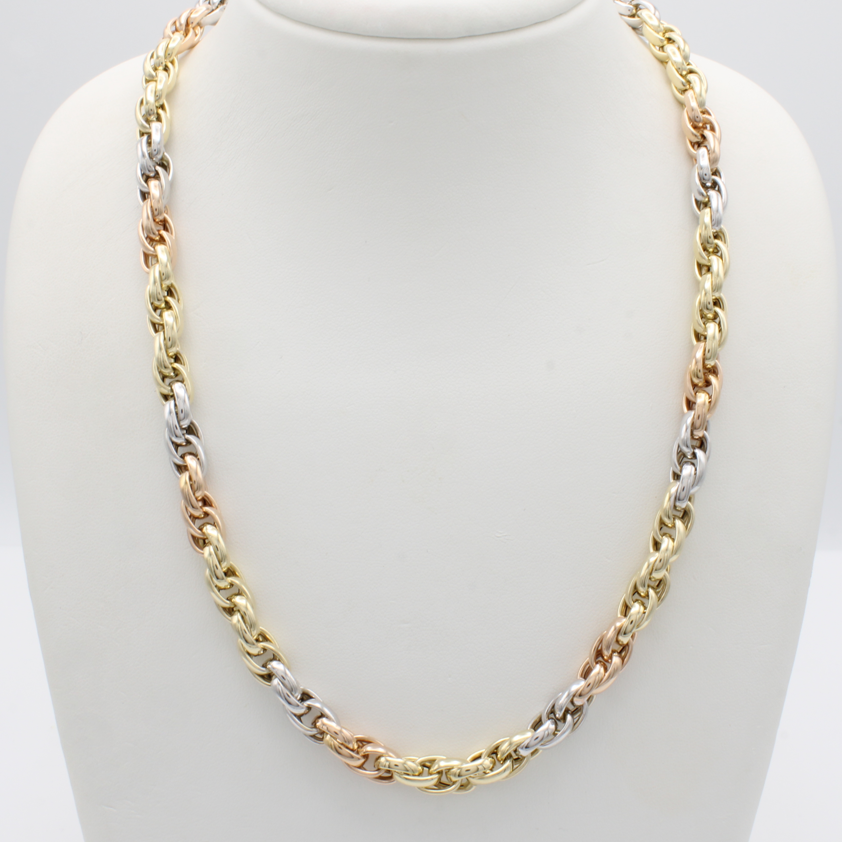 Kordelkette im modernen Design, GG/RG/WG 585/000, Karabinerschließe, L. ca. 50 cm