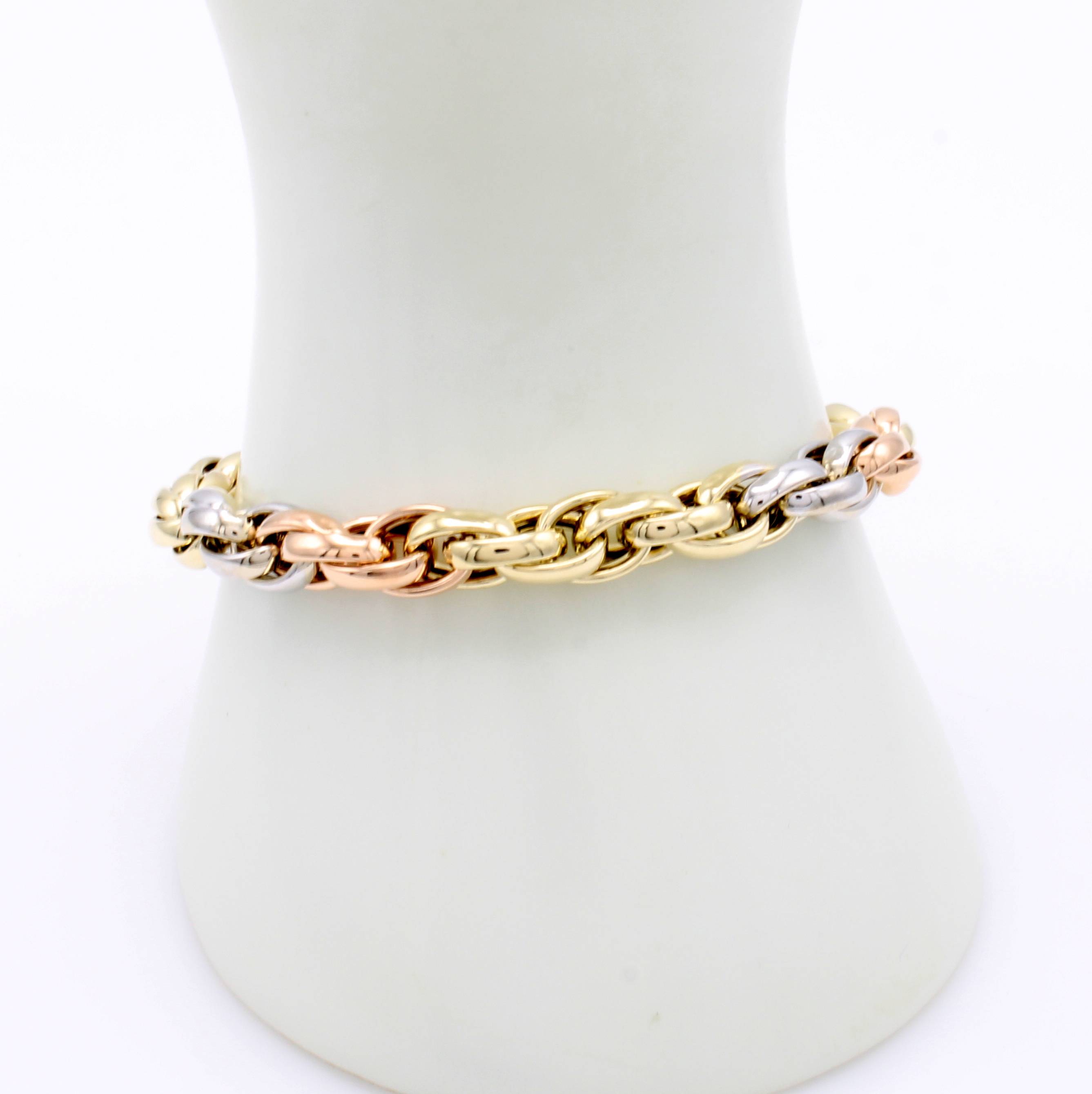 Kordelarmband im modernen Design, GG/RG/WG 585/000, Karabinerschließe, L. ca. 19.5 cm