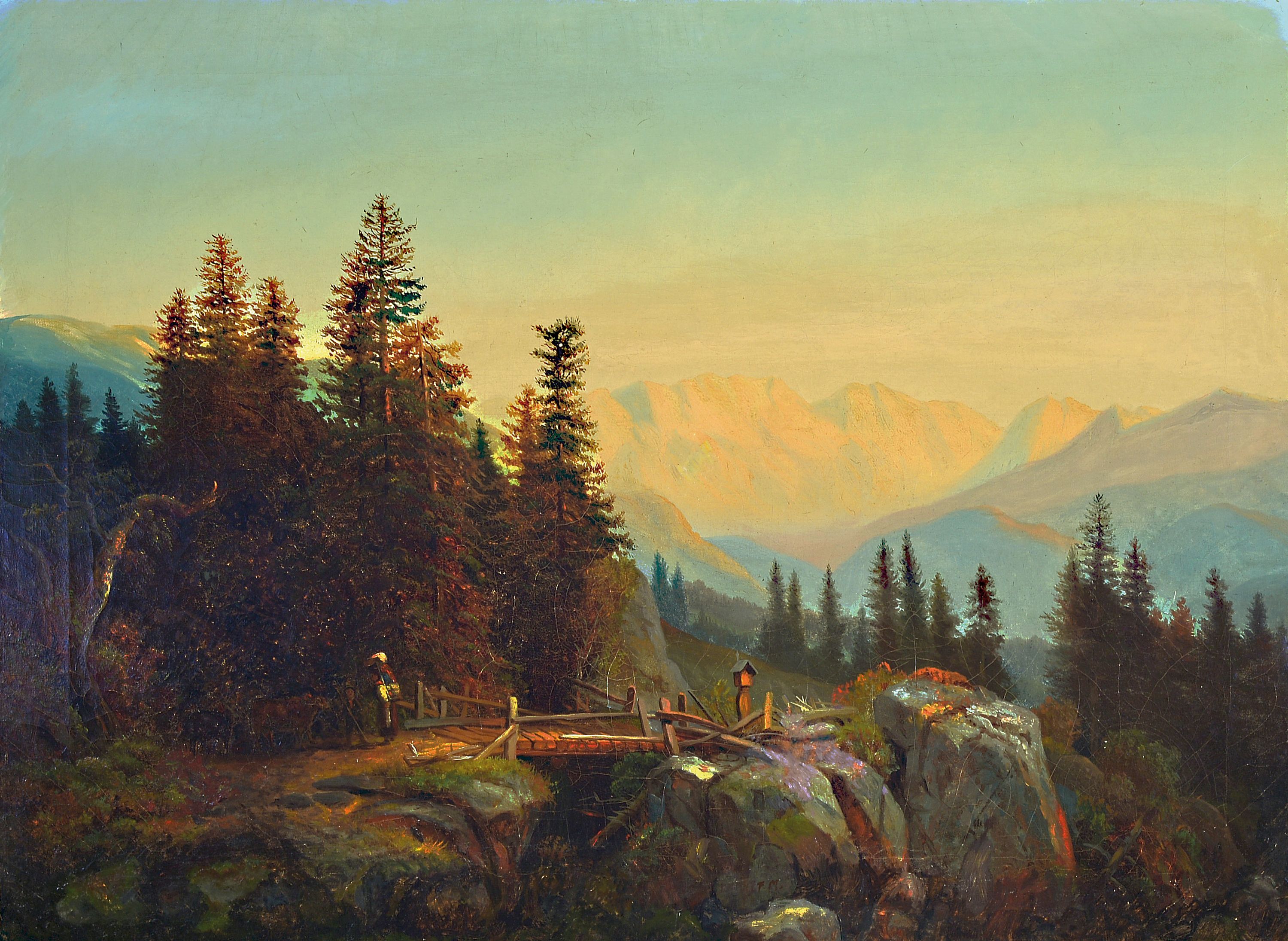 Unbekannter Künstler des ausgehenden 19. Jh., Hochgebirgslandschaft mit Brücke