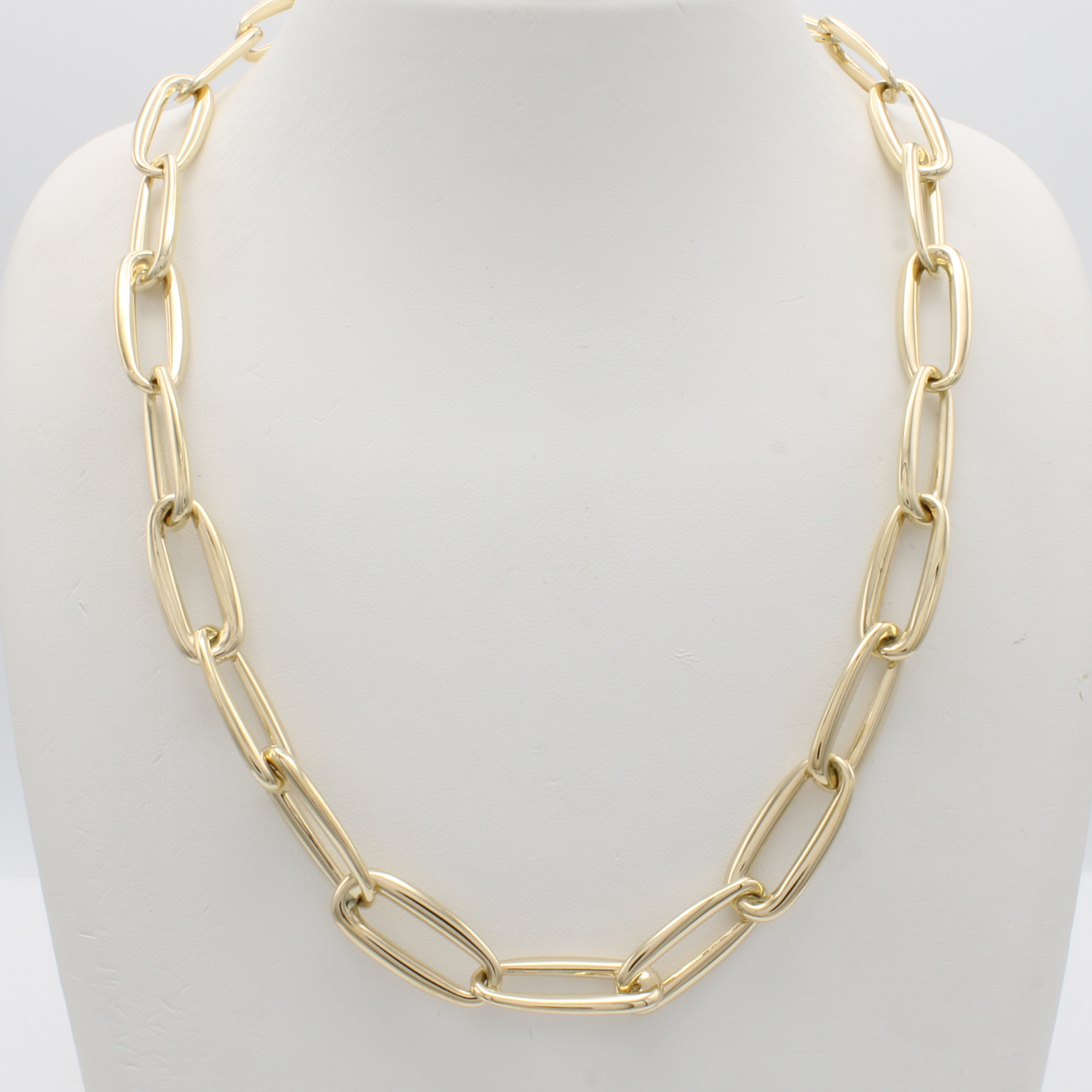 Collier, GG 585/000, länglich ovale Glieder, mod. Federringschl., L. ca. 50 cm
