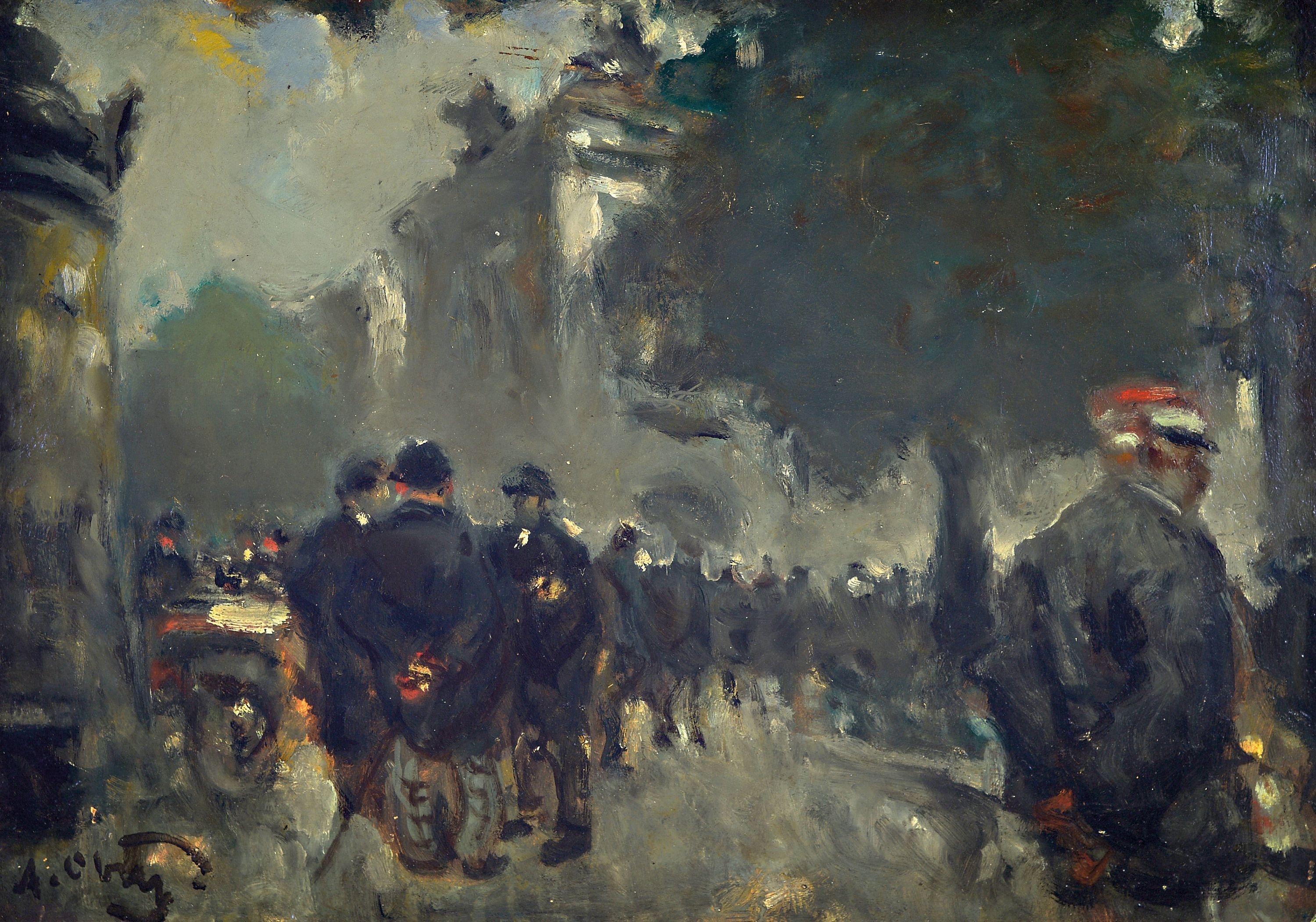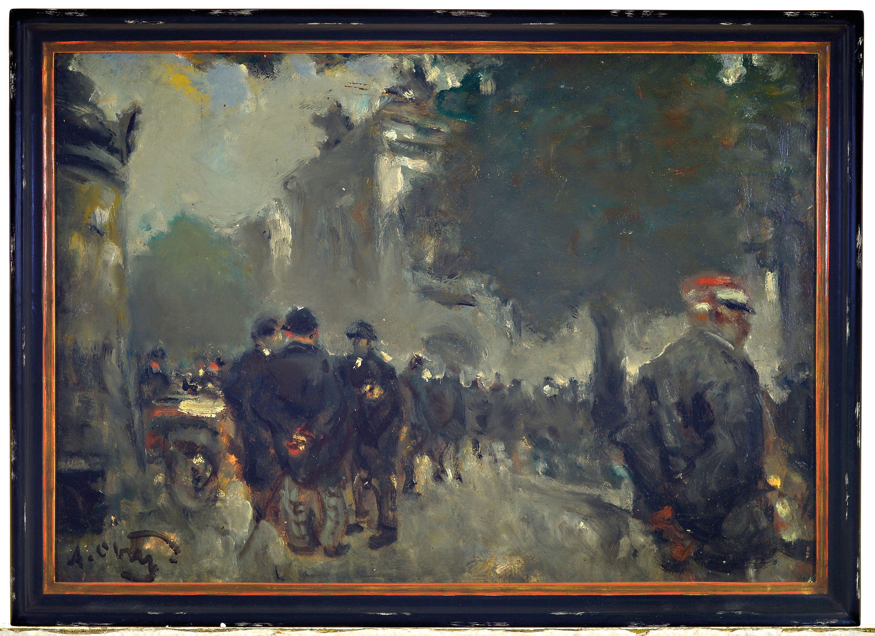 Alexander Oscar Levy, 1881 Bonn-1947 Buffalo , Am Anhalter Bahnhof in Berlin, Öl/Malkarton,