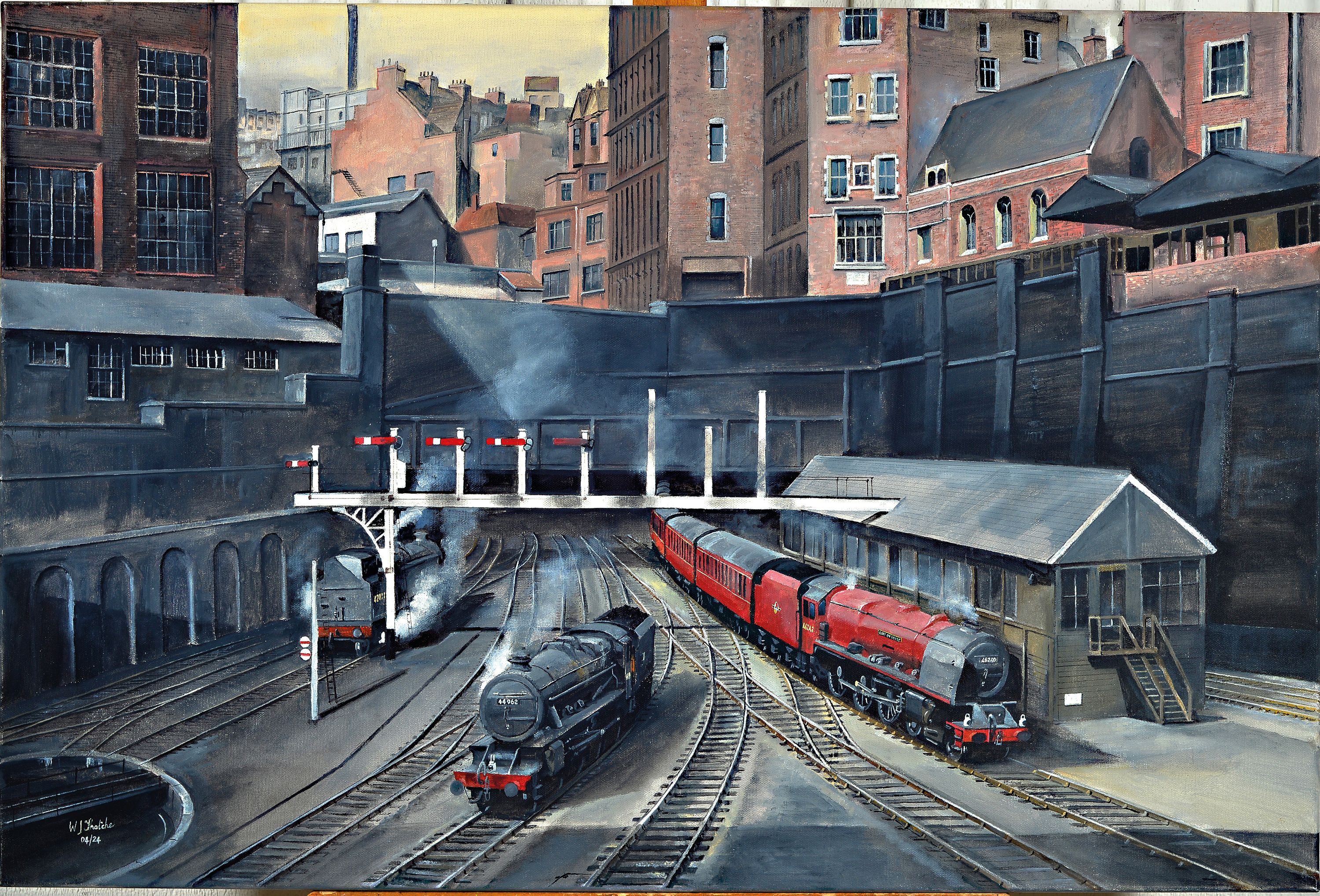 Wrenford Thatcher, geb. 1944 Großbritannien, Züge, die aus dem Tunnel fahren, Acryl/Lwd,