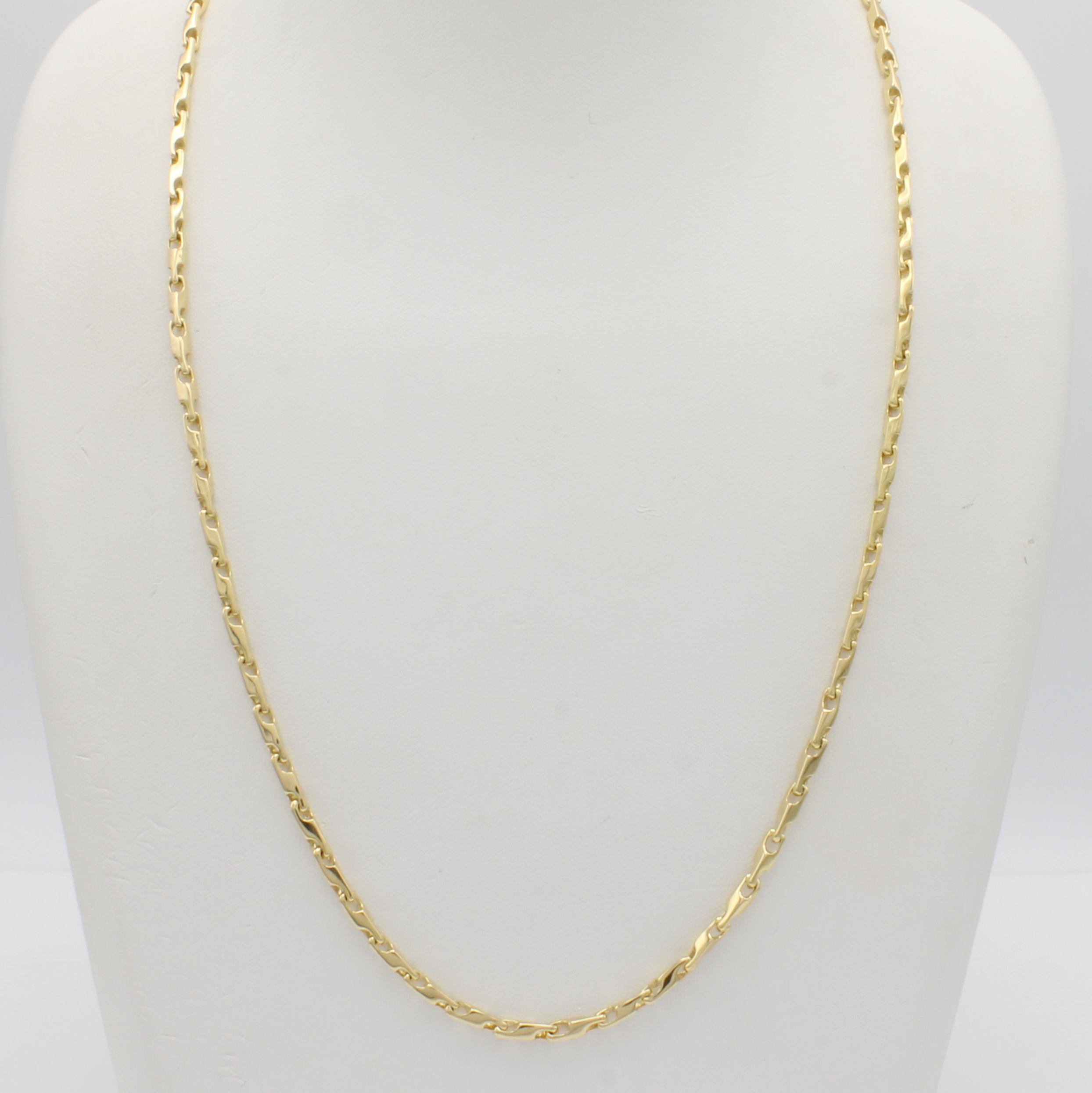 Kette im Phantasiemuster, GG 585/000, in sich gedrehte Glieder, Karabinerschl., Stärke ca. 3 mm, L. ca. 55 cm