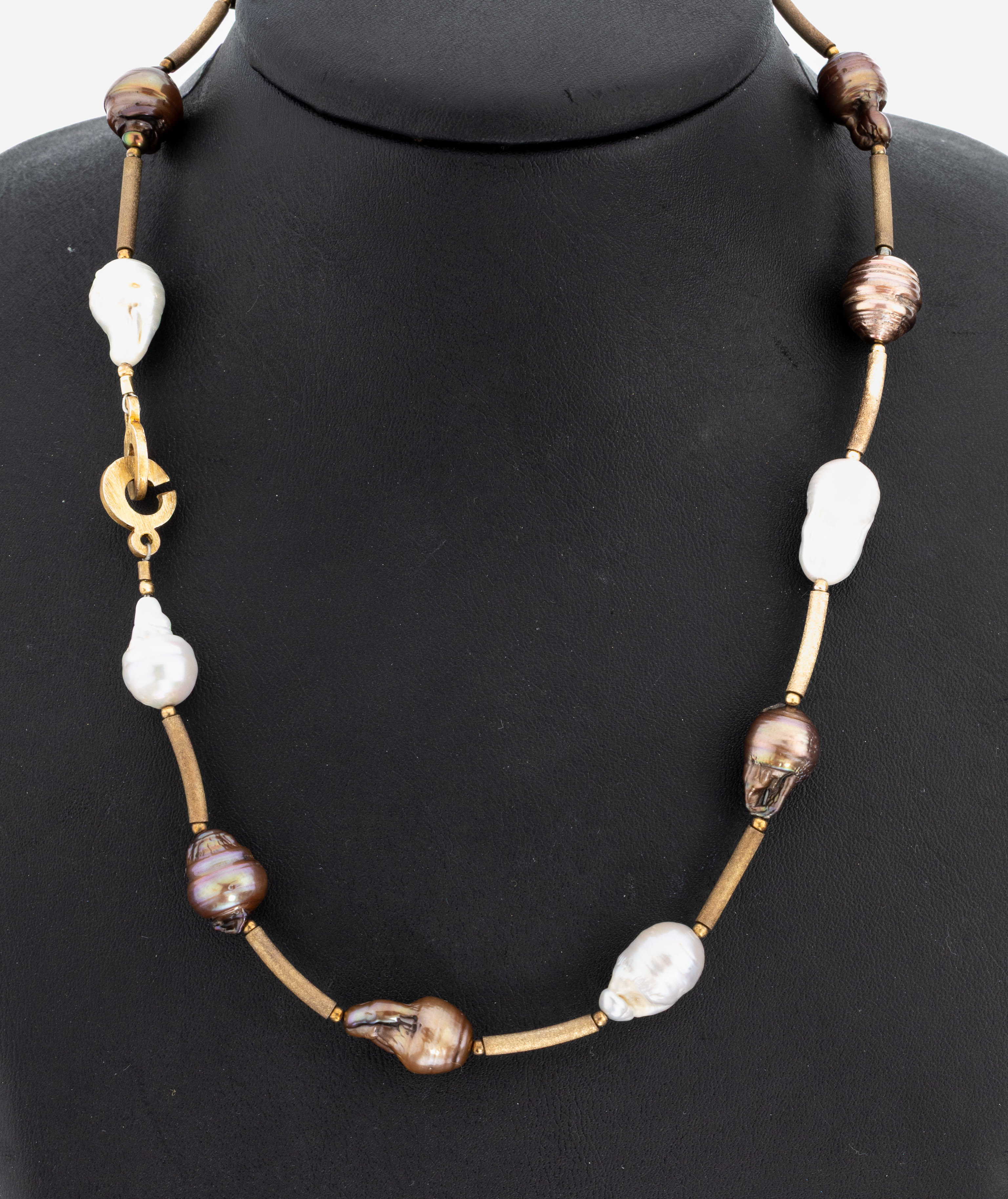 Ausgefallenes Perl-Collier, 925er Silber verg., braune und weiße barocke Zuchtperlen