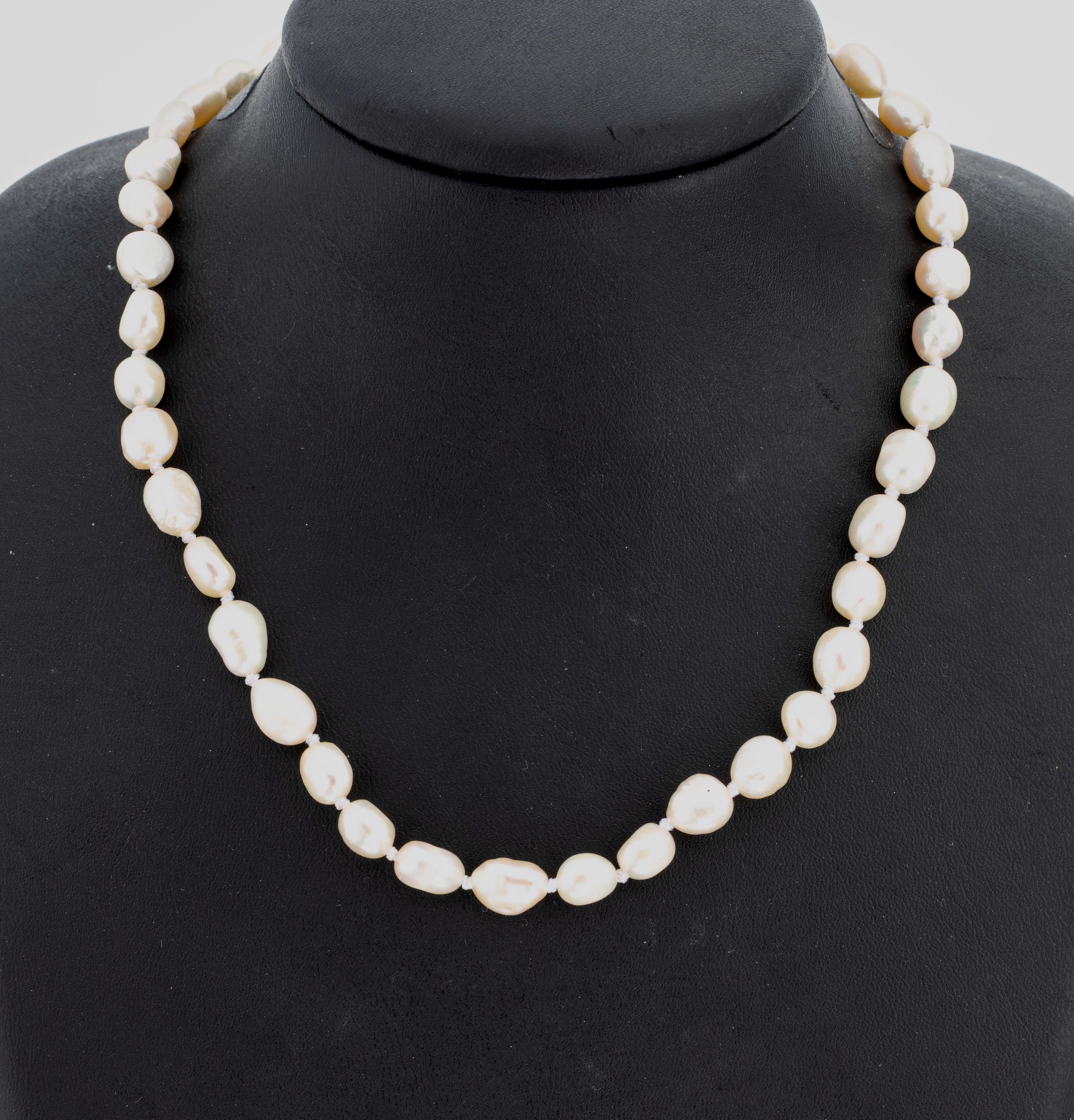 Überlanges Zuchtperl-Collier, endlos, unrunde Süßwasserzuchtperlen, L. ca. 164