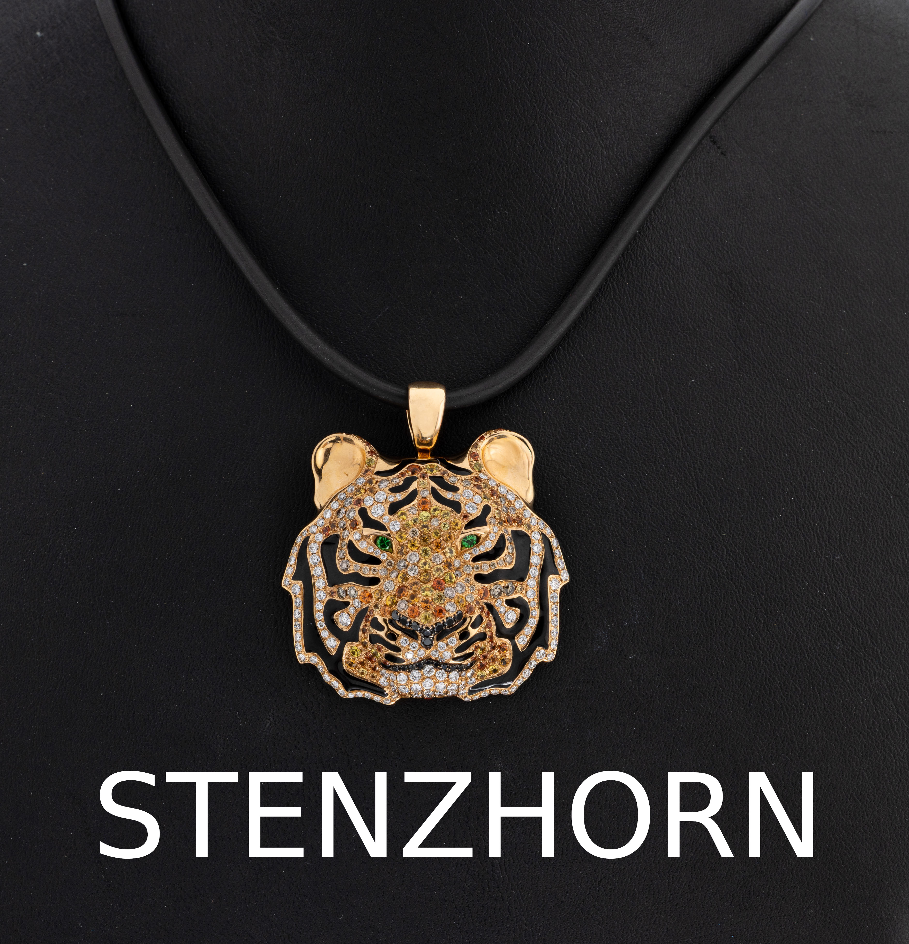 18 kt Gold STENZHORN Brillant-Saphir-Tsavorith-Anhänger, GG 750/000, Darstellung