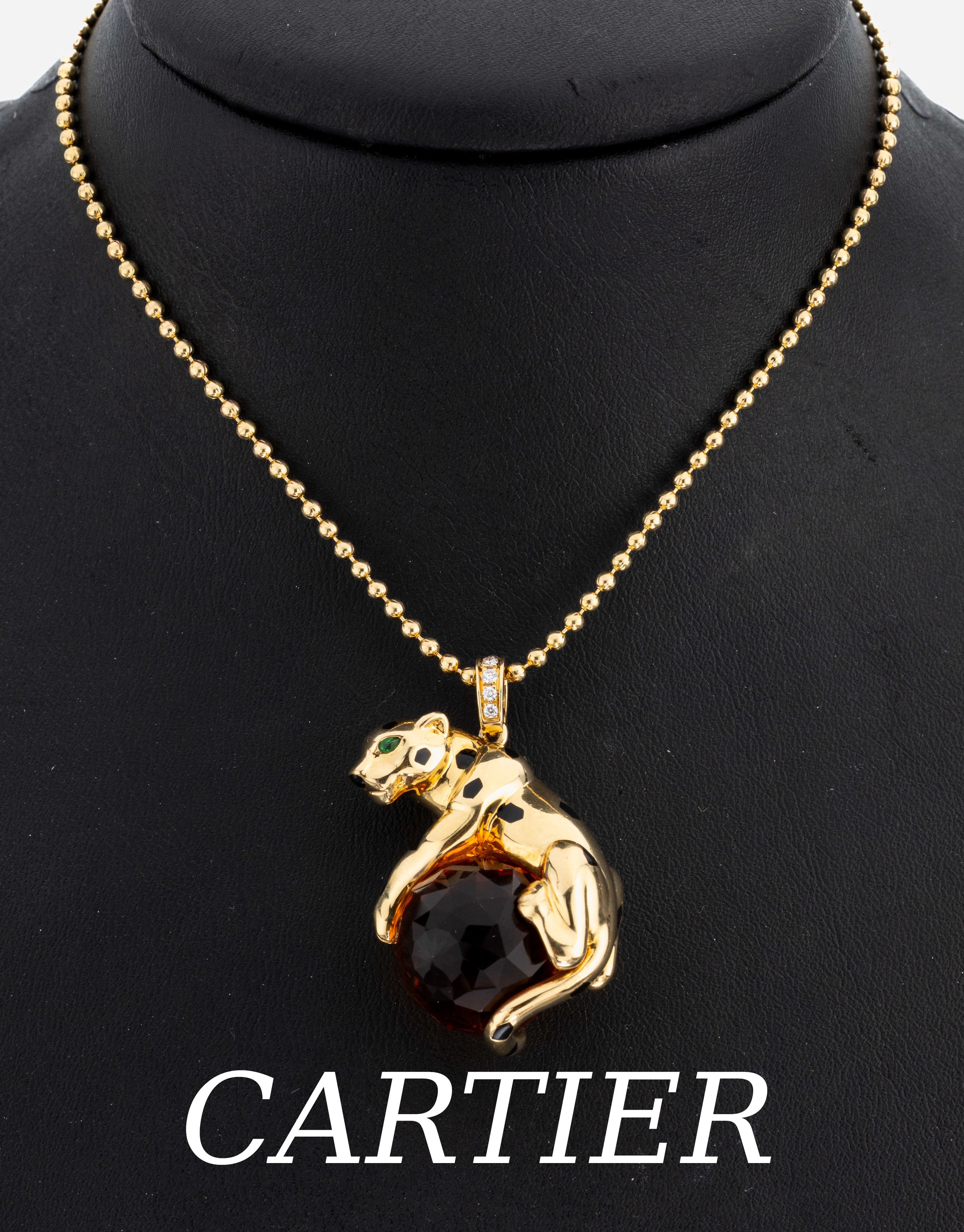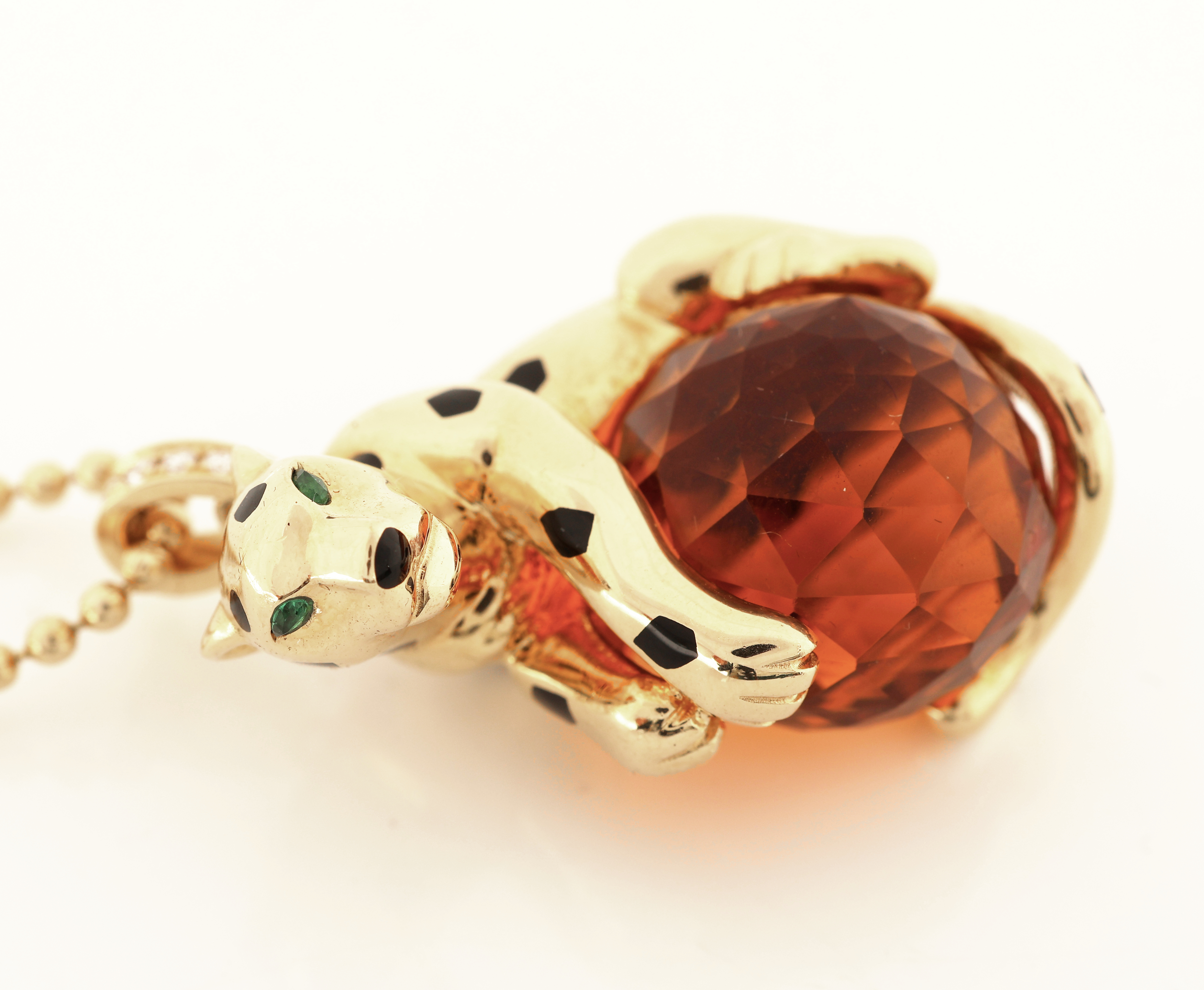 18 kt Gold PANTHERE DE CARTIER Citrin- Brillant-Anhänger, GG 750/000, Darstellung