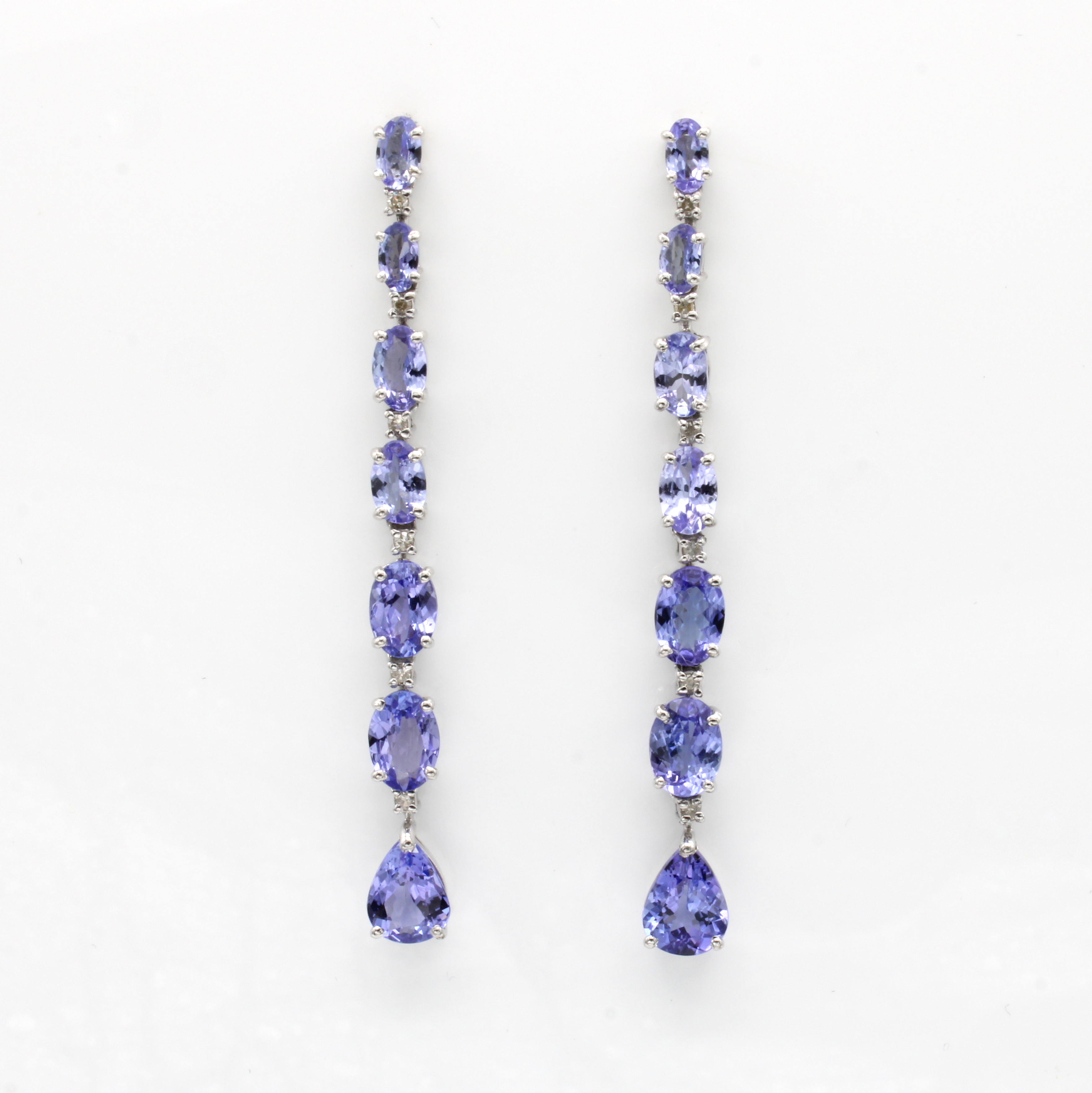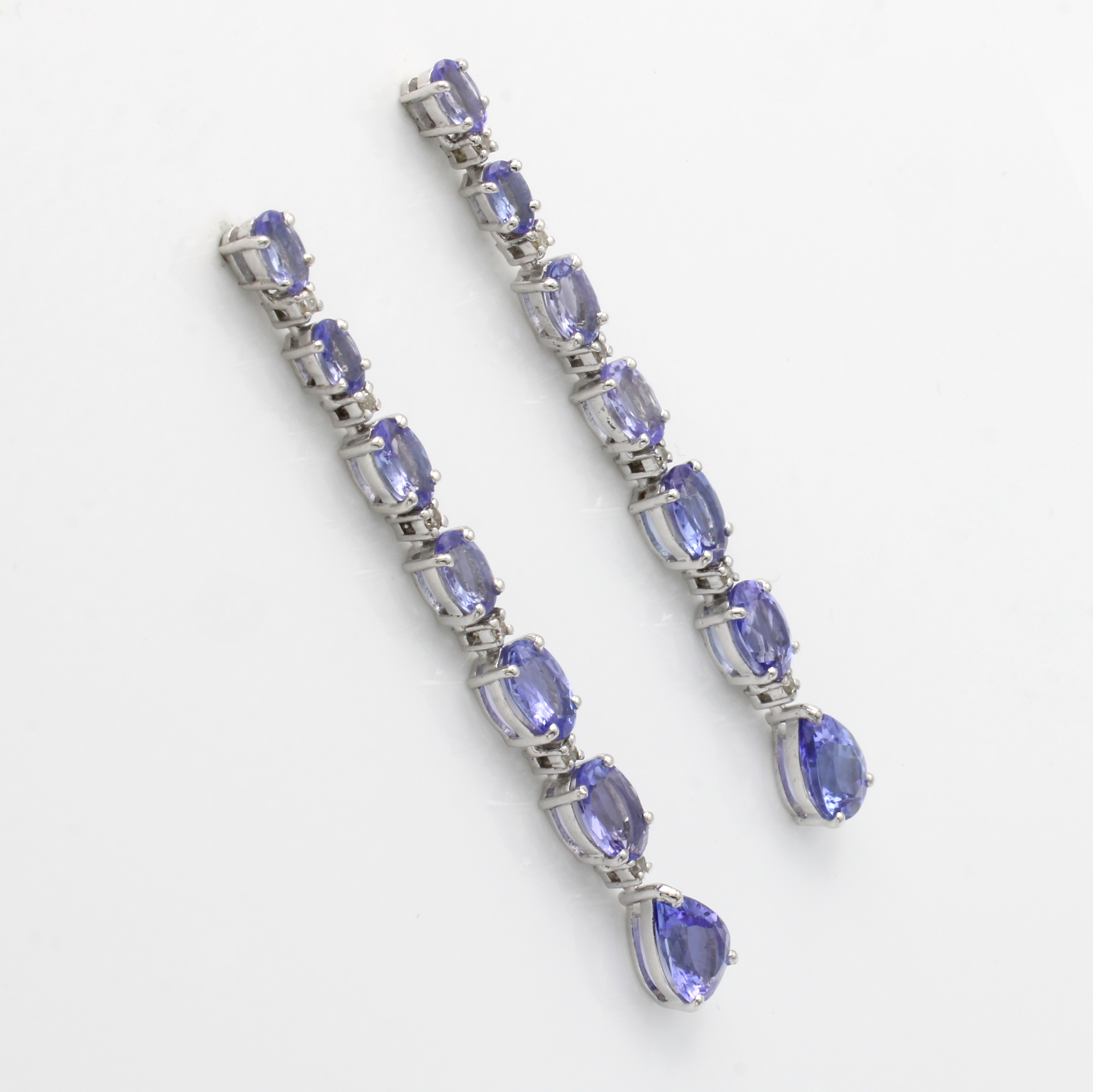 Paar Ohrstecker mit Tansaniten und Diamanten, 925er Silber, ovale u. tropfenförm. Tansanite zus. ca. 8.00 ct, Diam. zus. ca. 0.20 ct Weiß-get./p Schätzpreis: 2200, - EUR