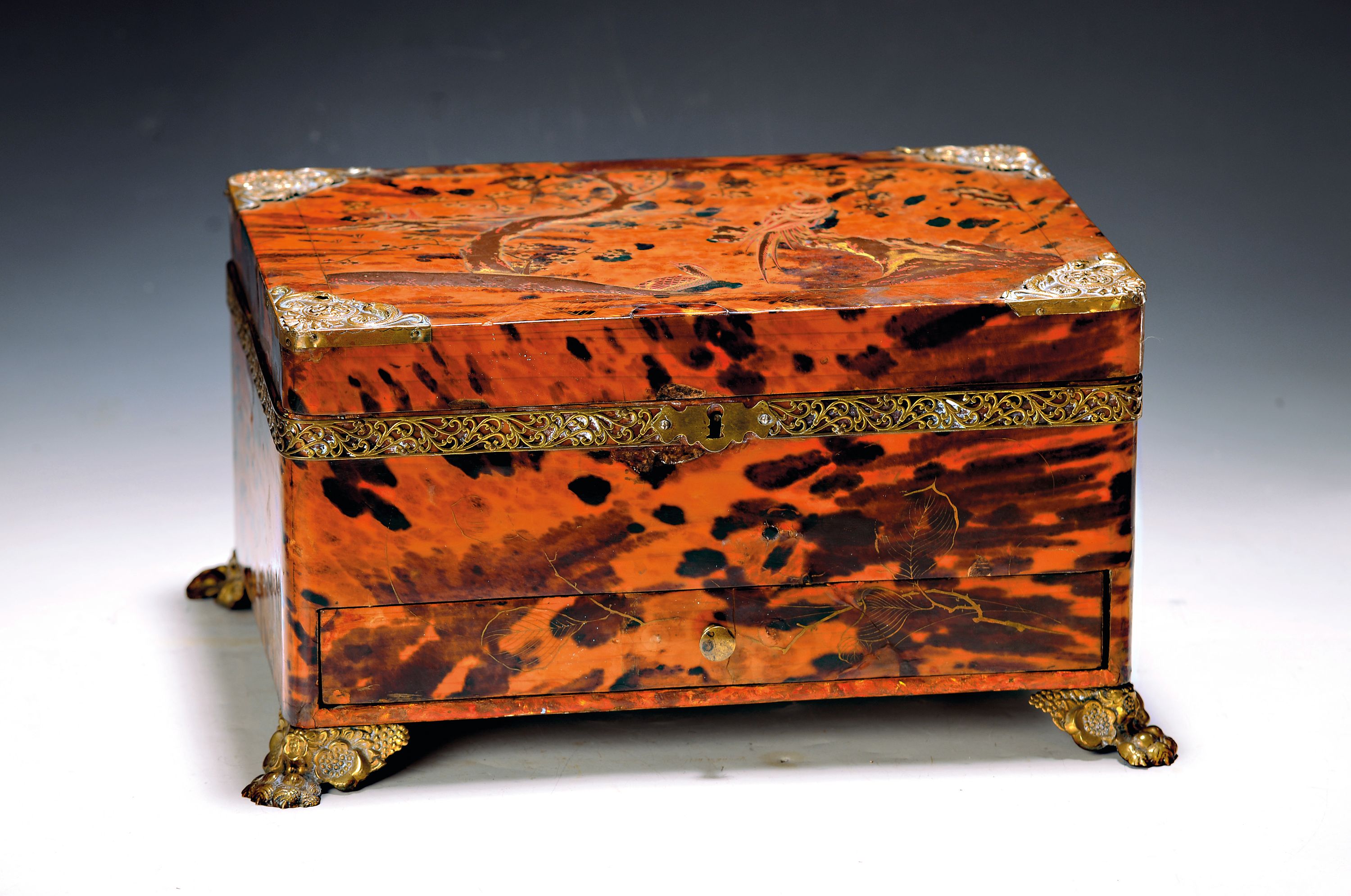 Nähkästchen, Frankreich, 19. Jh., Holzkorpus mit Schildpattmantel, Applikationen