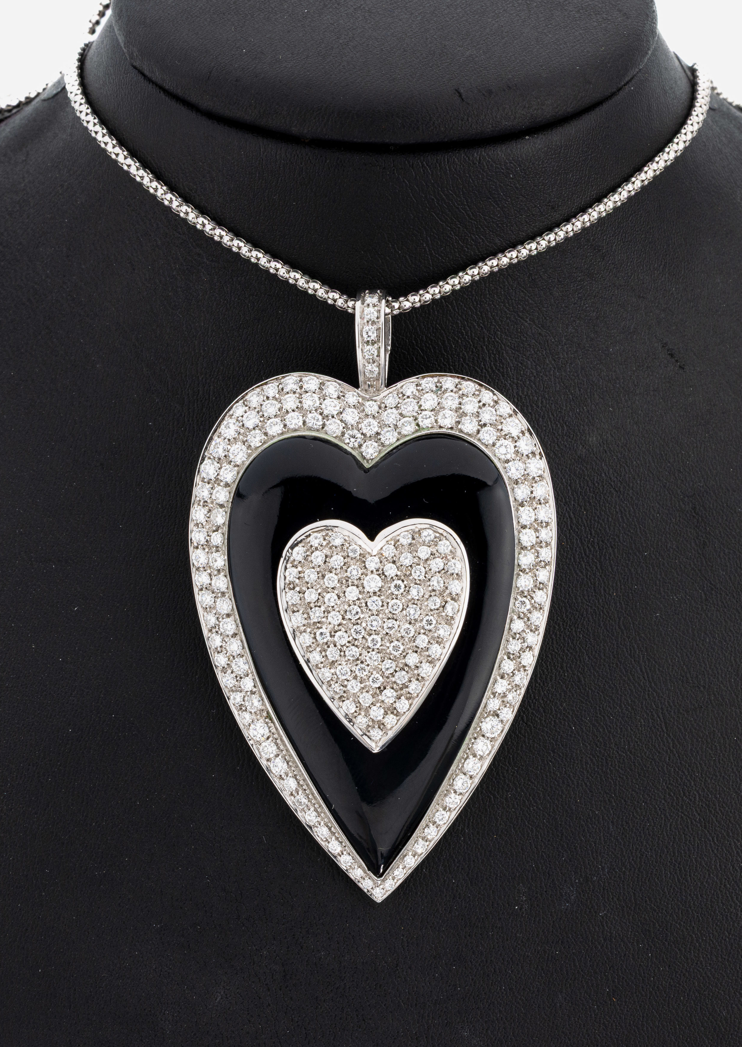 18 kt Gold Brillant-Onyx-Anhänger, WG 750/000, gr. prunkvolles Herz, ca. 180 Brillanten
