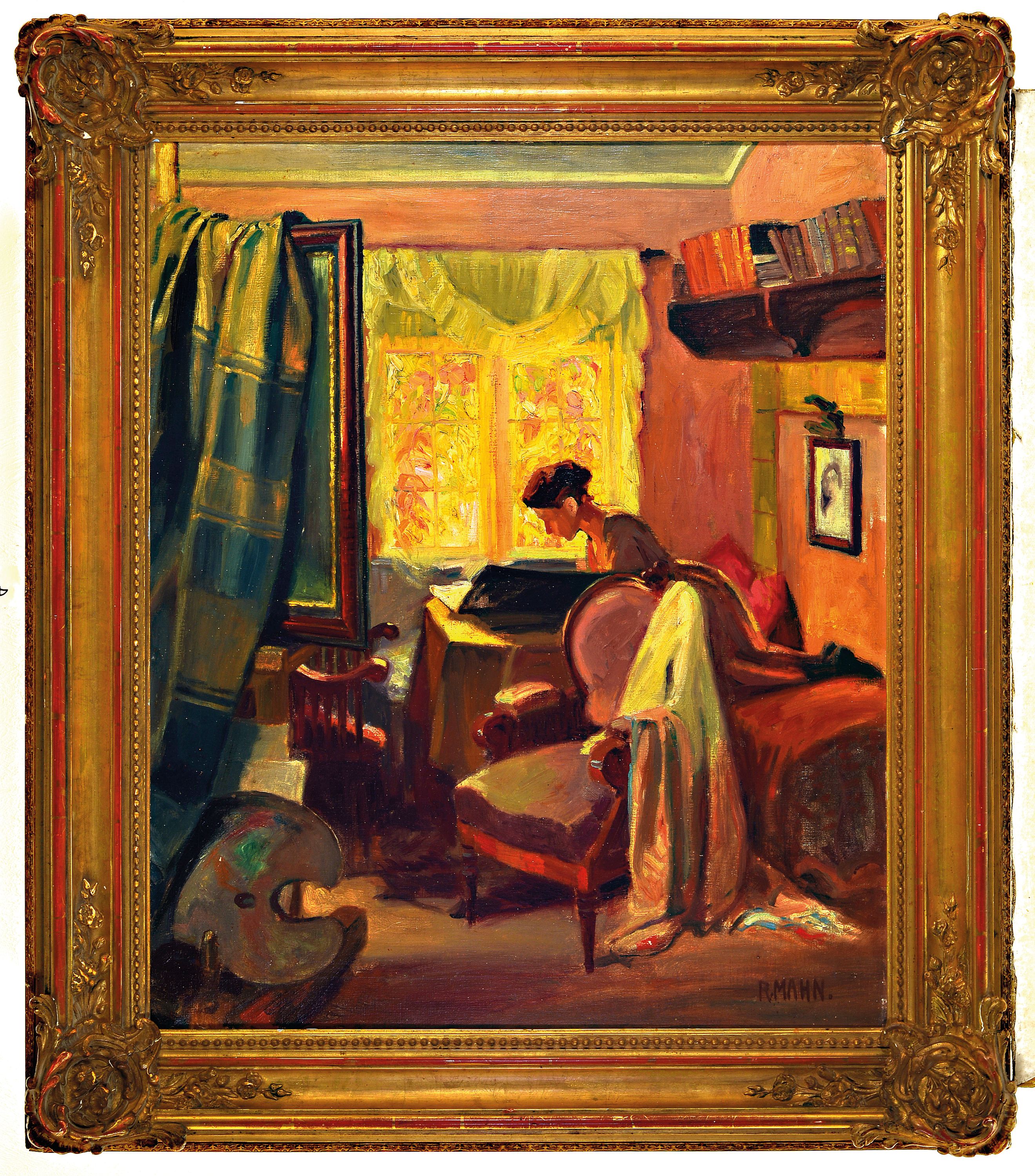 und -kittel, im Zentrum das Fenster, Öl/Lwd, rechts unten signiert, rückseitig