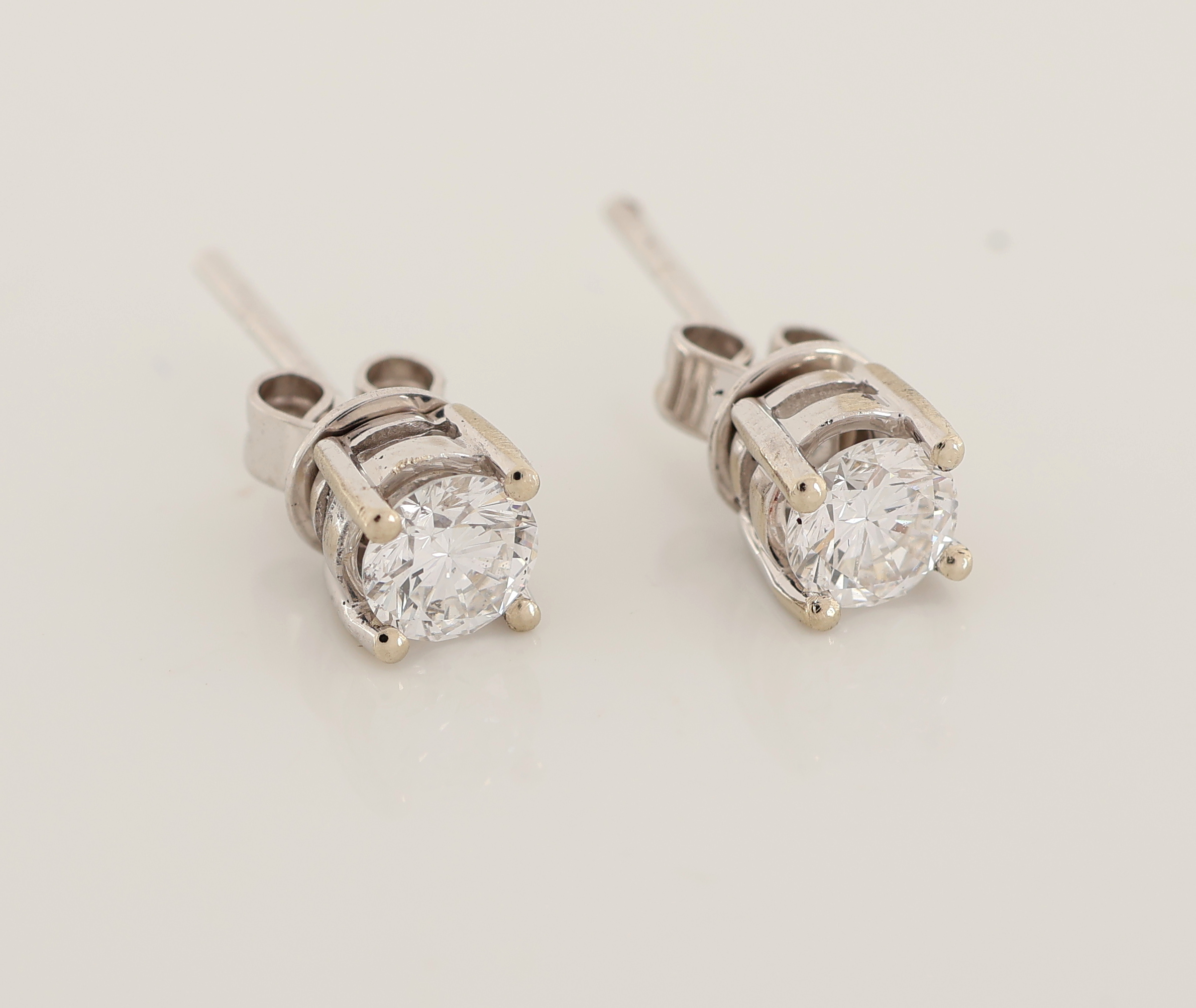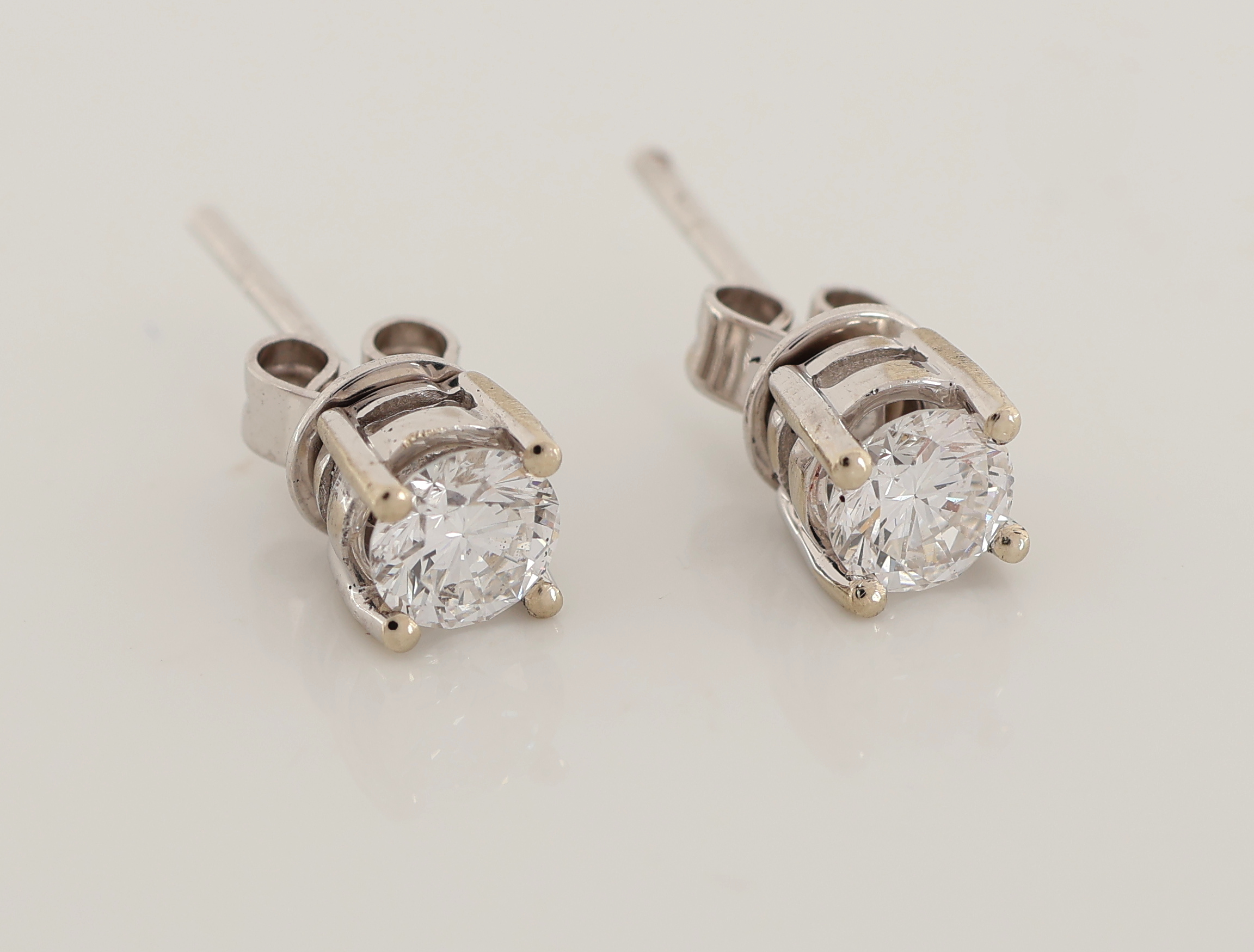 Paar 14 kt Gold Brillant-Ohrstecker, WG 585/000, 2 Brillanten zus. ca. 0.50 ct hochfeines Weiß(D,E)/lr, IGI-Expertisen anbei
