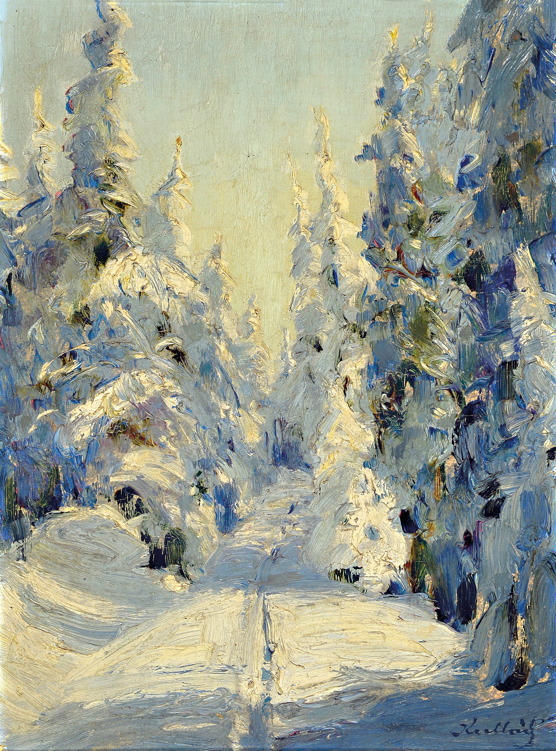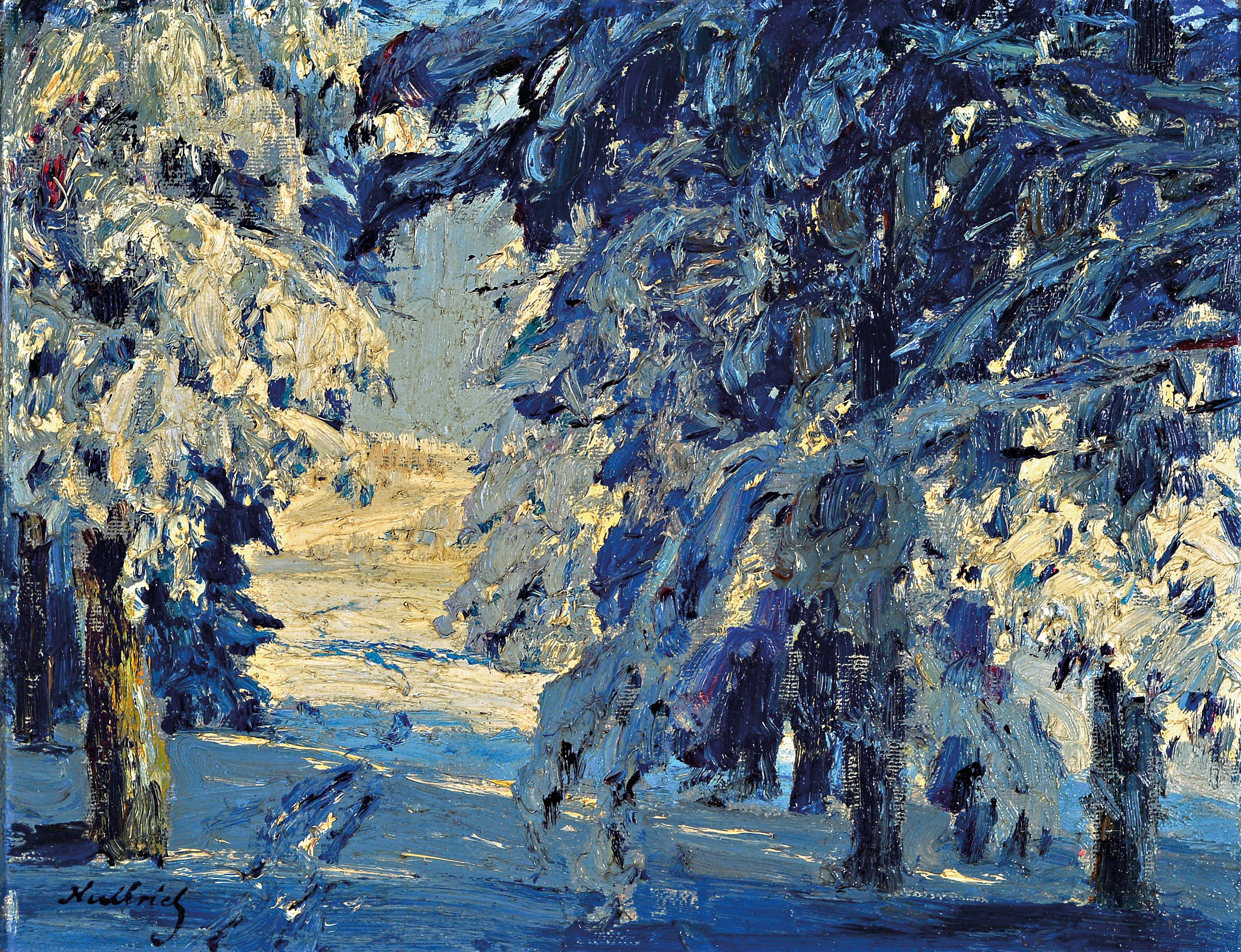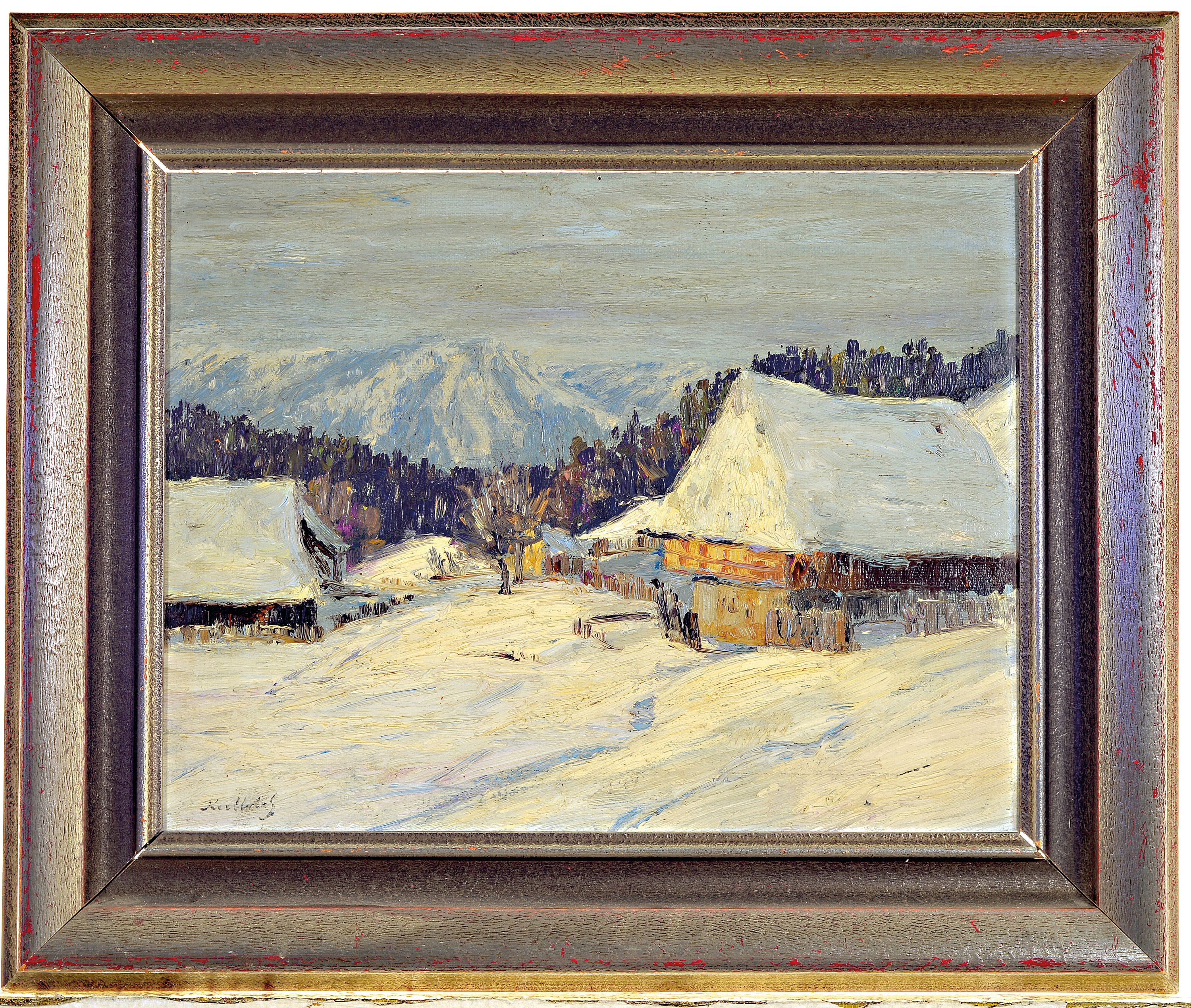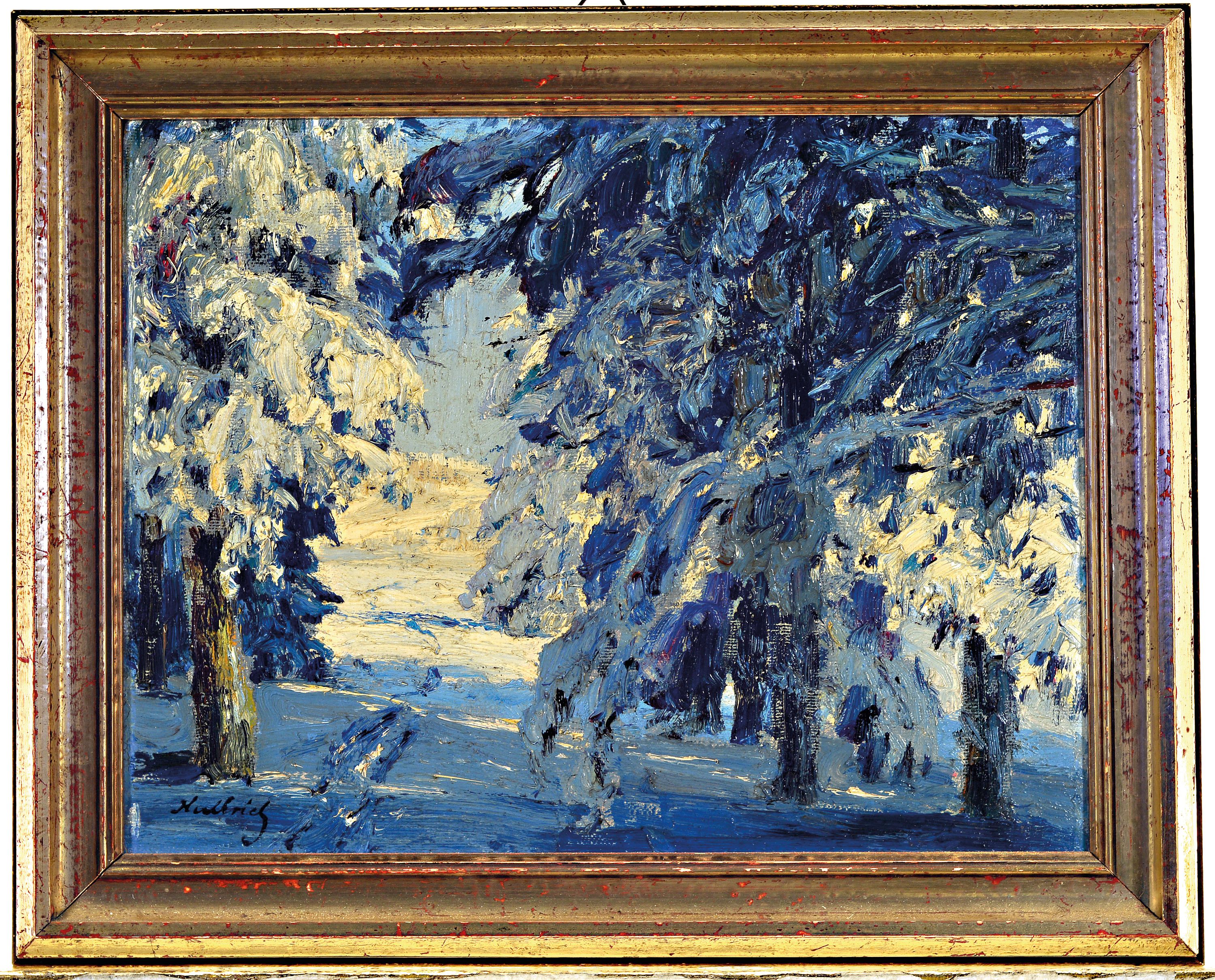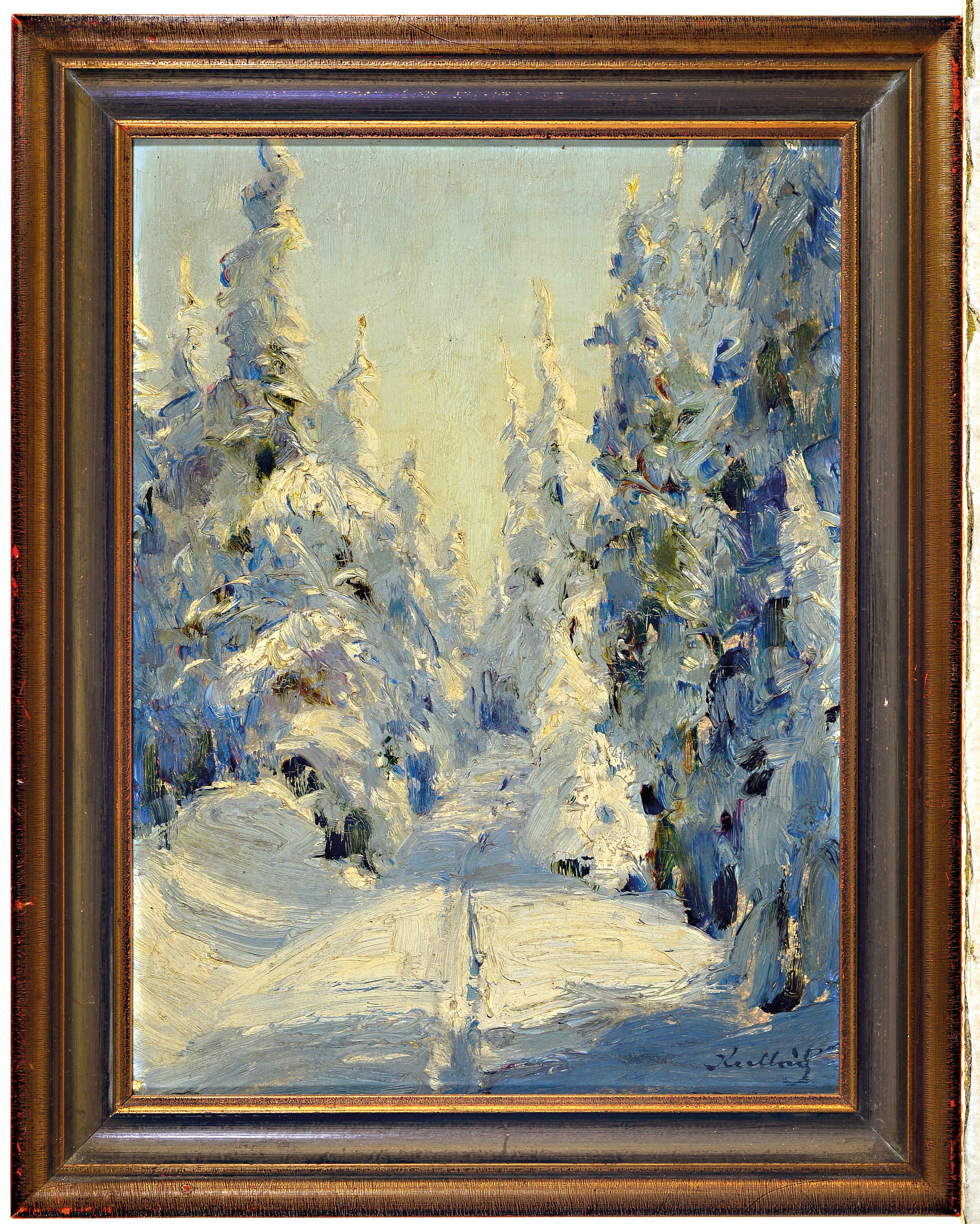 mit verschneiten Waldlandschaften in Öl auf Lwd, alle sign., ca. 27x37cm, 37x28cm,