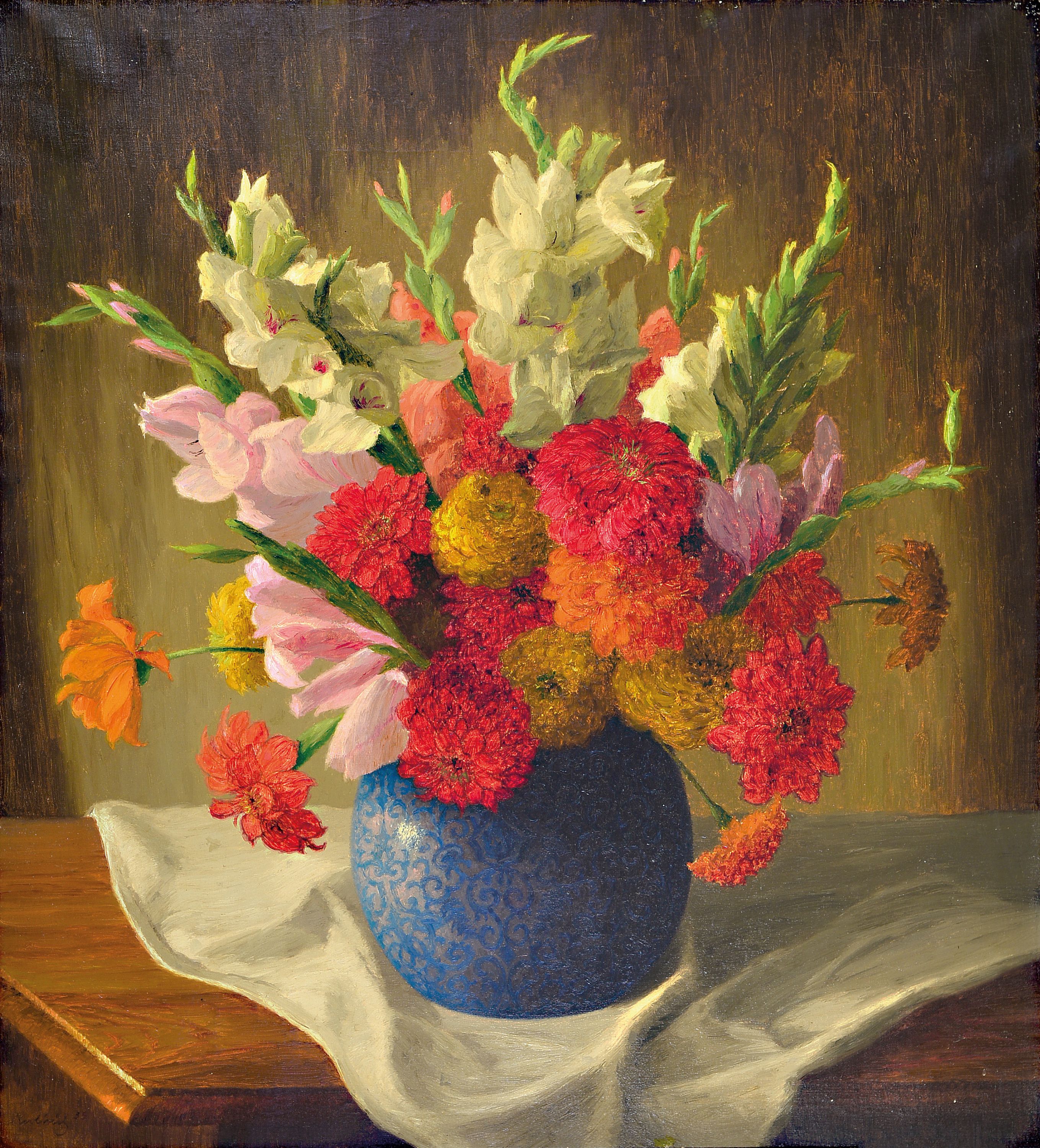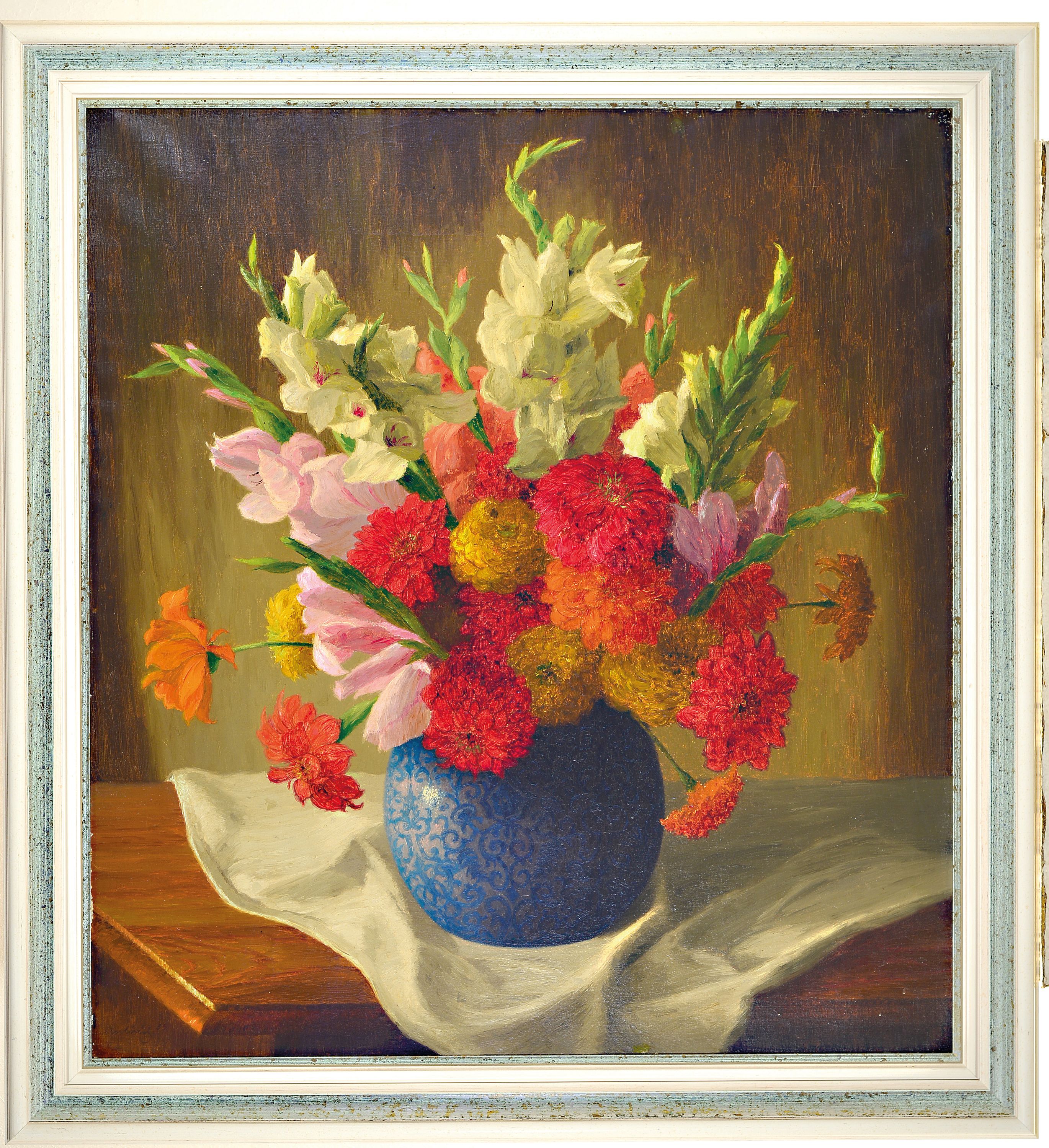Gustav Kullrich, 1888 Neustadt an der Weinstraße-1938 Karlsruhe, großes Blumenstillleben,