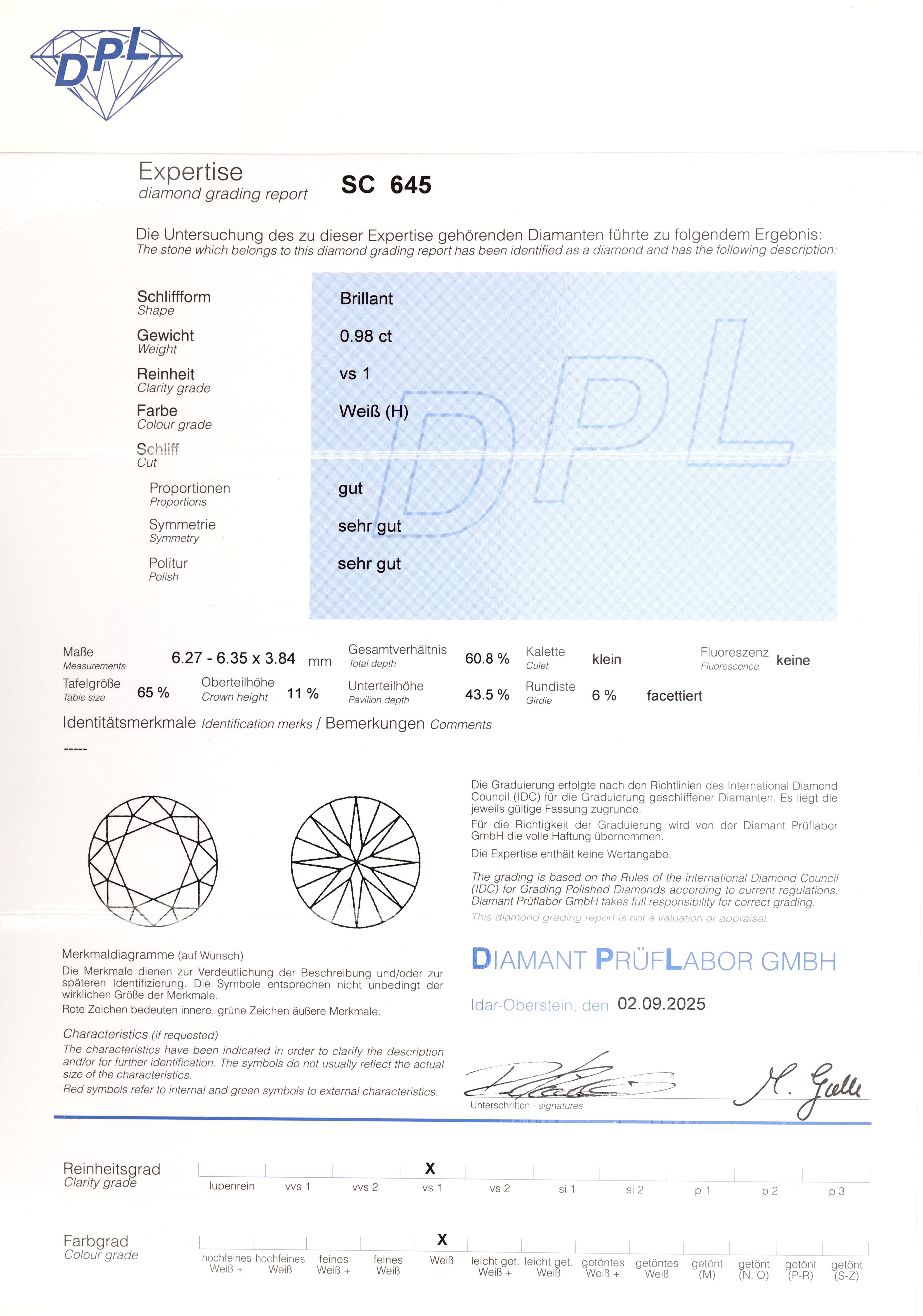 mit Brillanten zus. ca. 0.27 ct feines Weiß-Weiß/vs-si, RW 57.5, ca. 2.9 g, DPL-Expertise