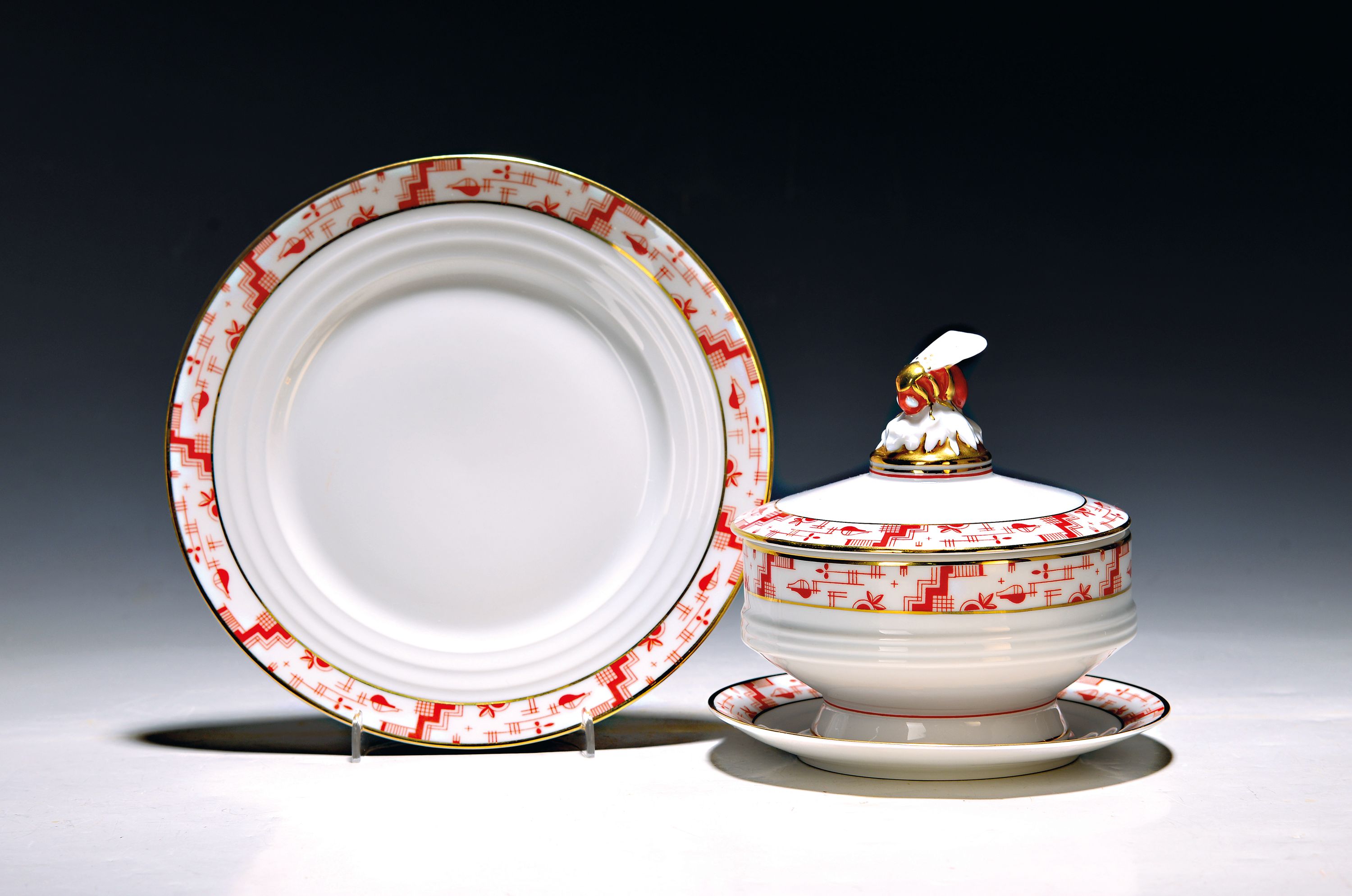 Bonboniere mit 2 Tellern, Gräf & Krippner, Selb Bavaria, 1930er, Porzellan, Deckelbekrönung