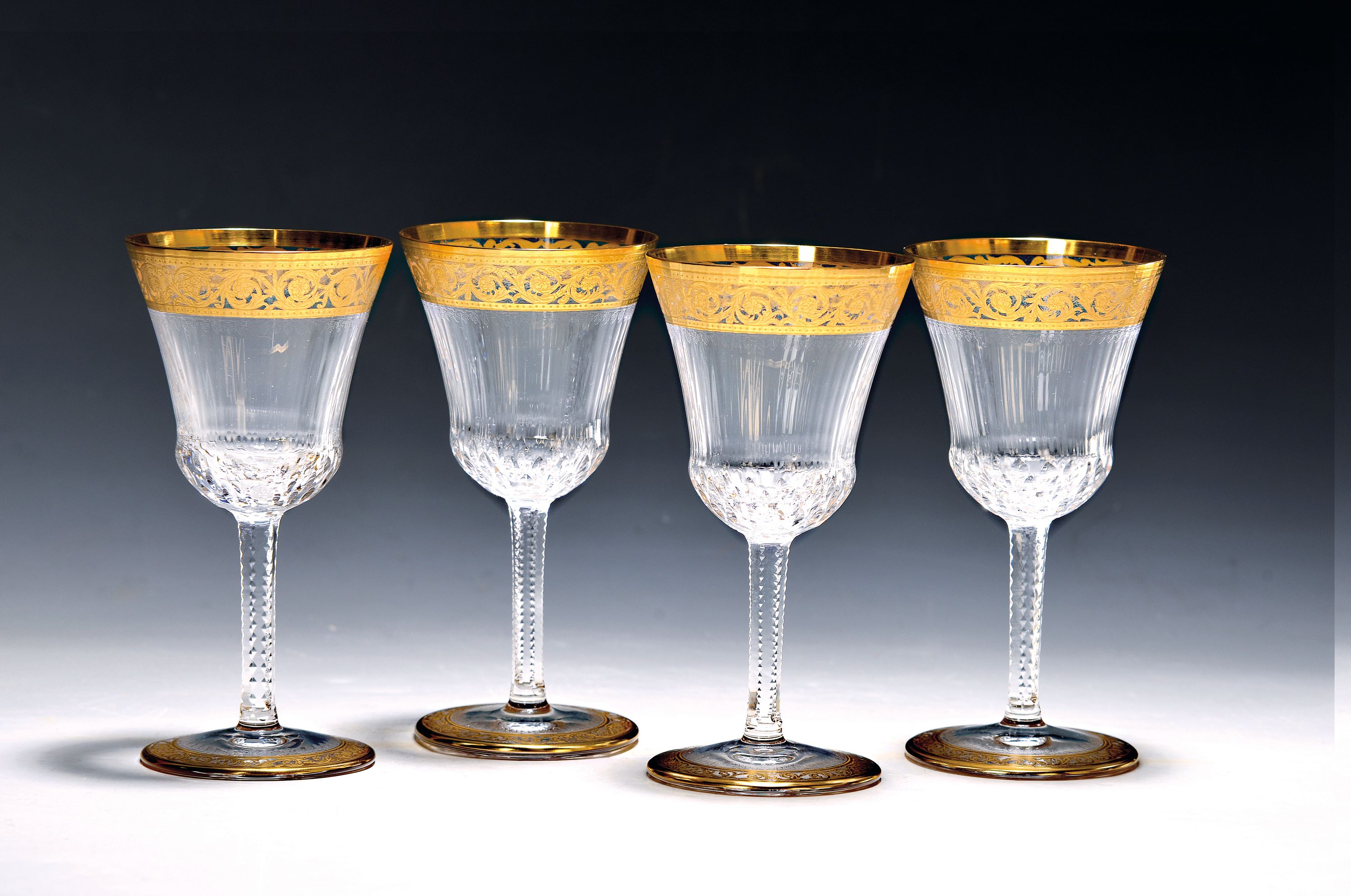 7 Weingläser, Saint Louis, Dekor Thistle, farbloses Kristallglas, fein geätzte