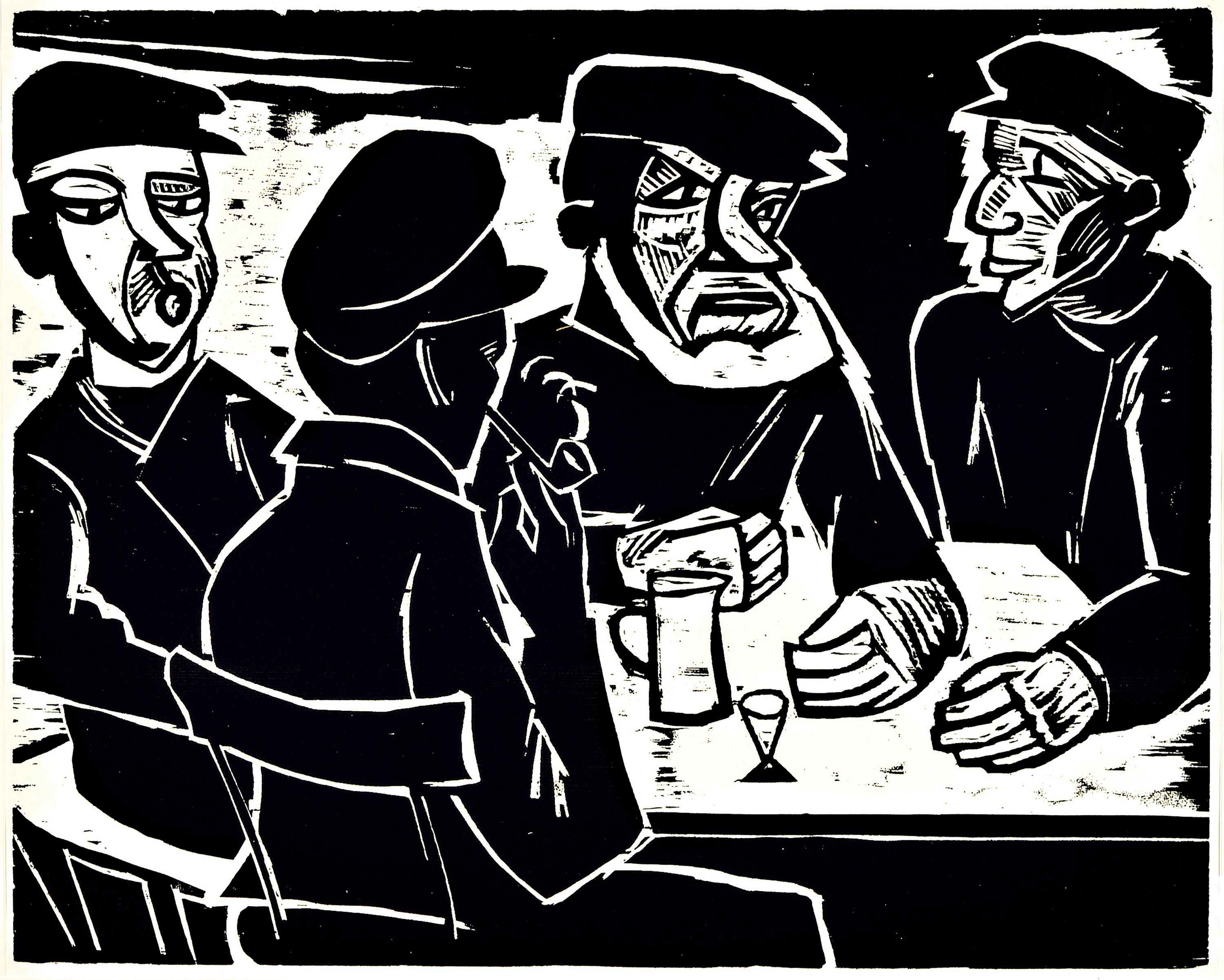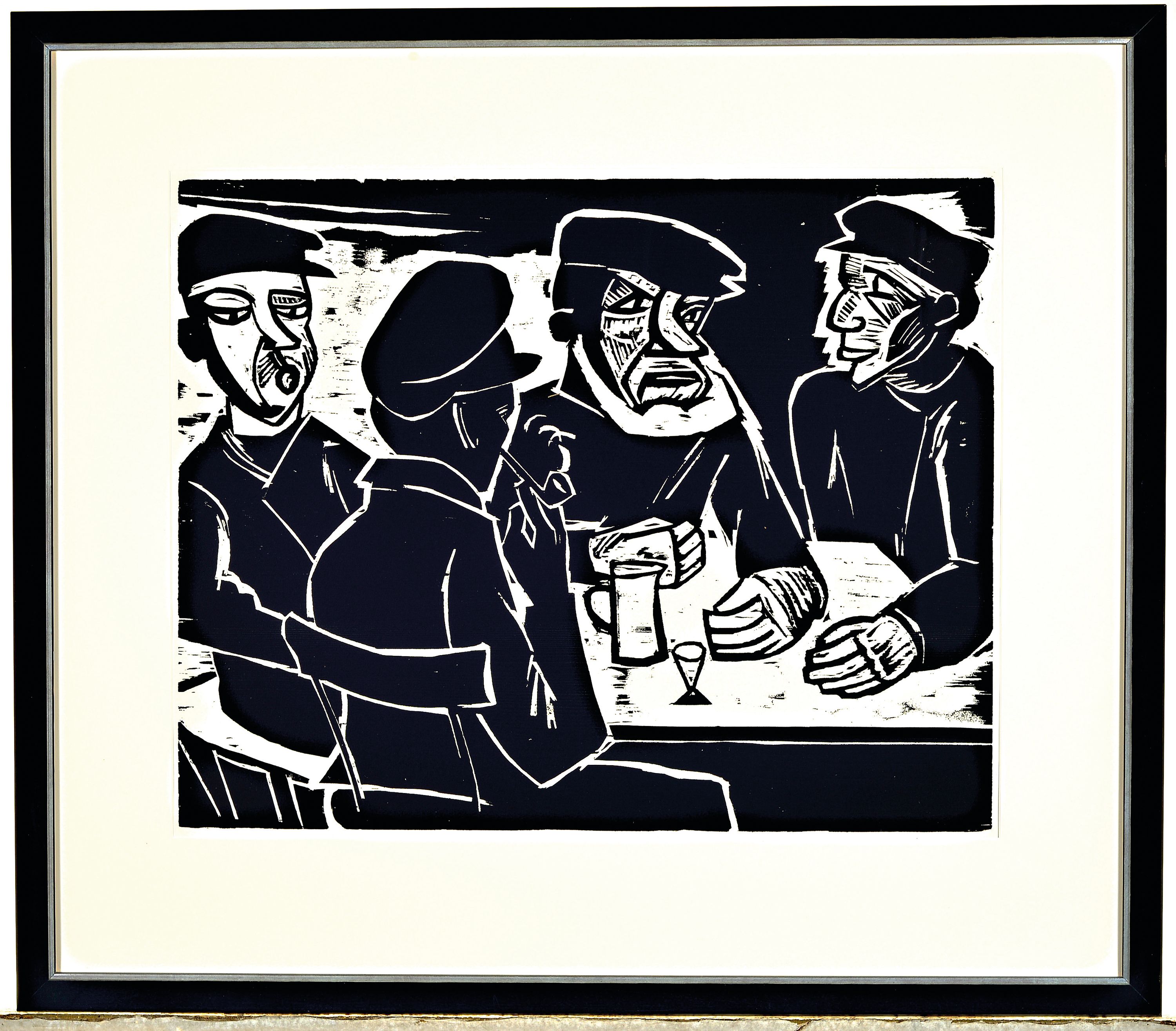 Max Pechstein, 1881 Zwickau-1955 Berlin, Holzschnitt "Fischer in der Kneipe", 1922,