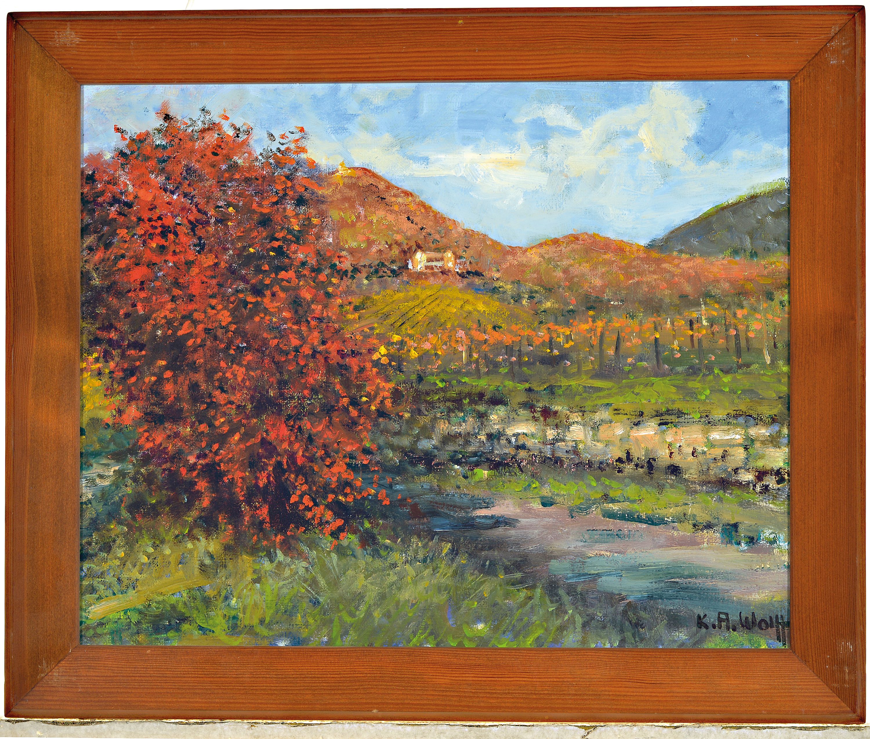 Karl August Wolff, geb. 1938, Blick zur Ludwigshöhe, signiert, Öl/Lwd, Rahmen 49x59