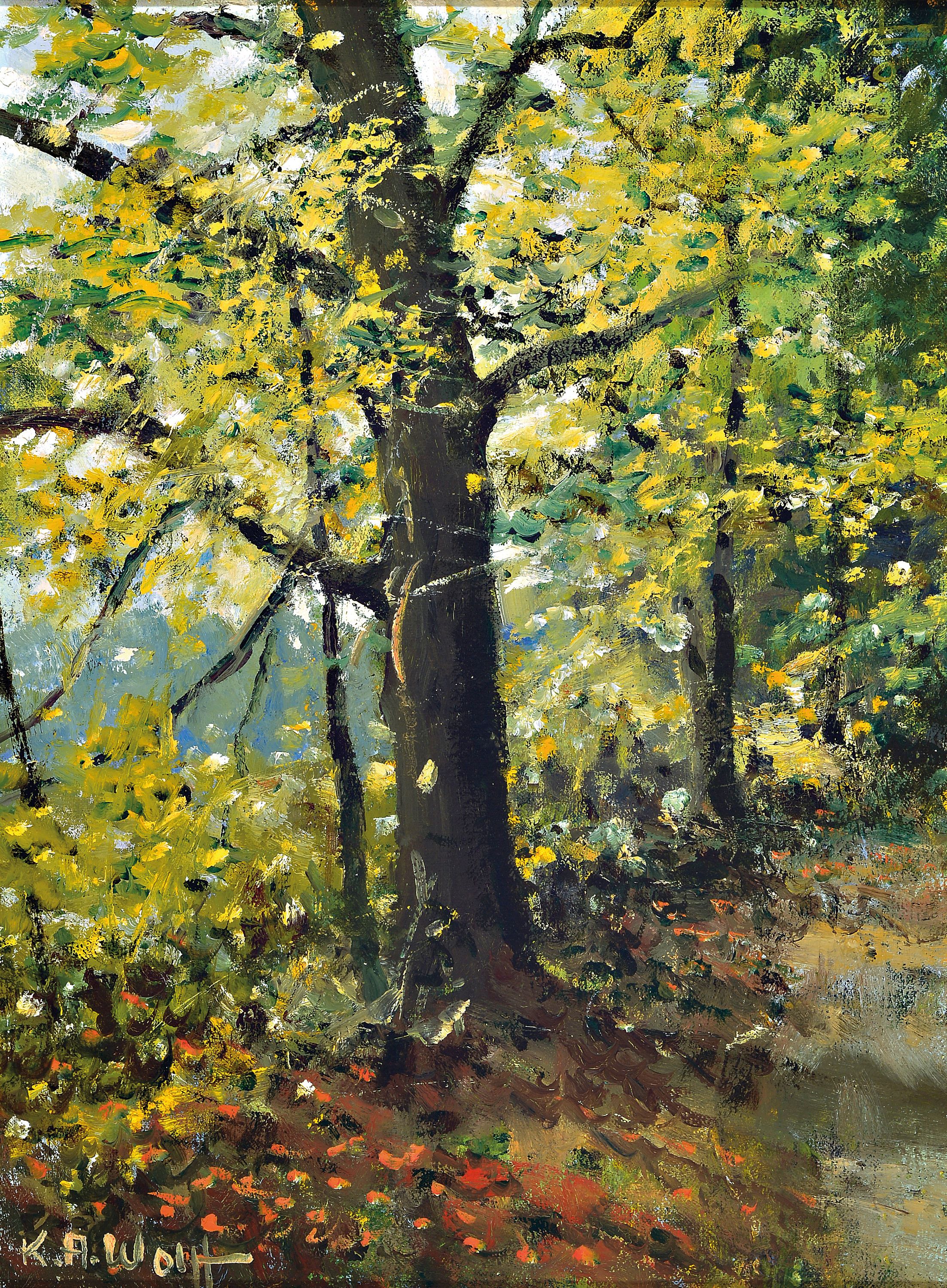 Karl August Wolff, 1938-2023, zwei Waldlandschaften, Öl/Lwd, je signiert, Rahmen